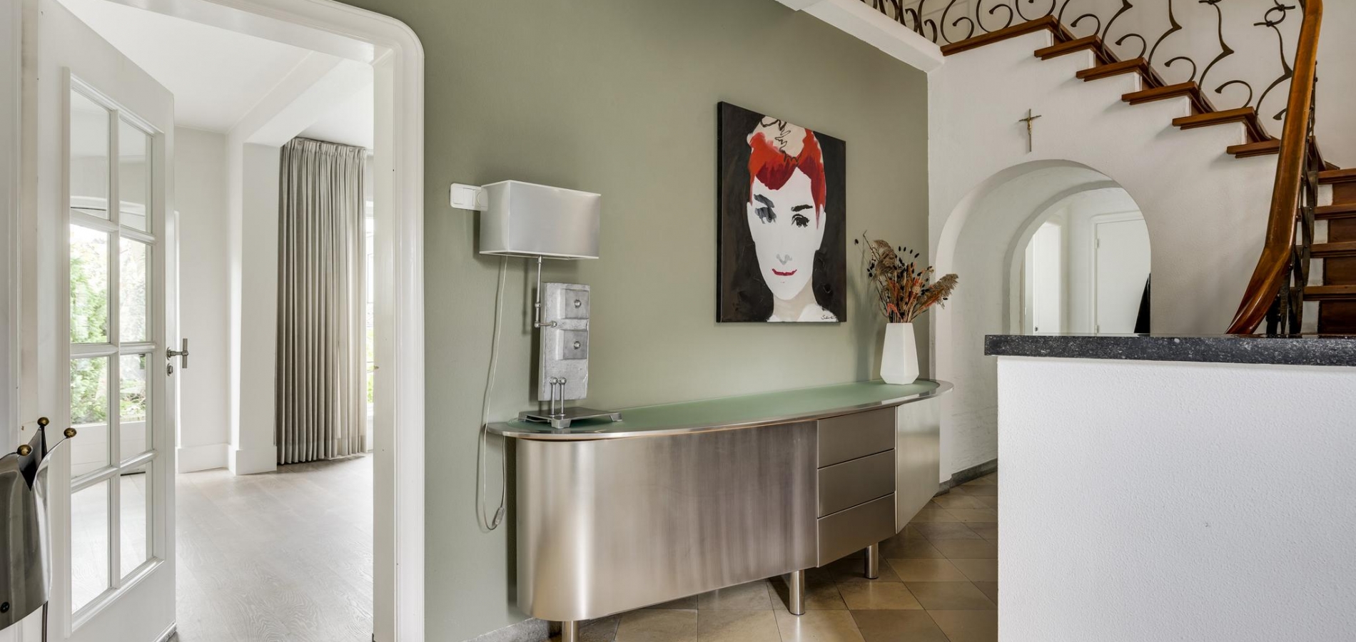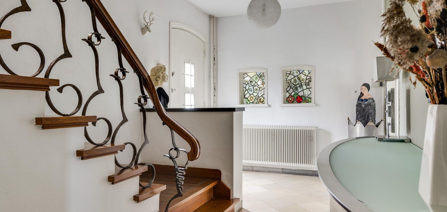 Zeer charmant en authentieke uitstraling met fraaie trappartij en deels glas in loodramen
