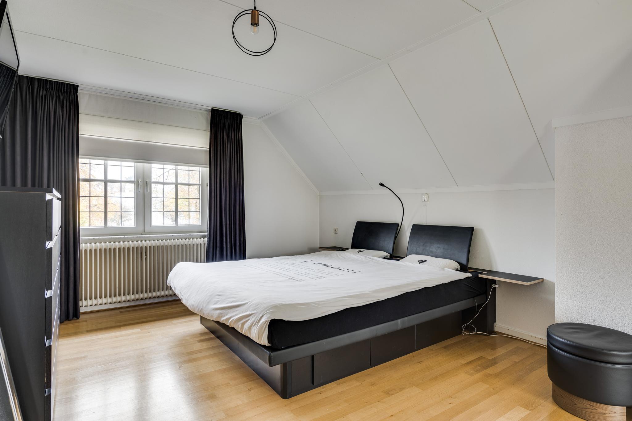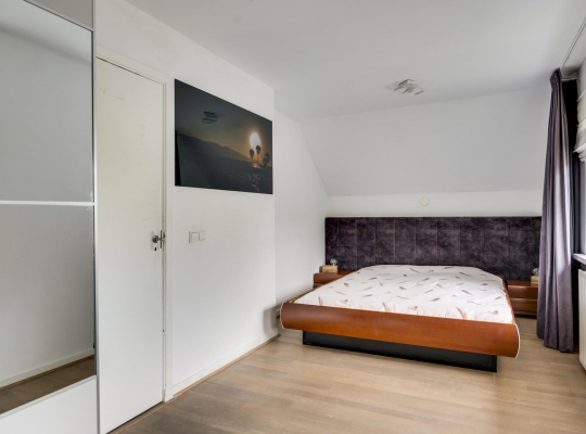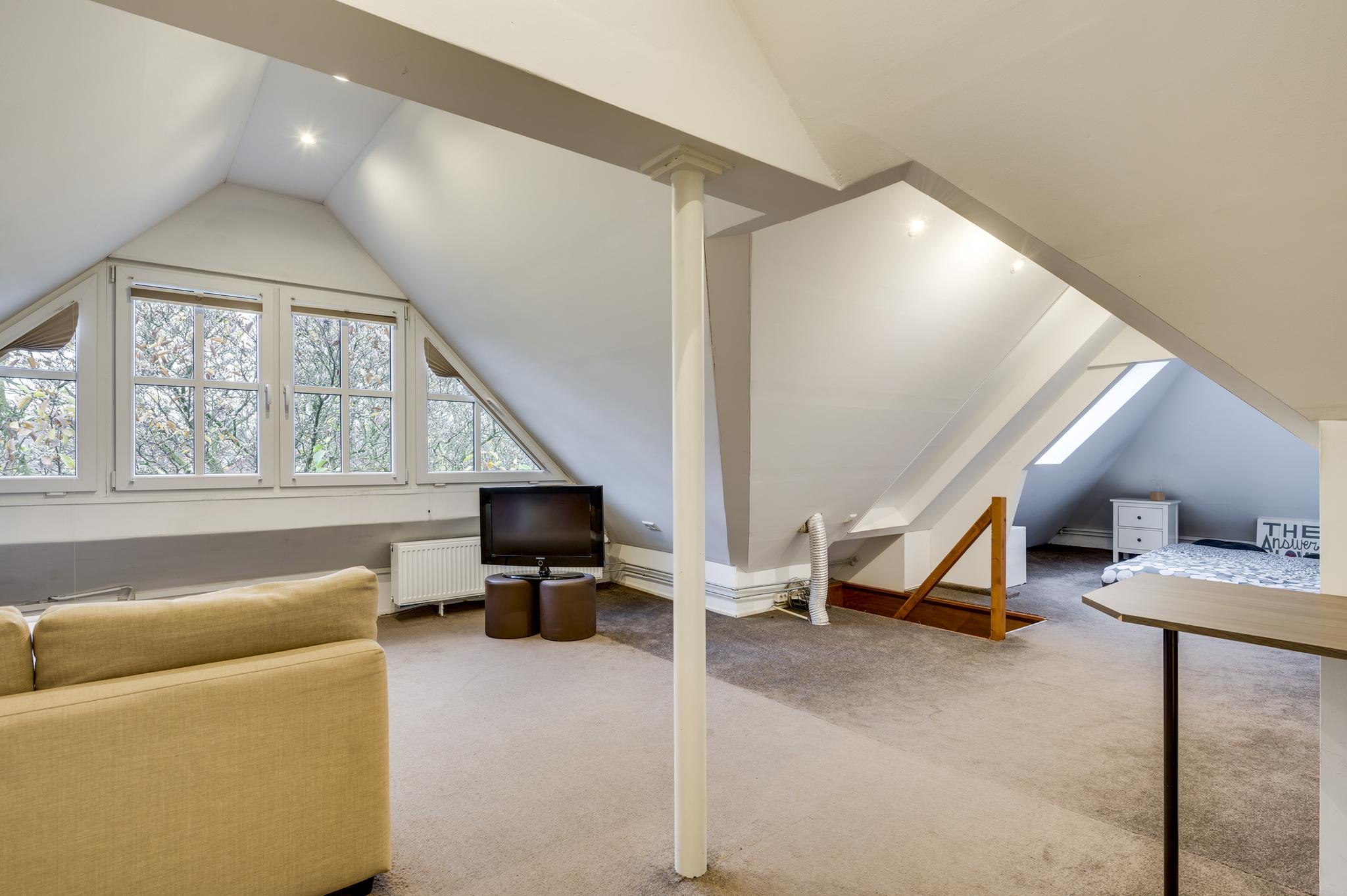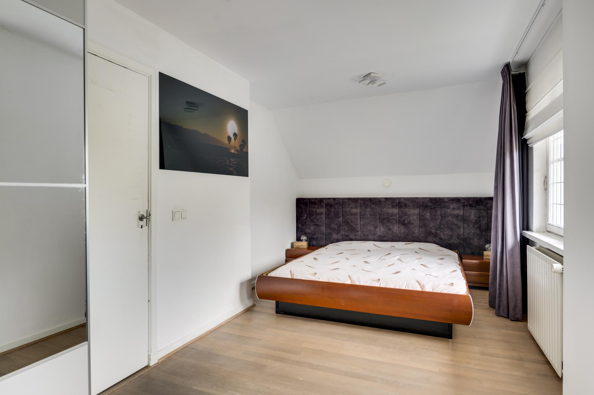 Met een vaste trap bereikt u de ruime zolderverdieping, die is uitgerust met een grote dakkapel en dakramen. Hier vindt u momenteel één slaapkamer, maar er is voldoende ruimte om meerdere kamers te creëren. Deze verdieping biedt bovendien veel bergruimte.