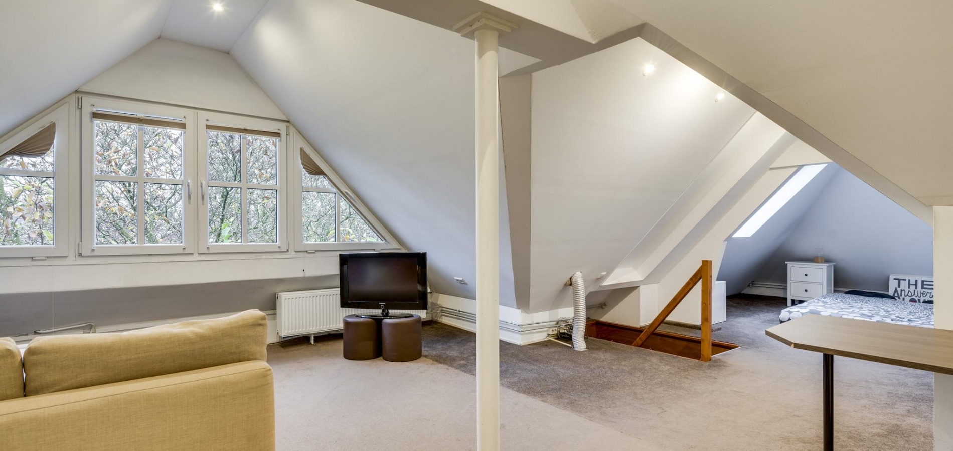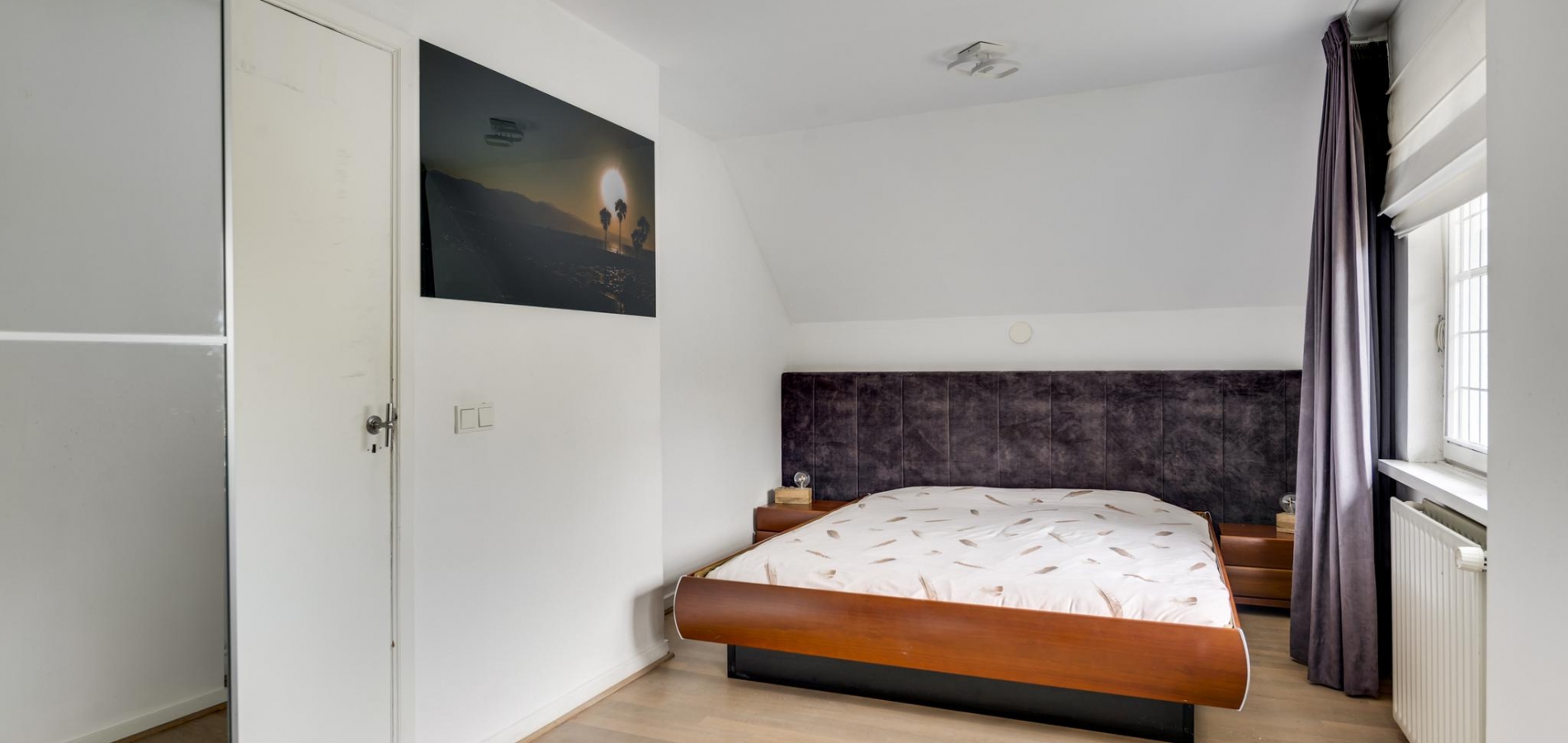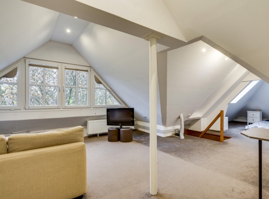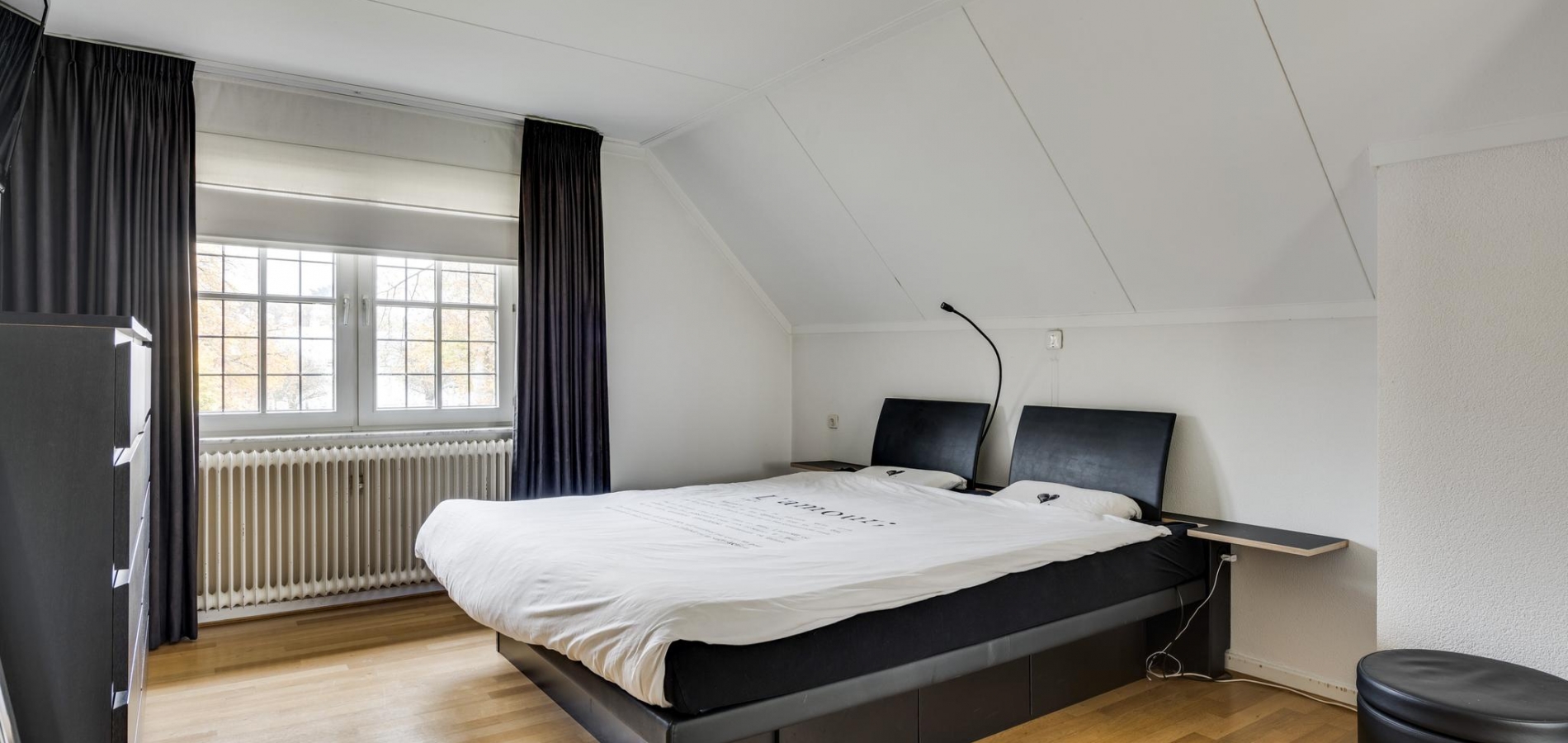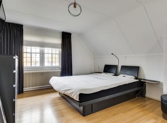 Met een vaste trap bereikt u de ruime zolderverdieping, die is uitgerust met een grote dakkapel en dakramen. Hier vindt u momenteel één slaapkamer, maar er is voldoende ruimte om meerdere kamers te creëren. Deze verdieping biedt bovendien veel bergruimte.