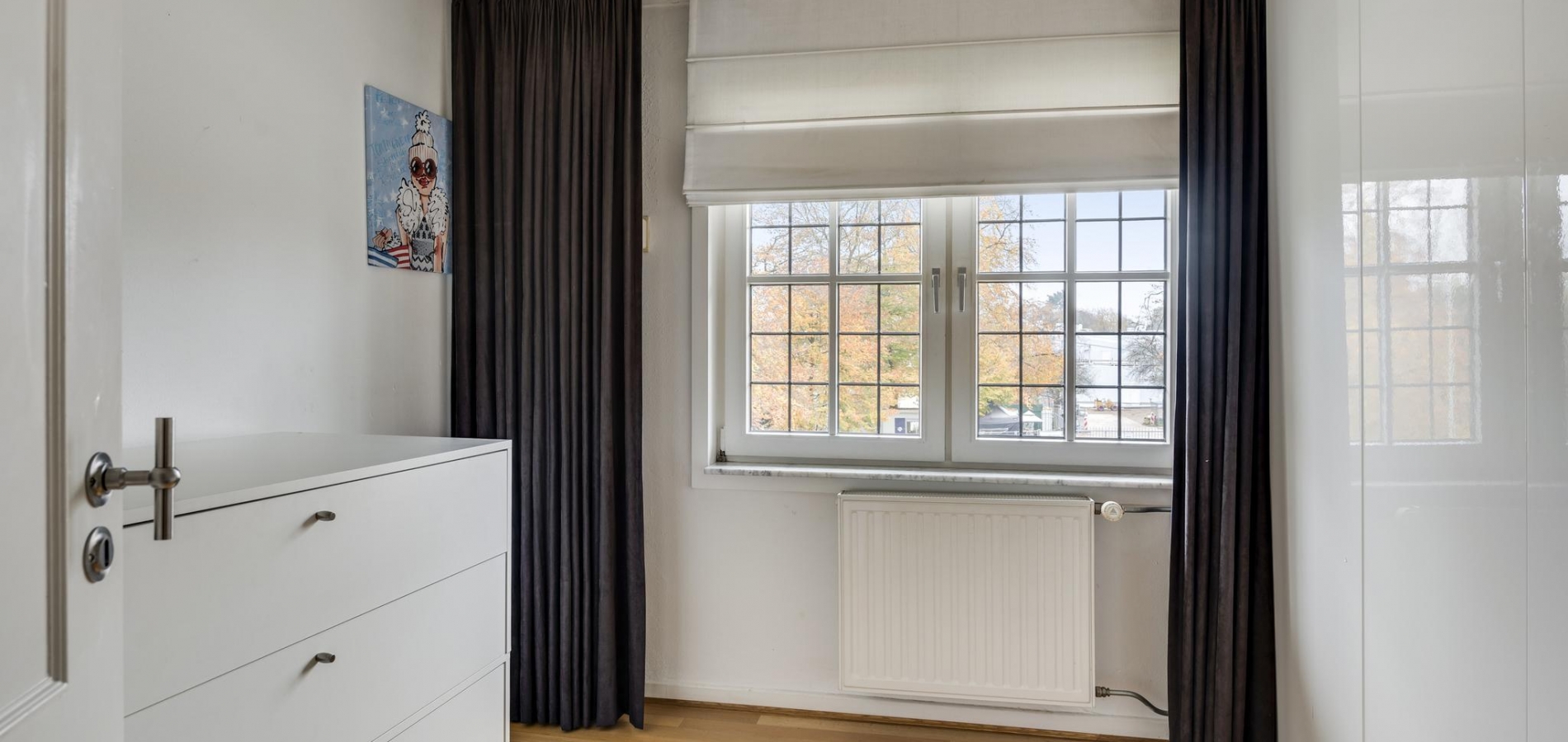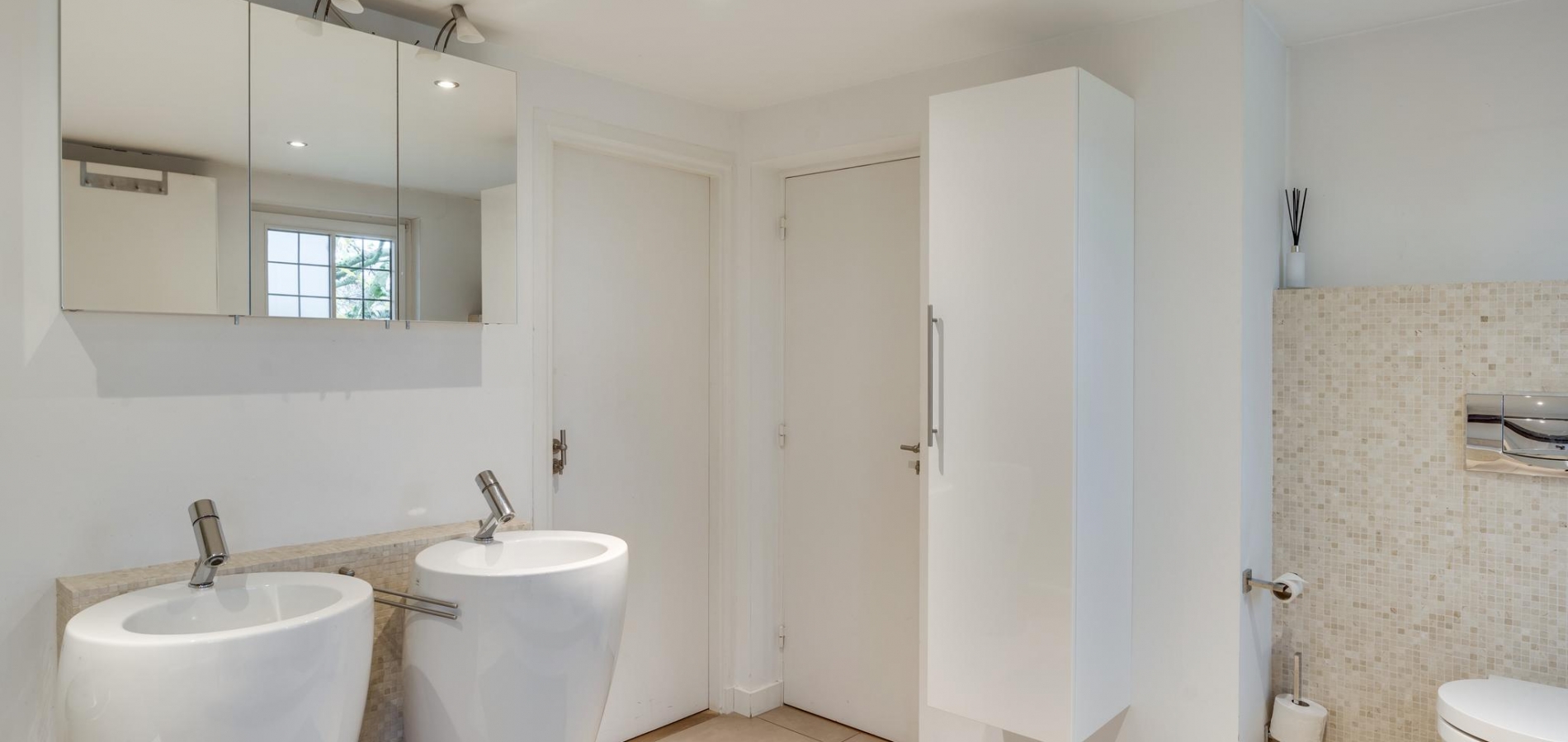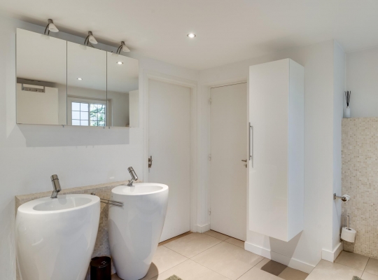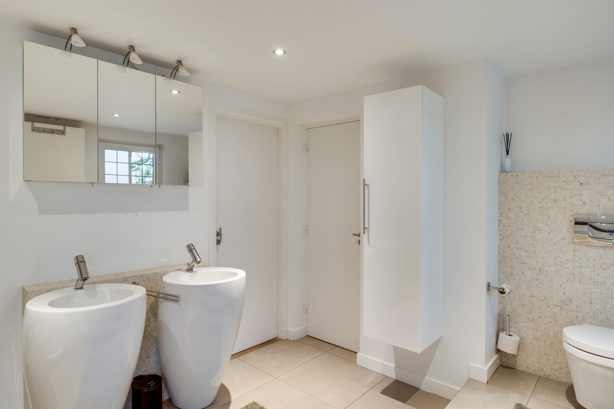 Via de royale overloop bereikt u drie ruime slaapkamers, de badkamer en een tussenruimte met een vaste trap naar de tweede verdieping. De masterbedroom ligt aan de voorzijde en biedt toegang tot een ruim balkon, waar u heerlijk kunt genieten van het uitzicht op de tuin. Deze slaapkamer heeft ook directe toegang tot de badkamer. De tweede slaapkamer ligt ook aan de voorzijde en de derde aan de zijkant van de woning; alle kamers zijn voorzien van een parketvloer. De badkamer is modern en stijlvol met mozaïektegels, een ligbad, douche, dubbele wastafel, zwevend toilet en een designradiator.
