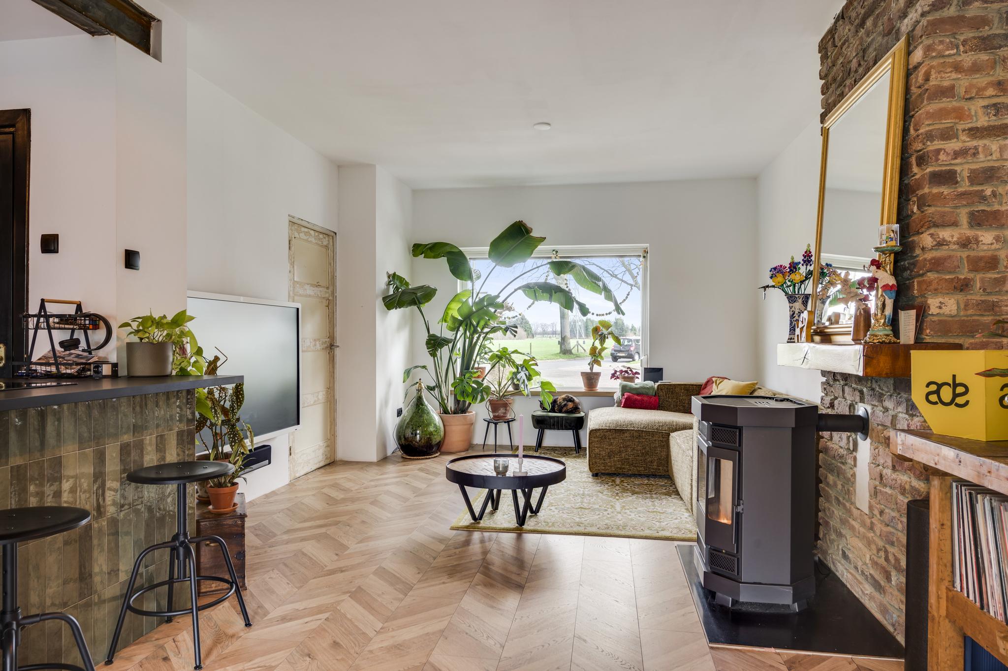 Om de hoek van een natuurgebied staat deze deels gerenoveerde woning met een aanbouw, grote garage en een vaste trap naar de tweede verdieping.