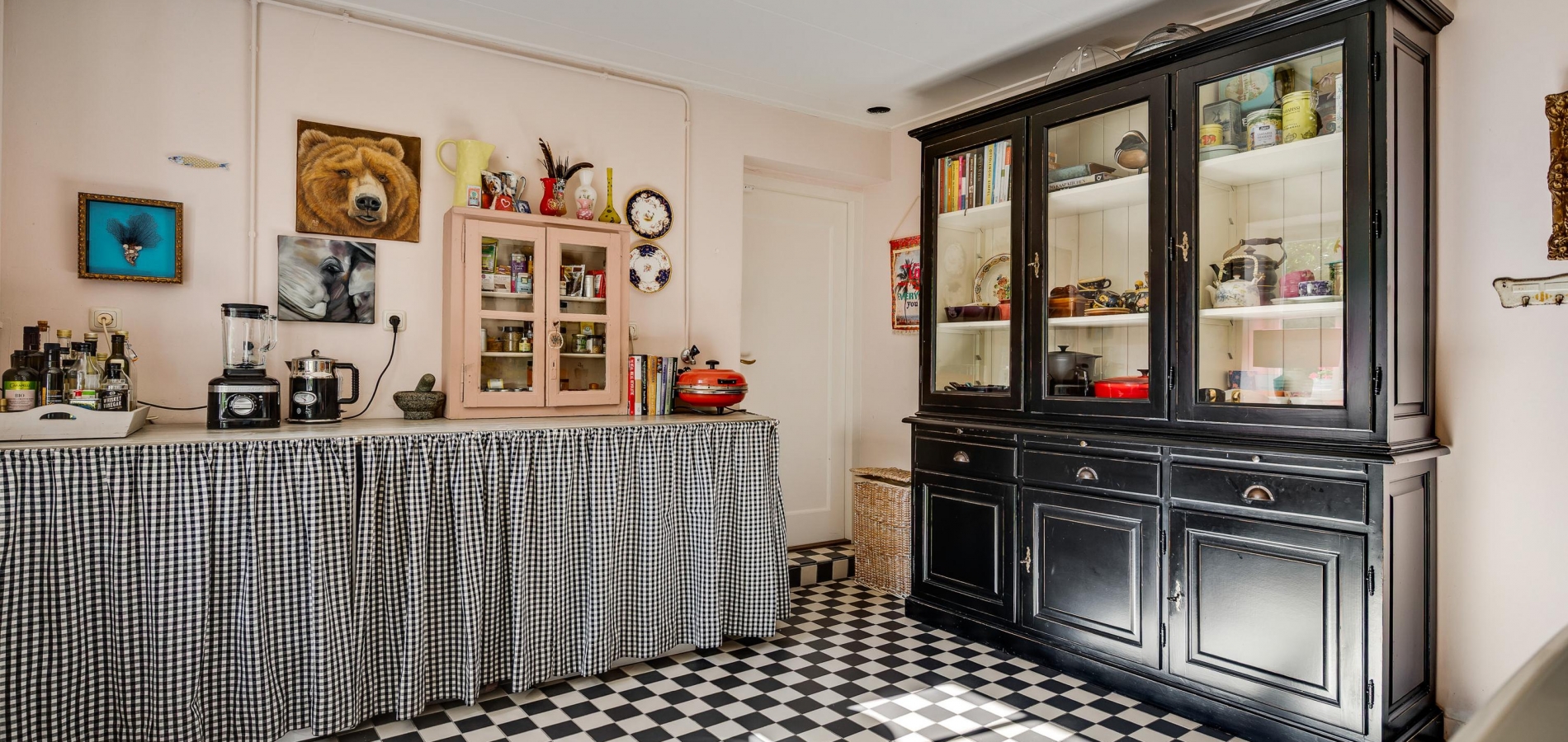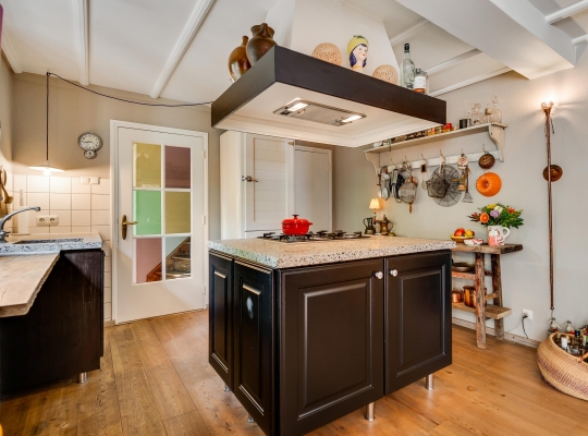 In de hoek van de keuken is een trap naar het souterrain, waar een fraaie gewelfde wijn-/provisiekelder van circa 12,1 m2. Het metselwerk en de trap zijn, met behoud van karakter, gerestaureerd.
