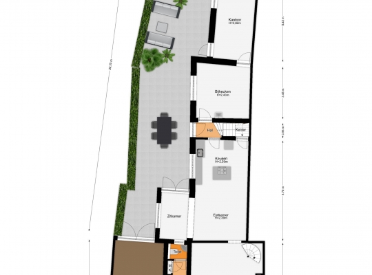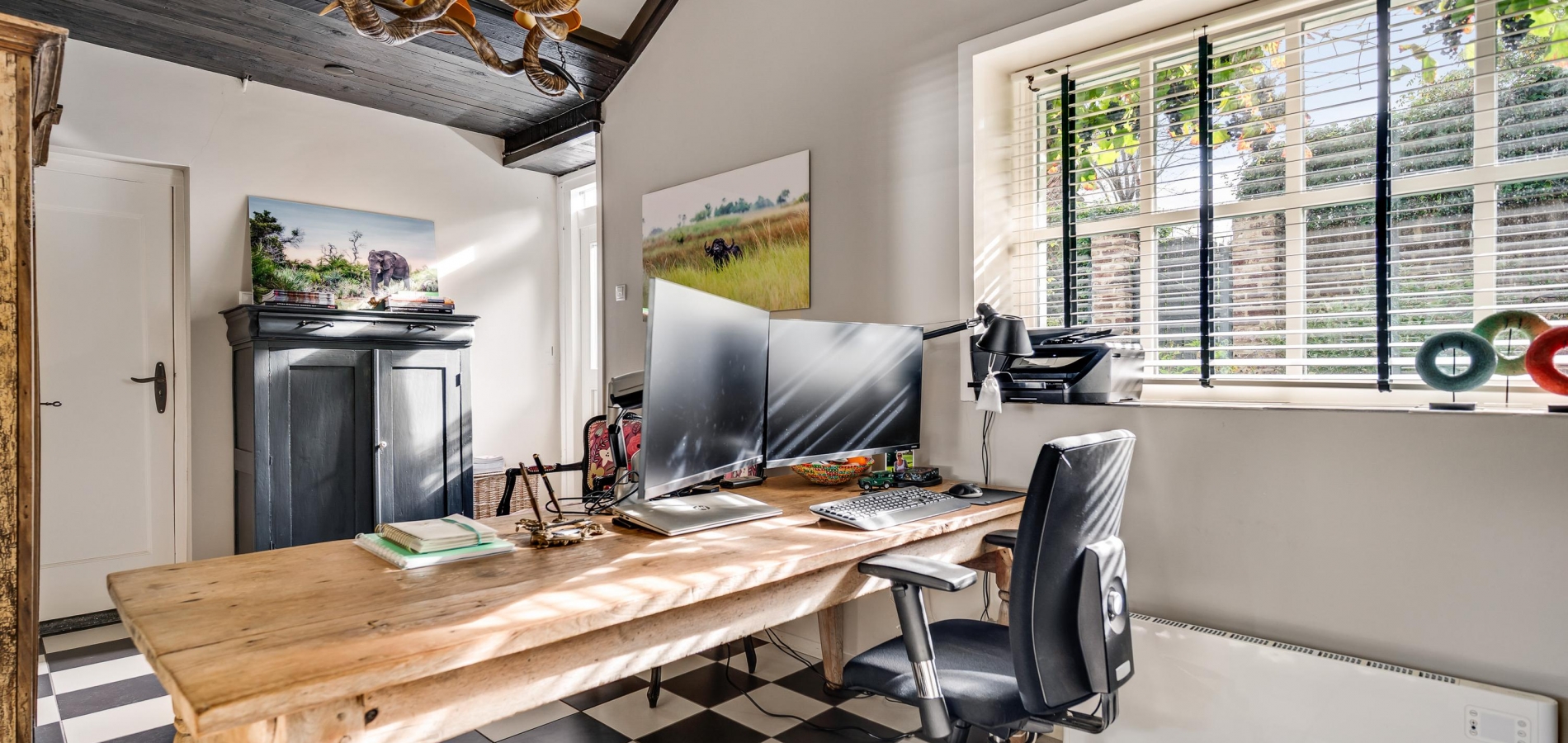 Kantoor-/hobbyruimte op de begane grond en eerste verdieping