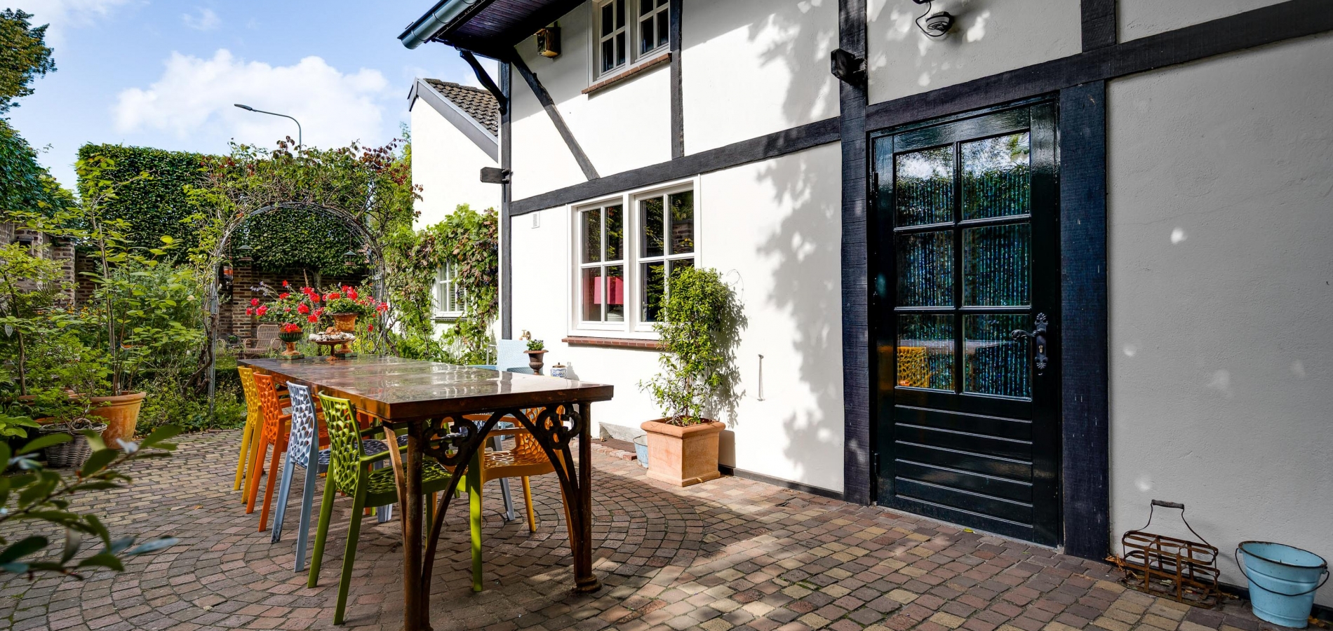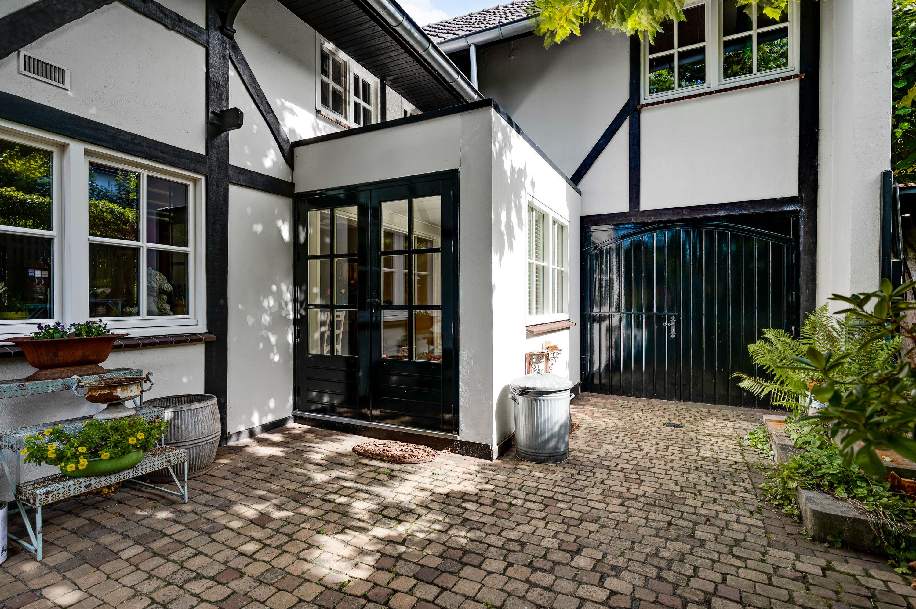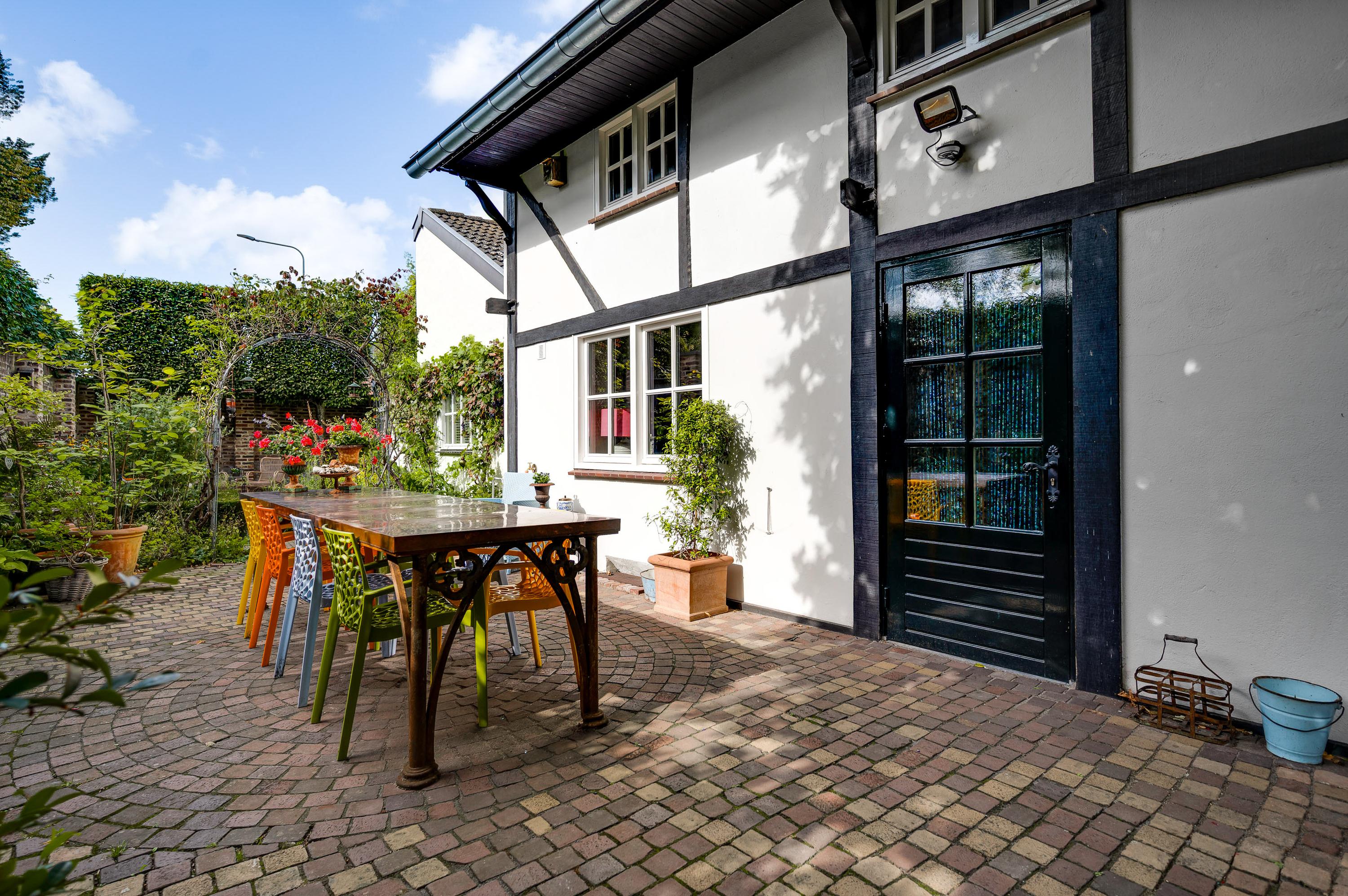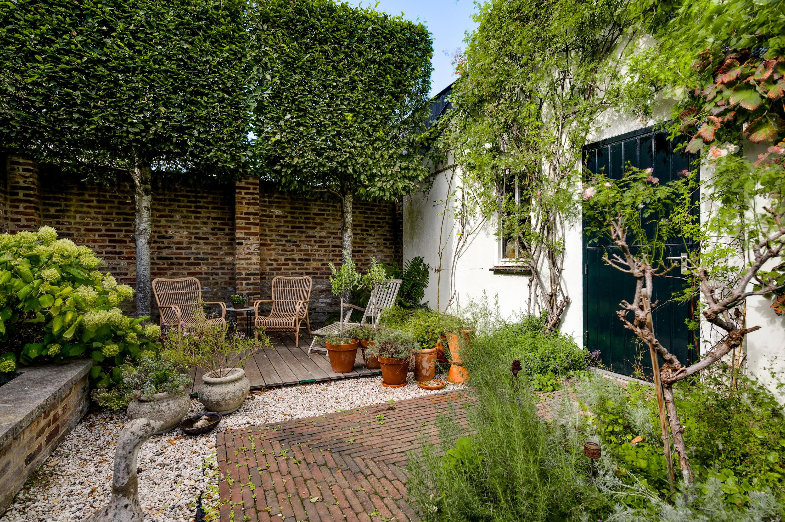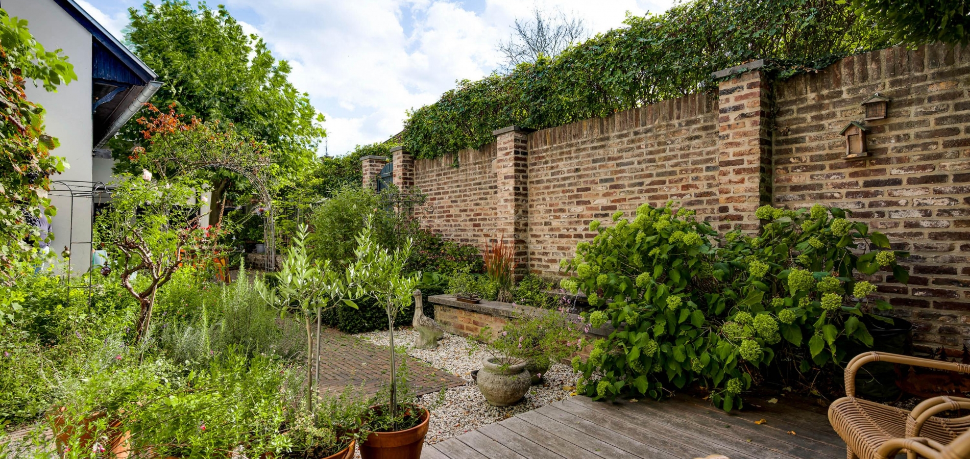 Fraai aangelegde tuin met een onderdoorgang naar de openbare weg