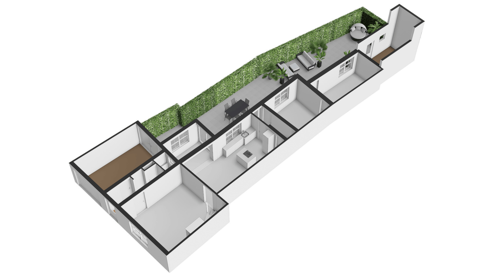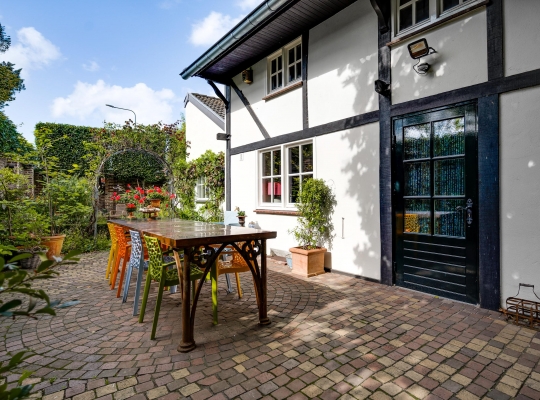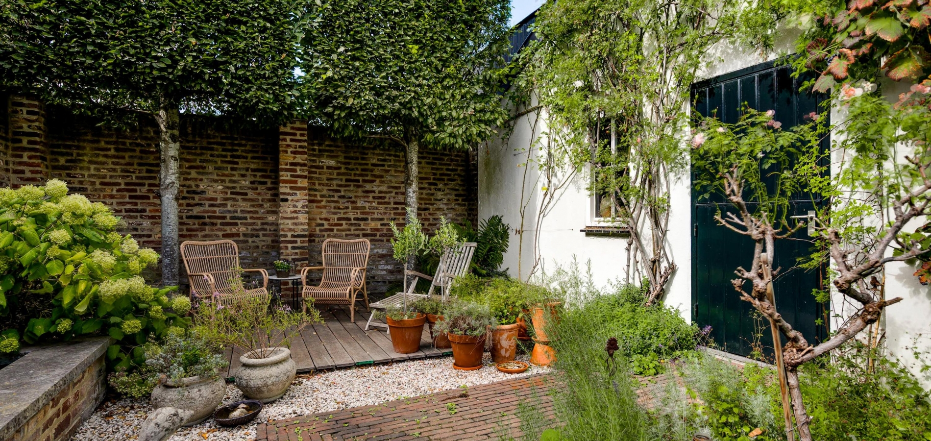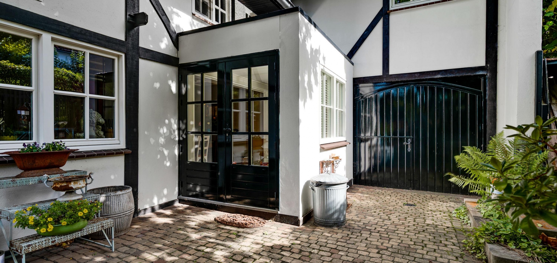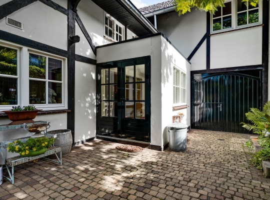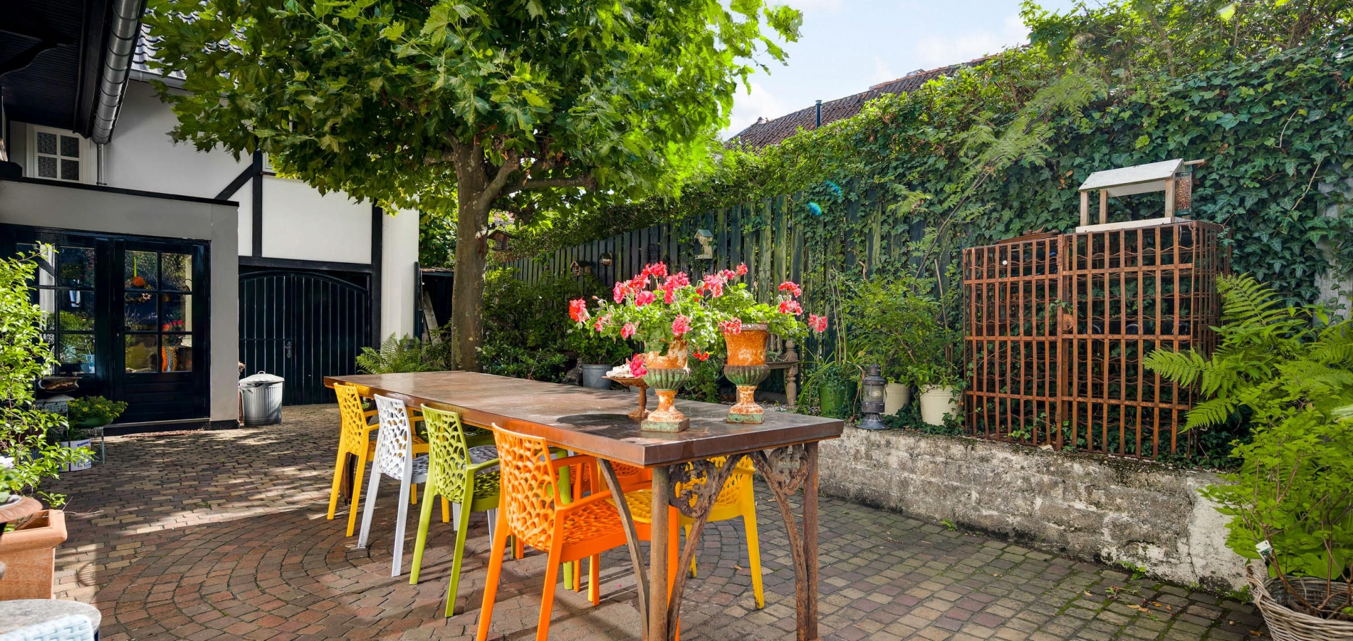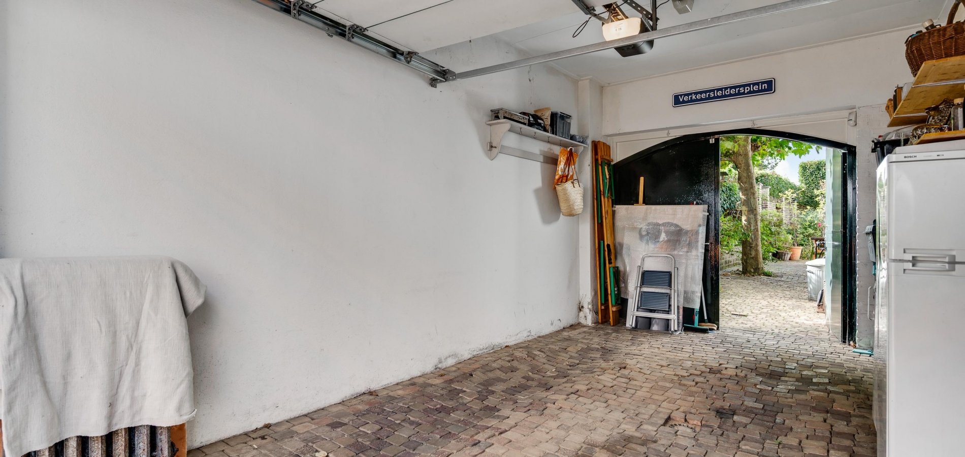 Fraai aangelegde tuin met een onderdoorgang naar de openbare weg