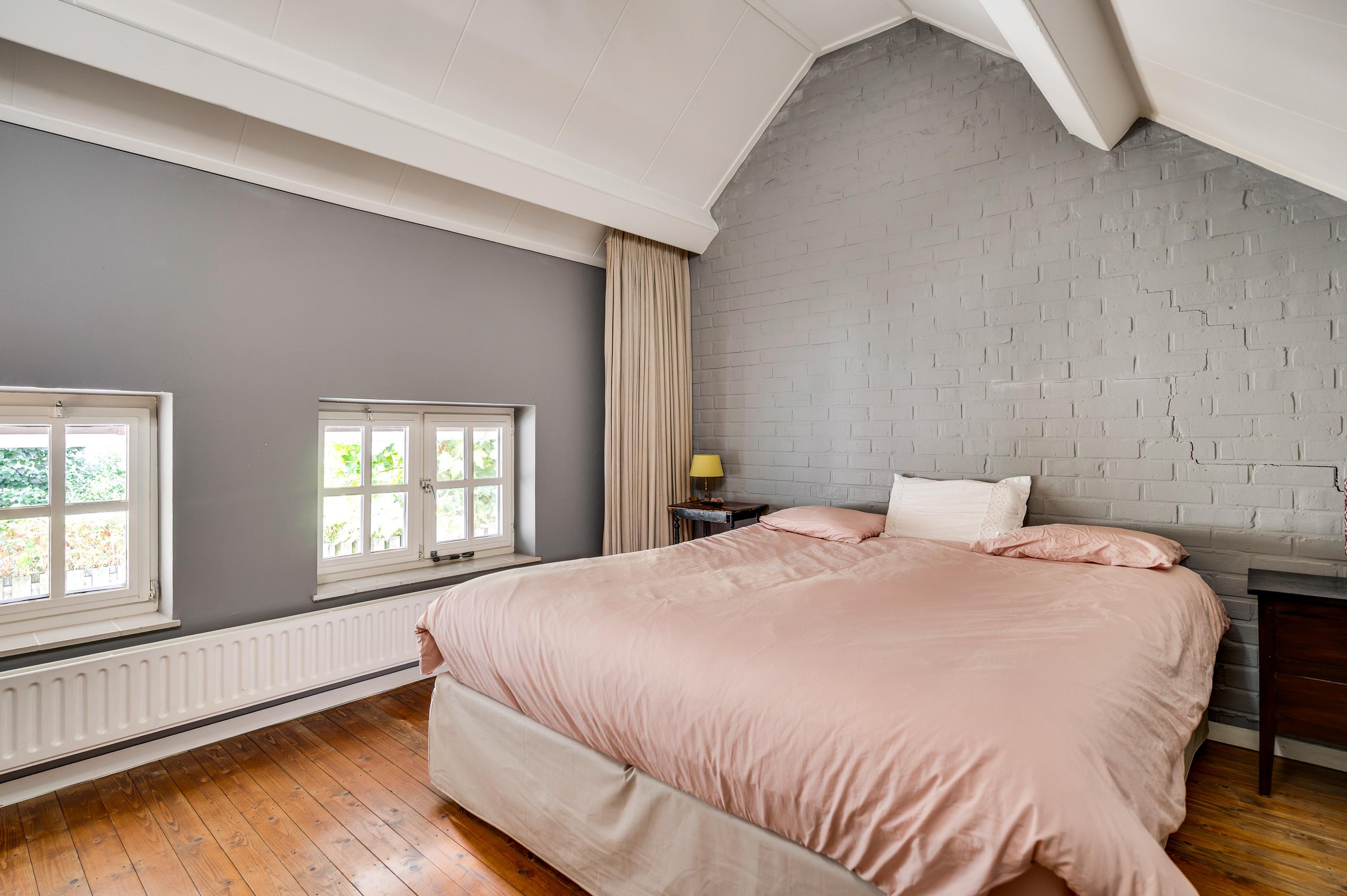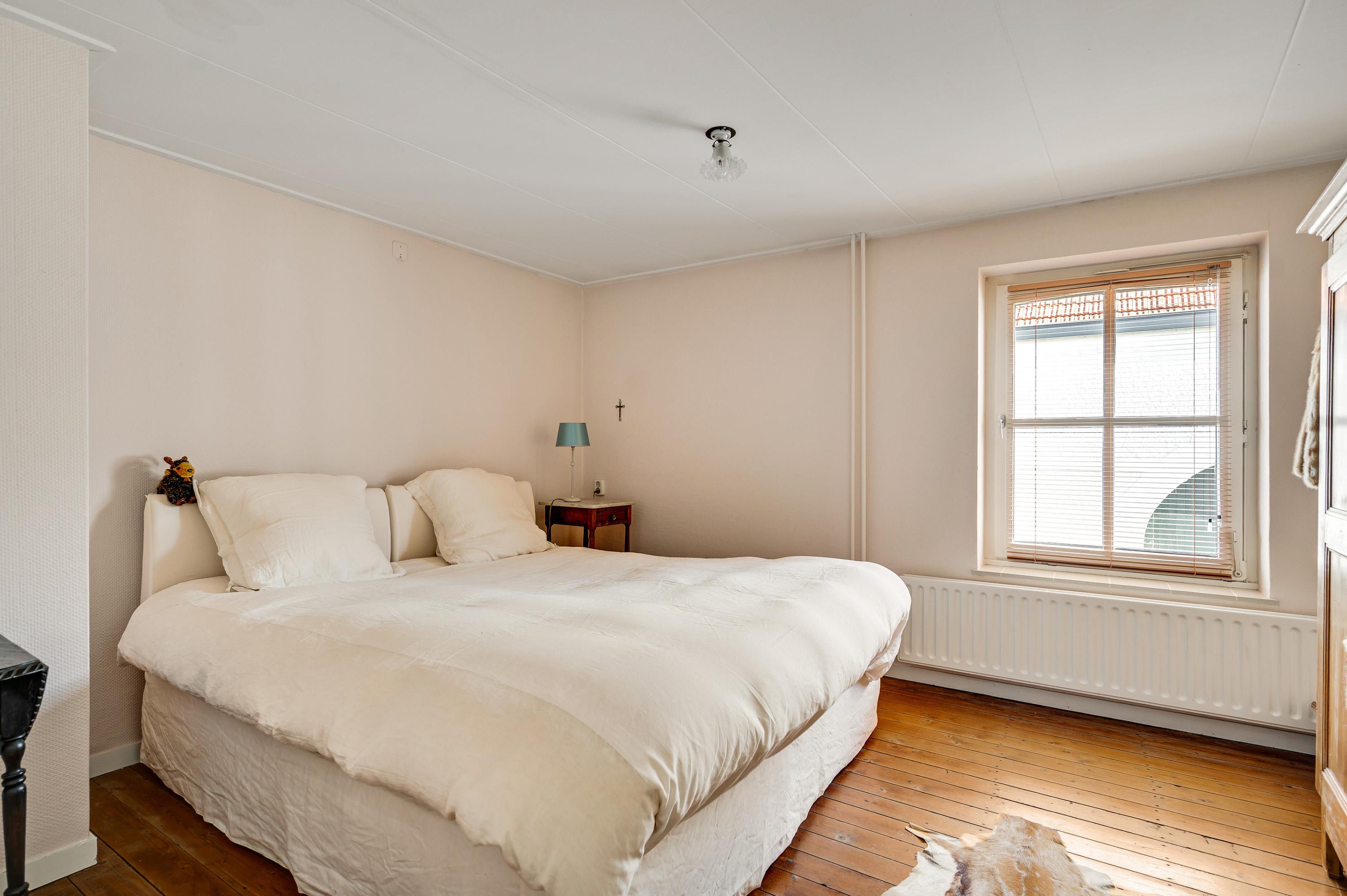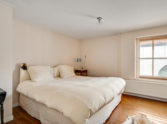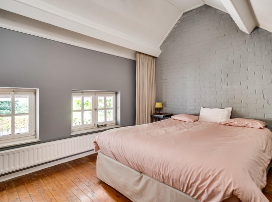 Gaat u via de trap in de woonkamer naar boven, dan bereikt u een ruime overloop. Hier zijn maar liefst drie slaapkamers en de badkamer, smaakvol verbouwd en verrassend ruim. Slaapkamer II (circa 3,76 x 3,28) is aan de voorzijde, en slaapkamer III (circa 5,46 x 3,26) is boven de poort met doorgang naar de tuin. Aan de andere zijde van de overloop is slaapkamer IV, met twee ramen aan de tuinzijde.