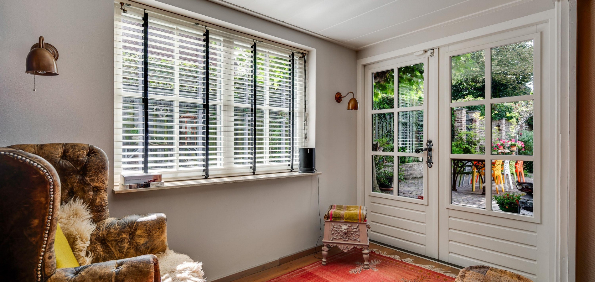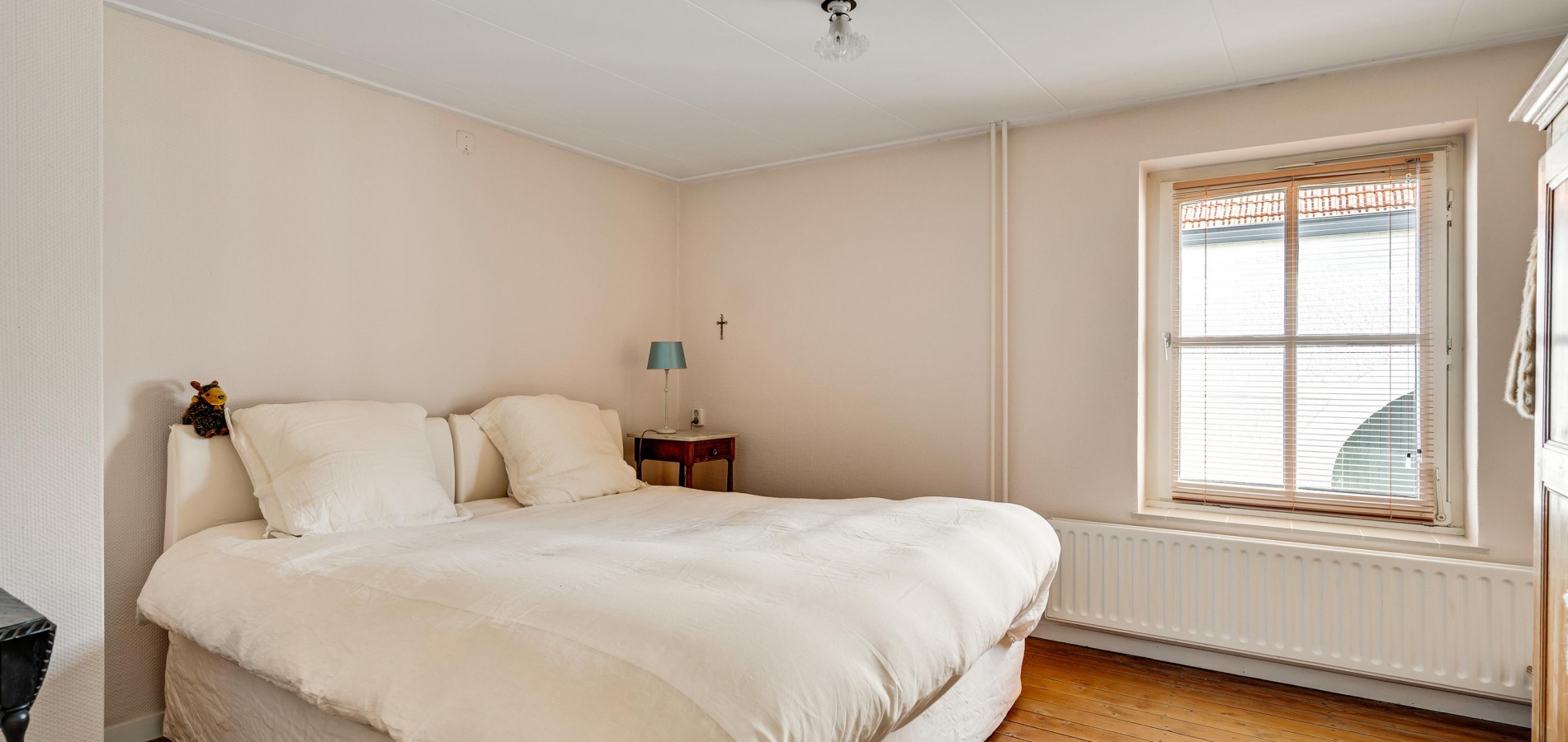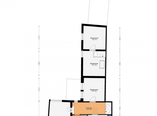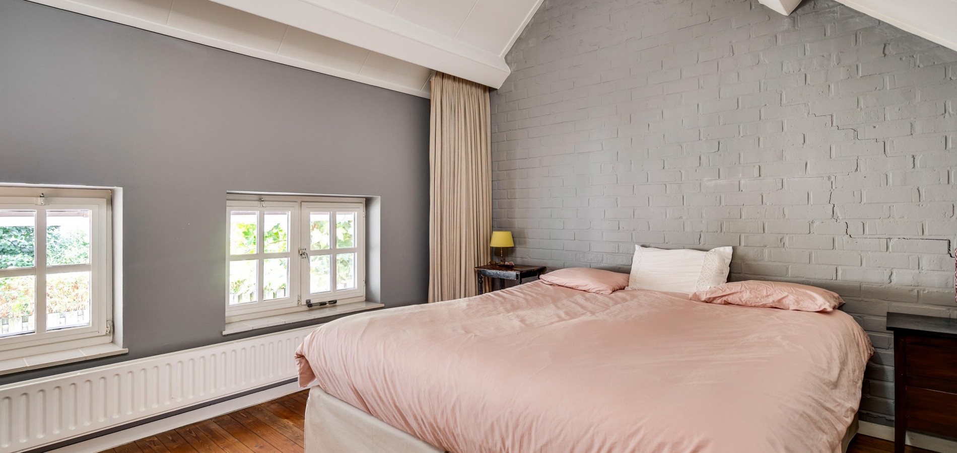 Gaat u via de trap in de woonkamer naar boven, dan bereikt u een ruime overloop. Hier zijn maar liefst drie slaapkamers en de badkamer, smaakvol verbouwd en verrassend ruim. Slaapkamer II (circa 3,76 x 3,28) is aan de voorzijde, en slaapkamer III (circa 5,46 x 3,26) is boven de poort met doorgang naar de tuin. Aan de andere zijde van de overloop is slaapkamer IV, met twee ramen aan de tuinzijde.