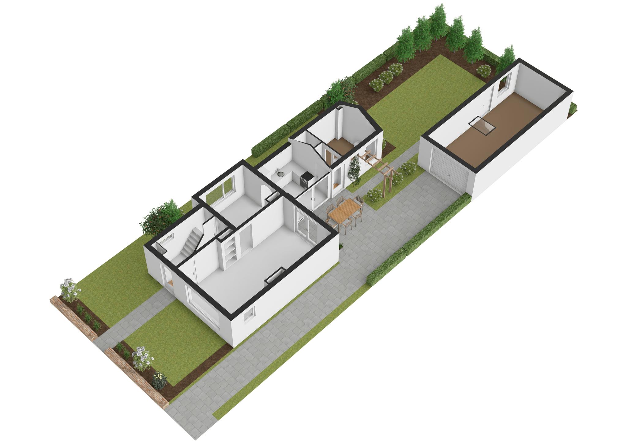 Op het perceel, aan het einde van de oprit, staat een stenen garage van 8,34 x 3,43 met een kantelpoort, aparte loopdeur en elektra. Dit is een goede ruimte voor de auto, motor, fietsen en de hobbyist. Tevens geschikt voor een praktijkruimte aan huis.