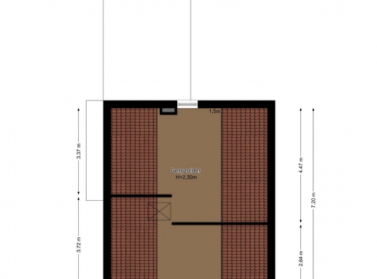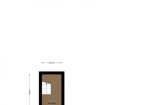 Achter een van de deuren in de hal is de trap naar de wijn-/provisiekelder (3,65 x 2,03) met een hoogte van 1,99 meter.