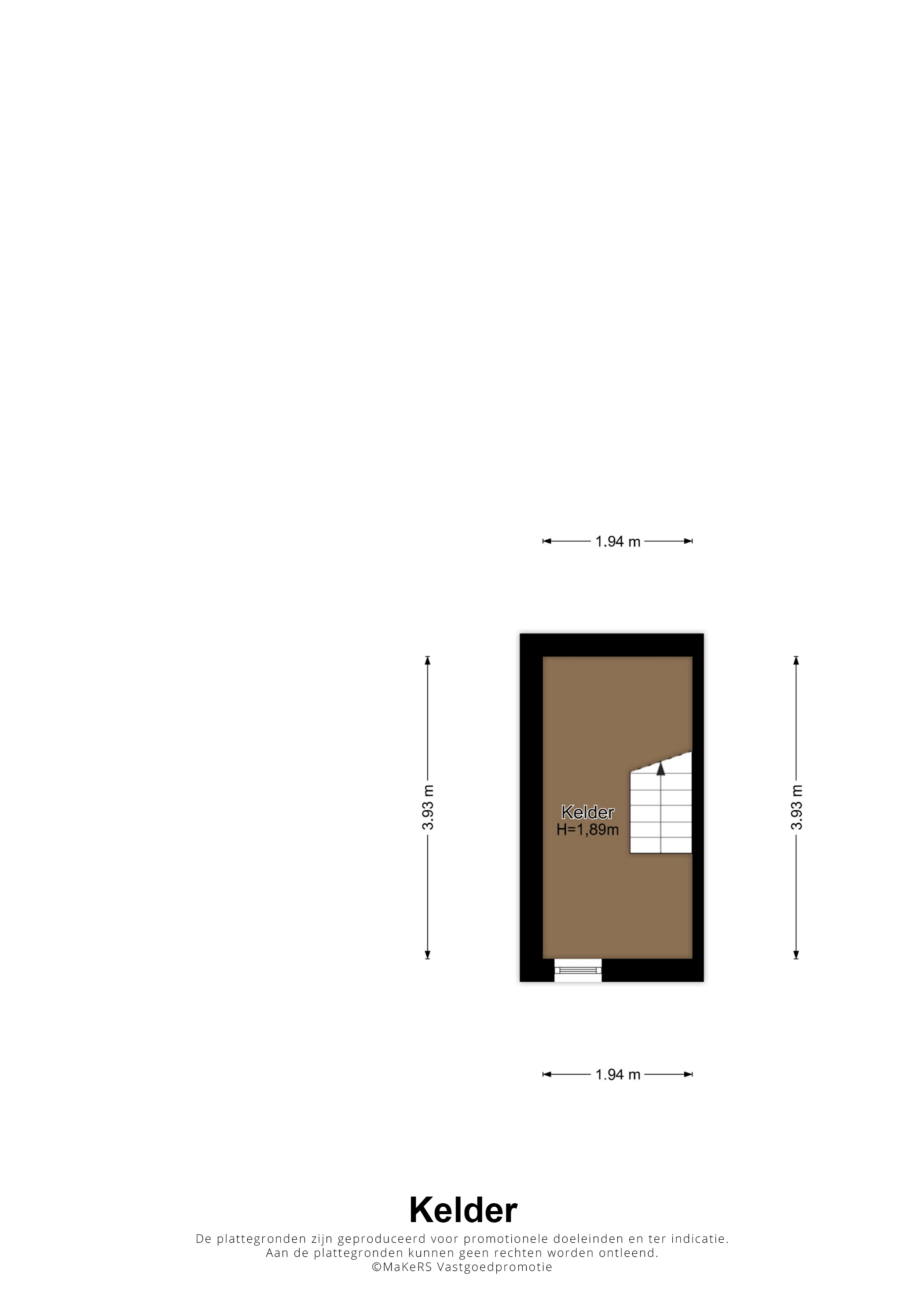 Achter een van de paneeldeuren in de hal is een trap naar het souterrain. Hier heeft u de beschikking over een wijn-/provisiekelder van circa 3,93 x 1,94 meter, die onder de hal en toiletruimte gesitueerd is.