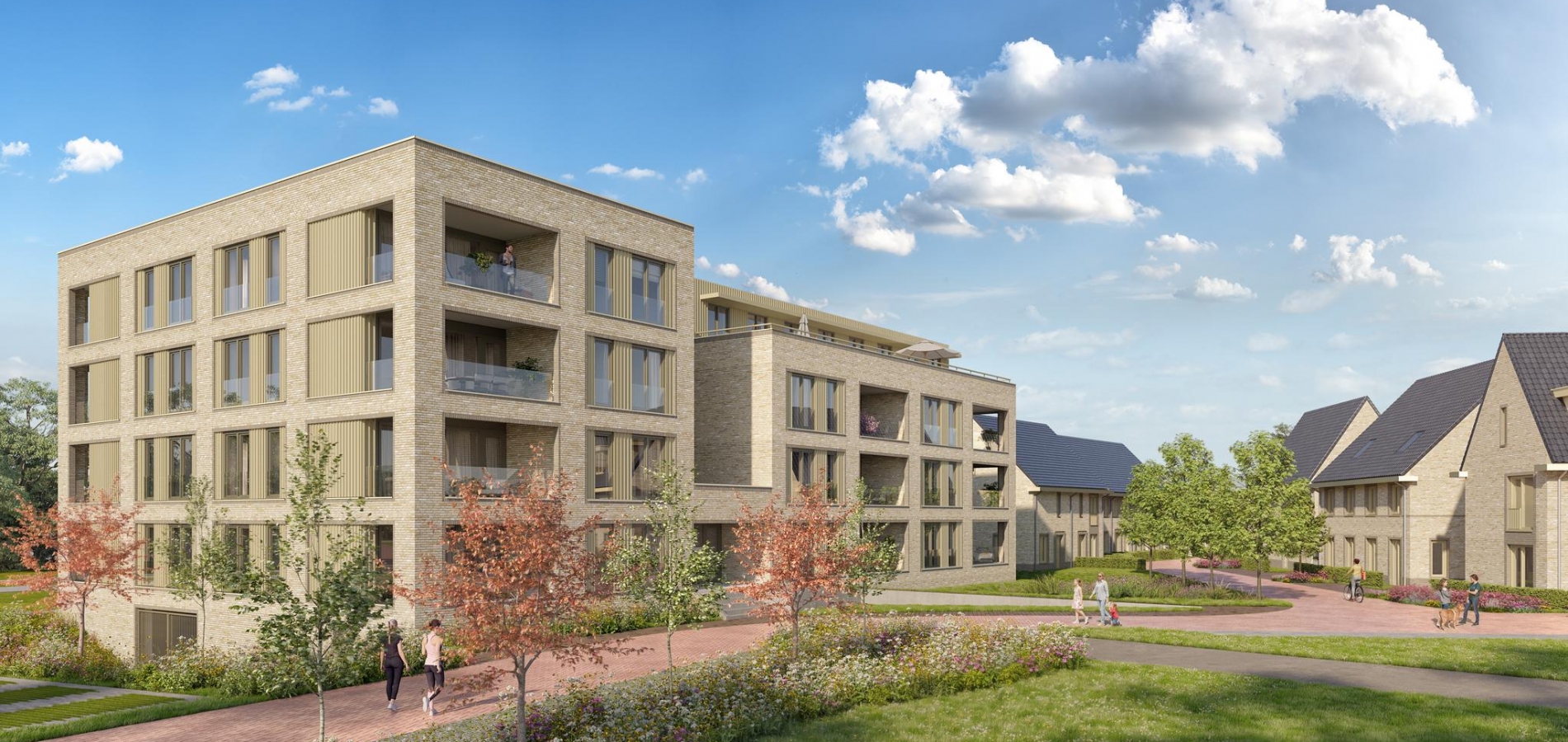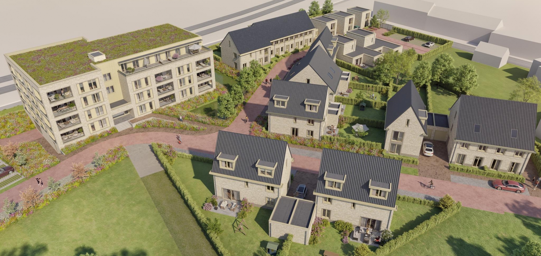 In Bonfleur woon je op de scheidslijn van stad en stilte. De nieuwe woningen sluiten naadloos aan op het dorpse karakter van de omgeving. De bestaande monumentale hoeve blijft behouden en krijgt een prominente plek in de buurt. De rest van het plan is eigentijds, groen en duurzaam. Het groene dak van het appartementengebouw, warmtepompen, wadi’s en bloemrijke bermen dragen bij aan een prettig leefklimaat én meer biodiversiteit. Hier woon je toekomstgericht, zonder in te leveren op comfort of sfeer – integendeel.