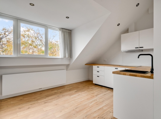 Fraai appartement met mooi uitzicht, op de bovenste verdieping van een voormalig schoolgebouw. Net buiten Maastricht, waar het Heuvelland begint, ligt het mooie Gronsveld. Hier is, op de bovenste verdieping van een voormalig schoolgebouw, dit fraaie 3-kamerappartement gebouwd. Kenmerkend zijn de grote dakkapellen, hoge nok en speelse indeling waardoor dit appartement net dat beetje extra heeft. Er zijn 2 slaapkamers, een mooie badkamer, een separate toiletruimte, een inpandige berging en een fraaie woonkamer met open keuken. Klussen hoeft niet; u kunt al snel verhuizen!