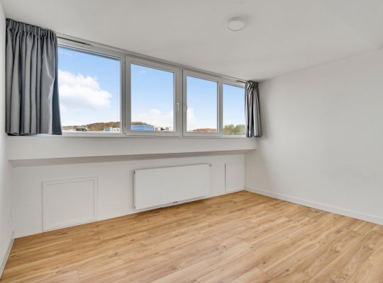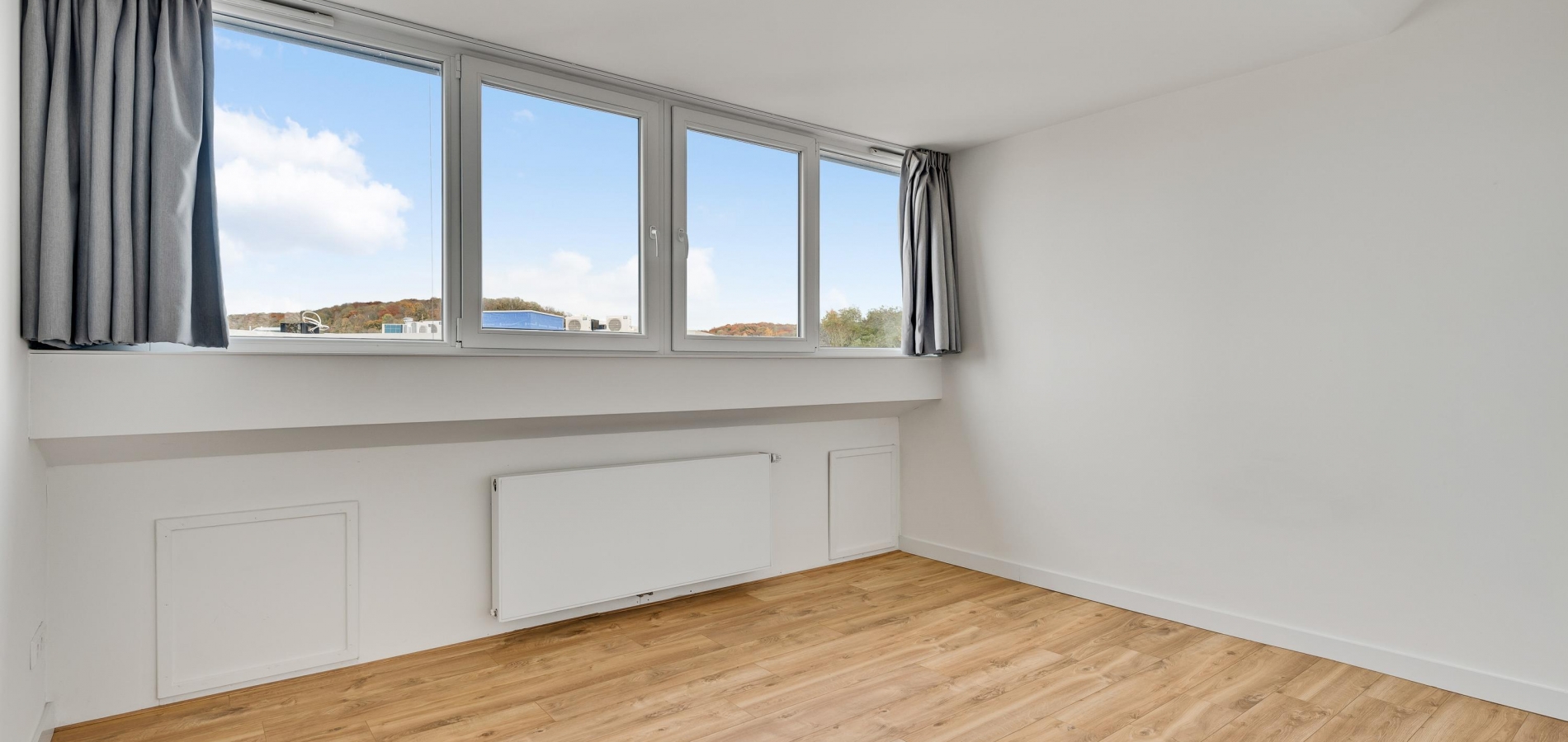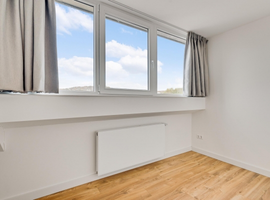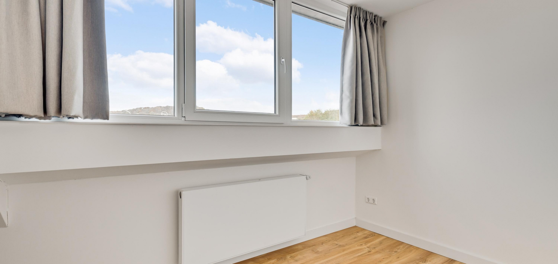 Slaapkamer I (circa 3,88 x 3,33) bevindt zich, net als slaapkamer II (circa 3,83 x 2,11), aan de rustige achterzijde. Vanuit beide kamers kijkt u, over het dak van het appartementengebouw, richting de contouren van het Savelsbos.