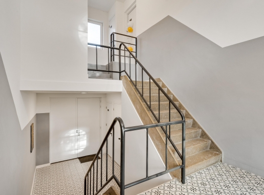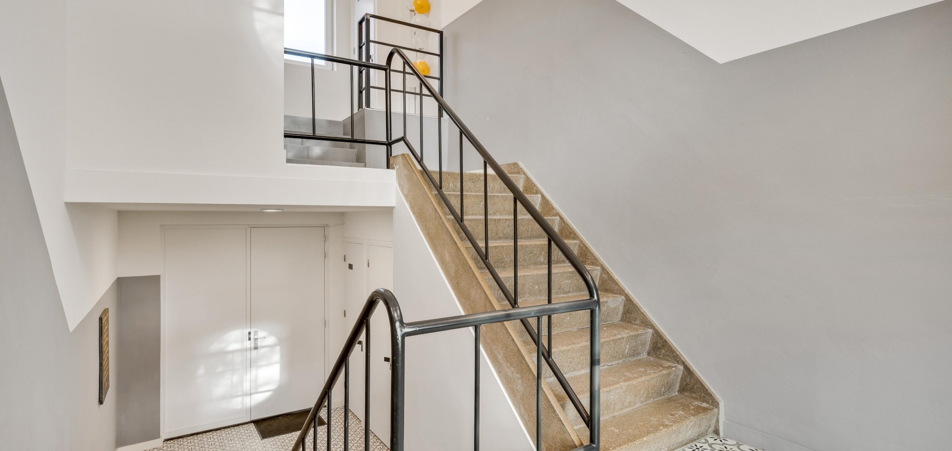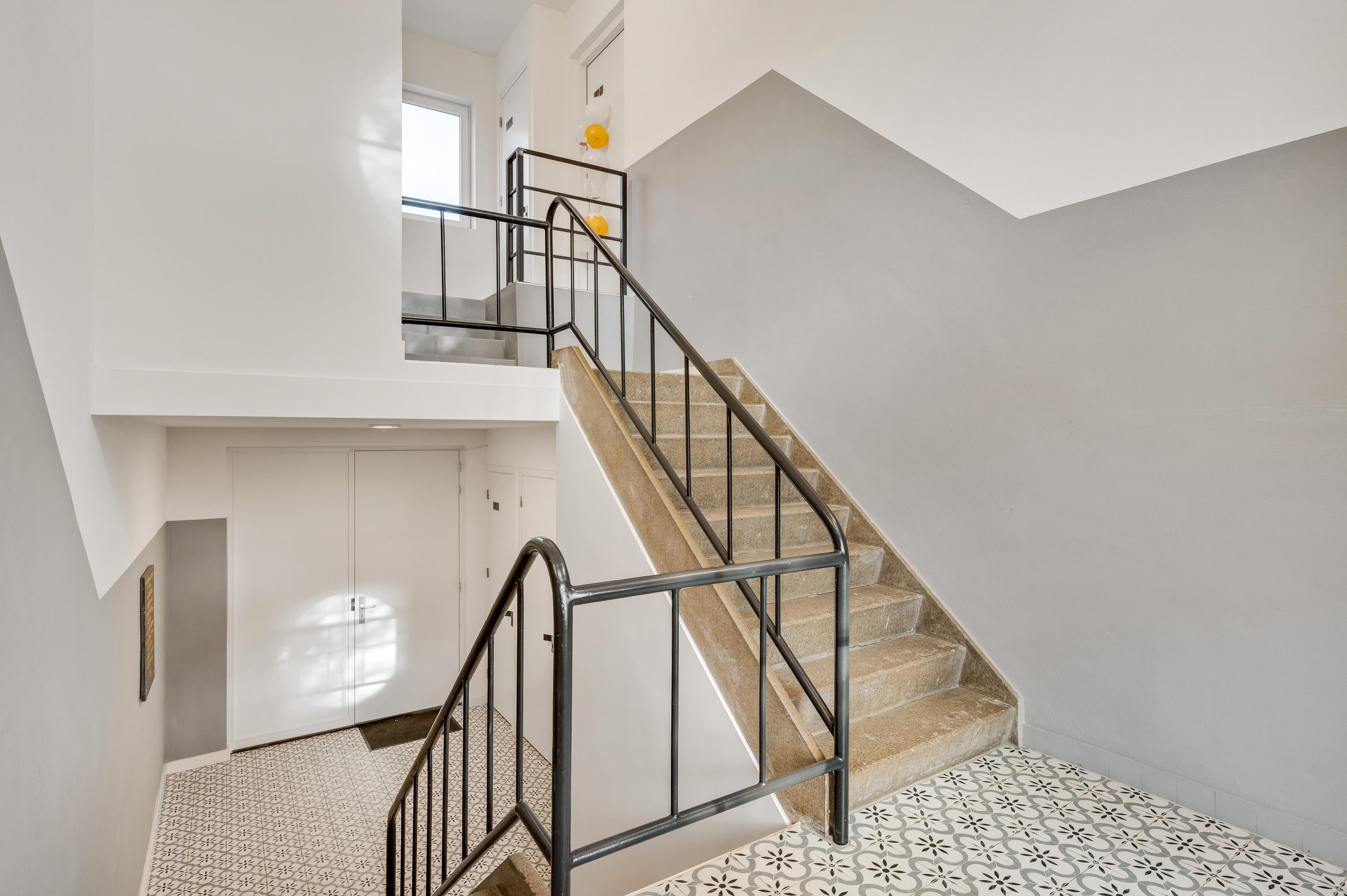Aan de achterzijde van het gebouw is een centrale entree, die hoort bij dit fraaie appartement. Hier ziet u de video-intercom, waardoor u kunt horen en zien wie bij nummer 39e aanbelt. Fraaie elementen in de hal zijn het trappenhuis, de tegelvloer en de ronde ramen in de voorgevel. Vergeet niet om het marmeren plateau te bewonderen waarop de namen van de architect, burgemeester, wethouder en anderen te bewonderen zijn. Daarnaast is er op de begane grond een gezamenlijke fietsenberging, die bewoners de mogelijkheid biedt hun fiets veilig en droog te stallen.