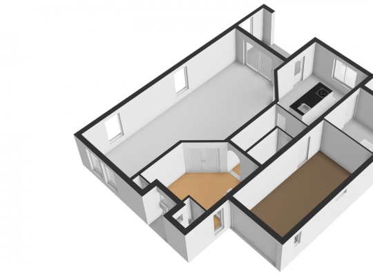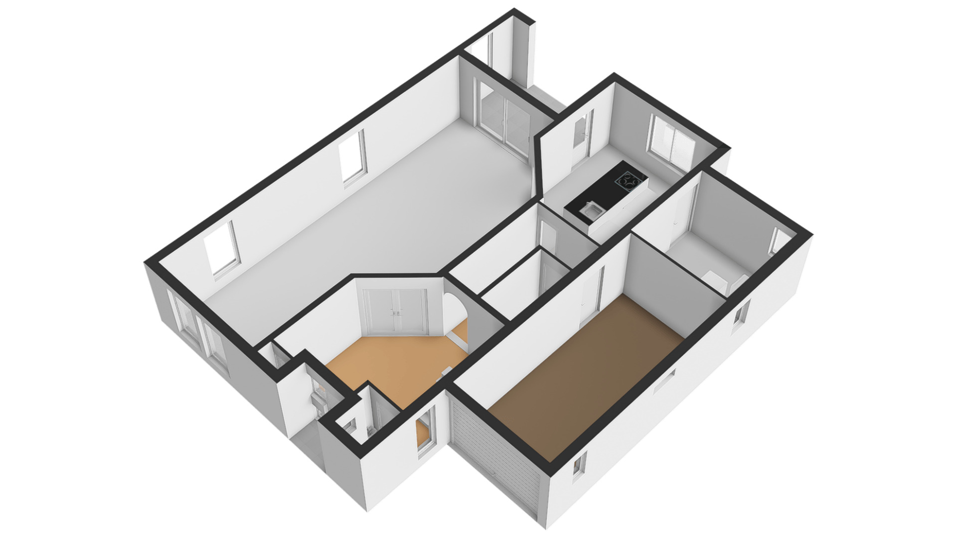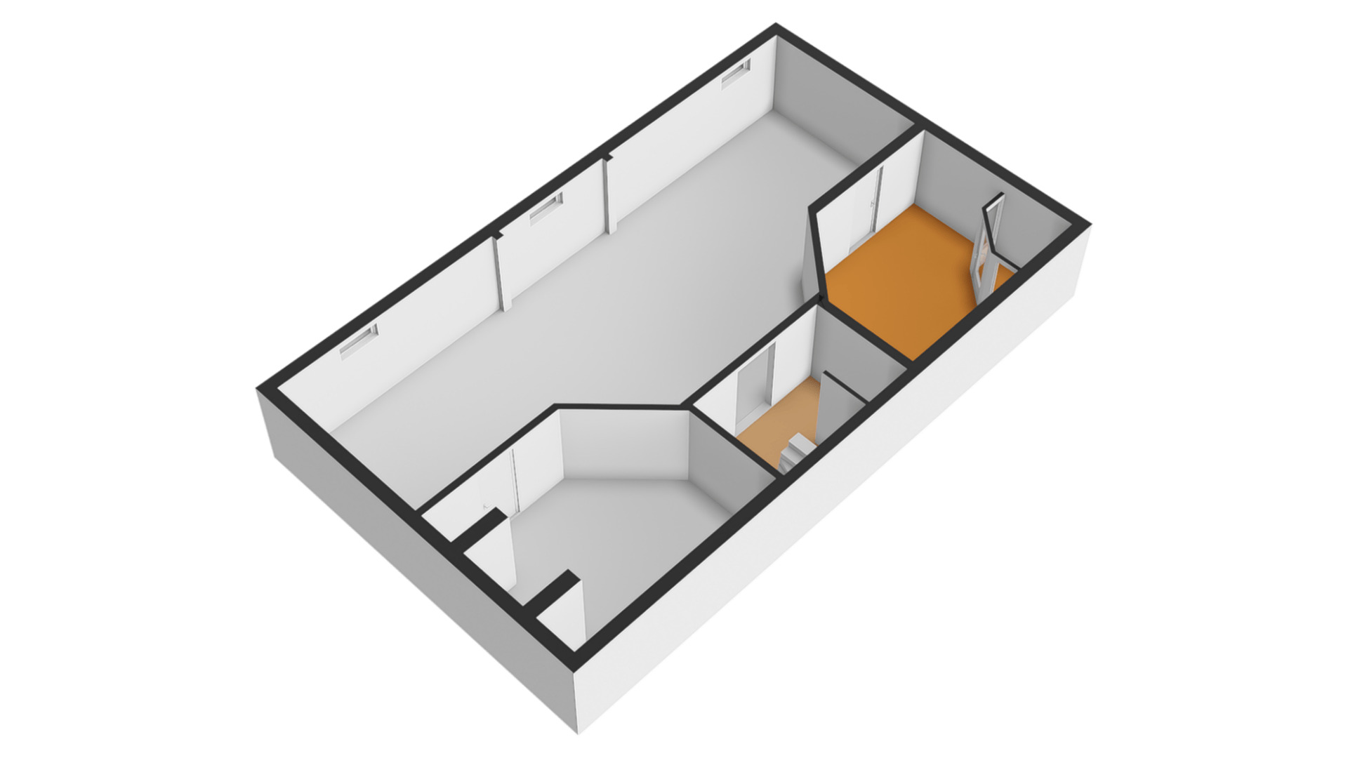 Aan de achterzijde is de wellnessruimte met een infraroodsauna en aan de voorzijde is een hobbyruimte. Beide ruimtes hebben een vloeroppervlakte van circa 18 m2 en er ligt, net als in de andere ruimtes, een donkergrijze tegelvloer.
