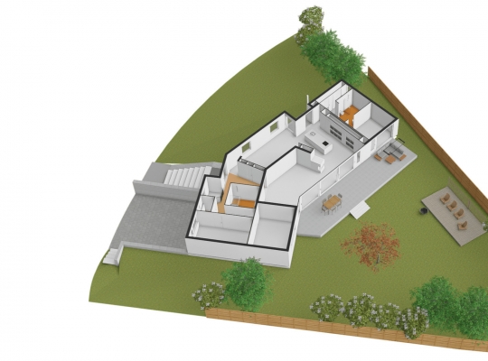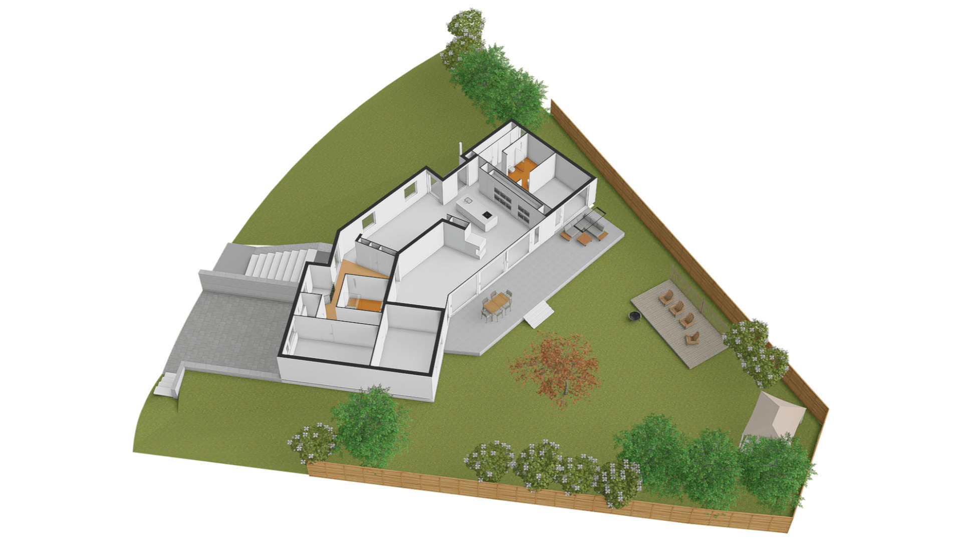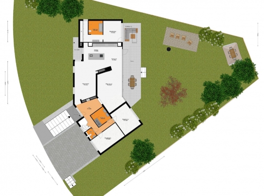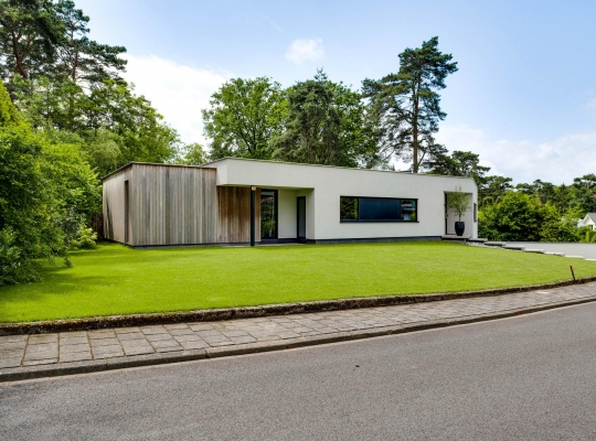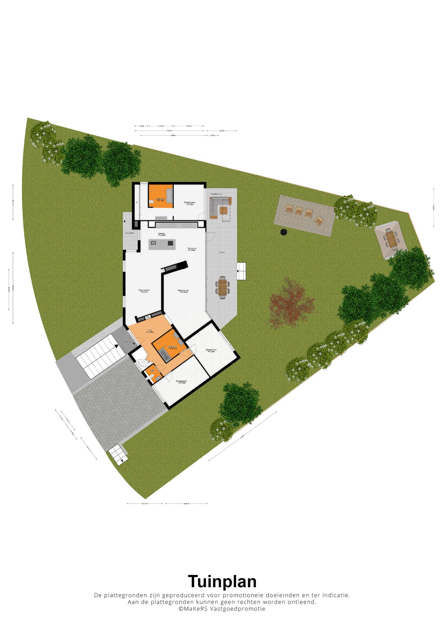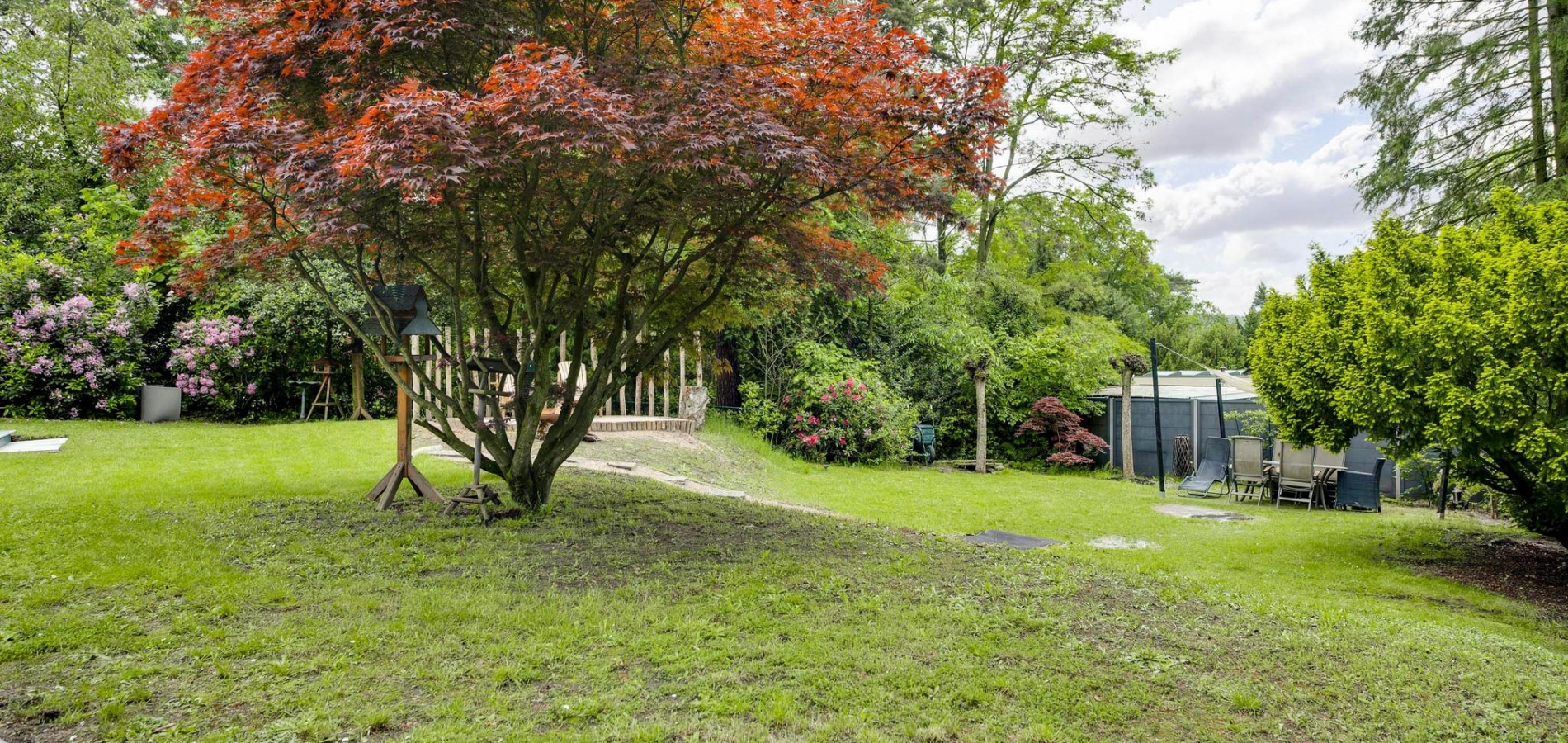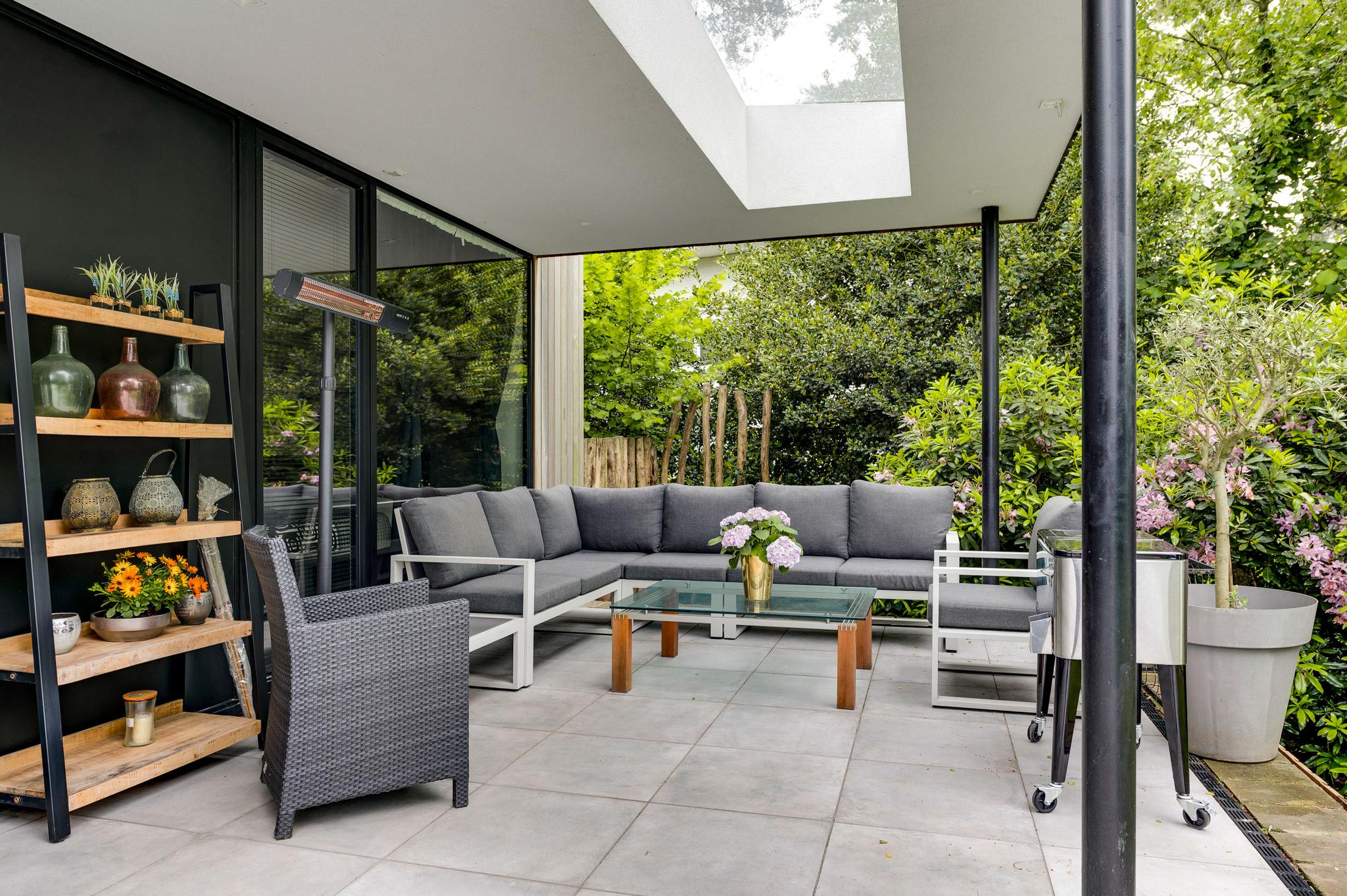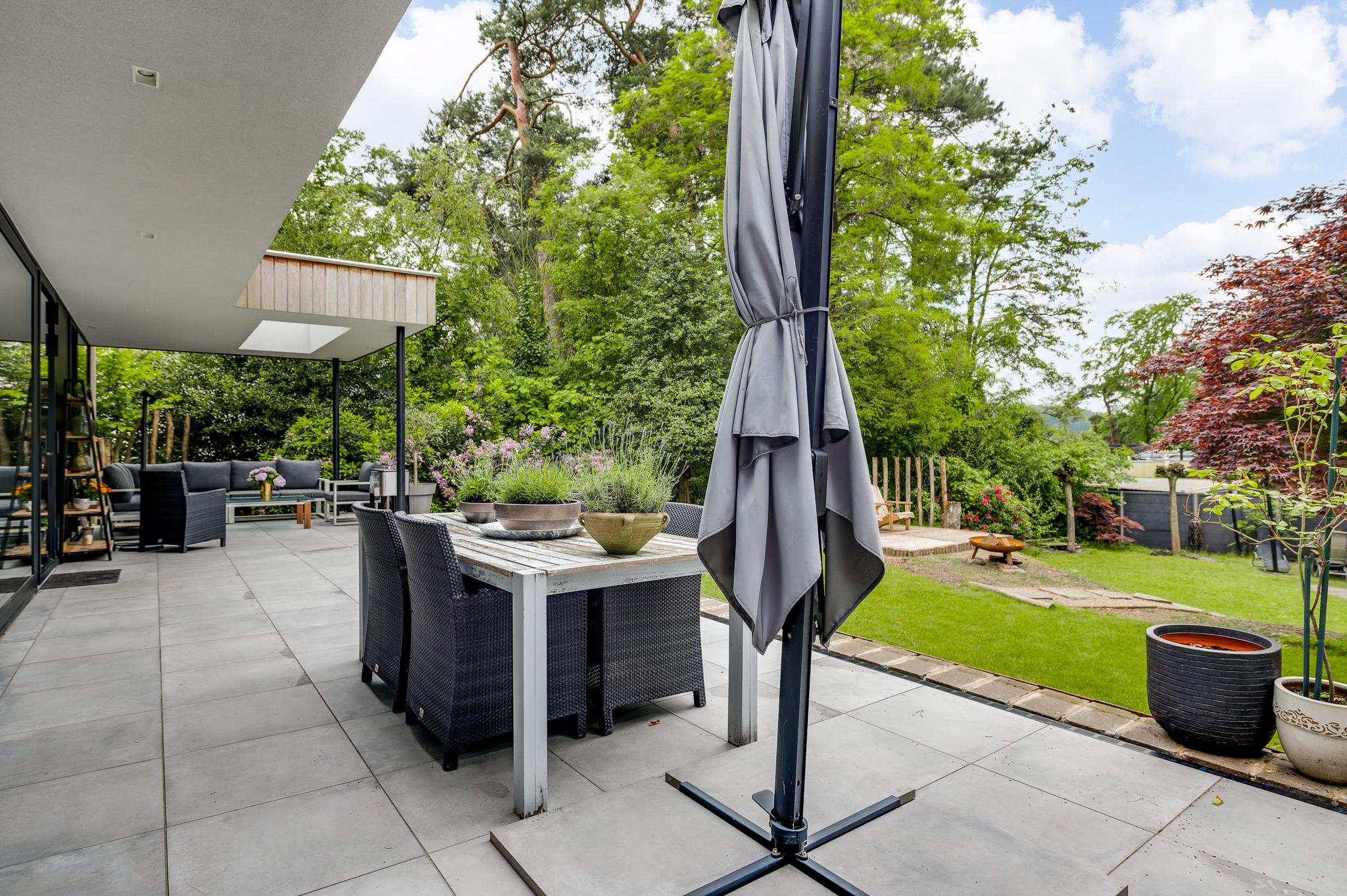 Deze designvilla staat op een fraai perceel van 1260 m2 met een royale frontbreedte en een uitstekende zonligging (zuiden). Het deels overdekte terras heeft een oppervlakte van ca. 65 m2 en de bostuin is fraai aangelegd met bomen, brede borders, een gazon en een zonneterras.