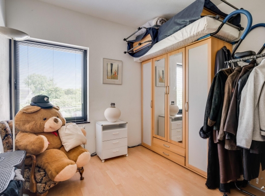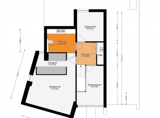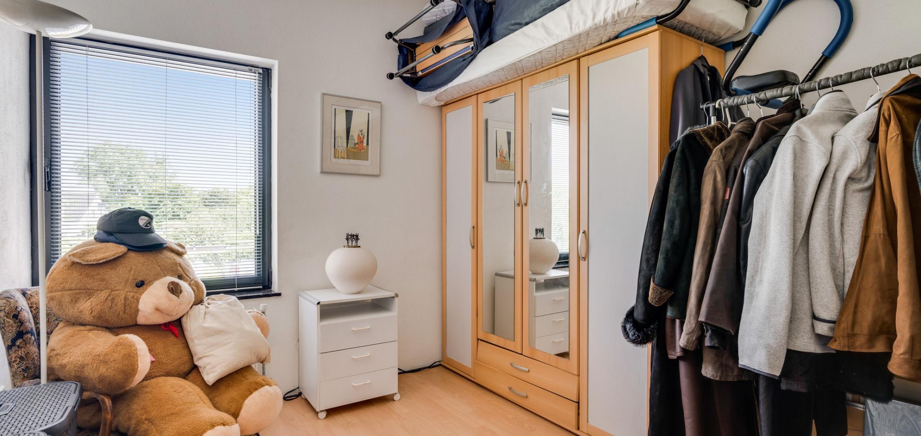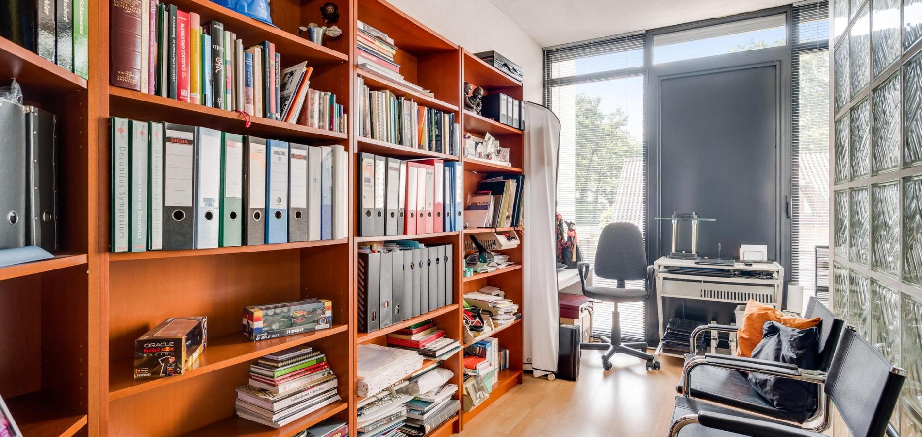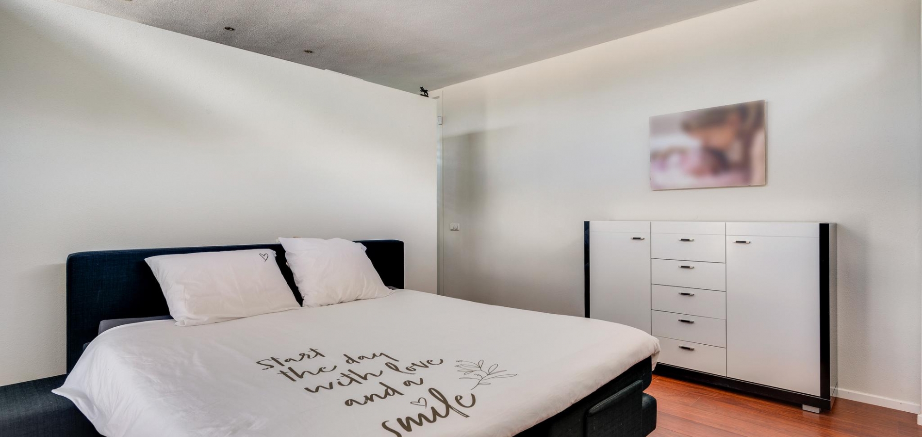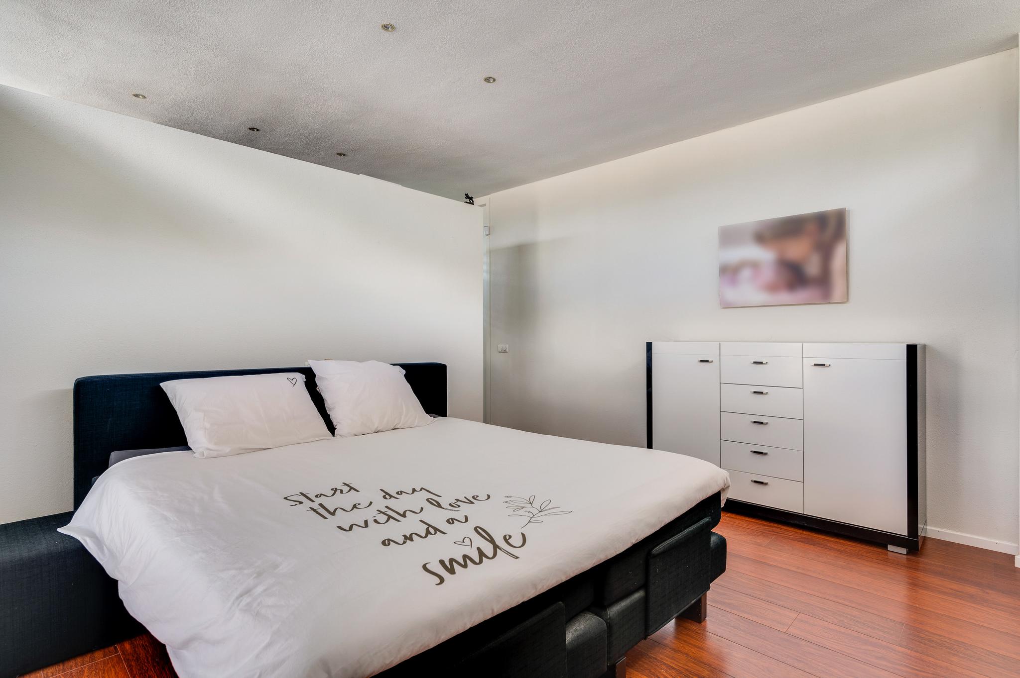 Volg de trap vanuit de hal naar de overloop, die dankzij de muren van glazen bouwstenen heel licht is. Aan de voorzijde is slaapkamer I met inloopkast met fraaie raampartijen en een hoog plafond. Naast deze slaapkamer is een studeer-/werkkamer (ca. 9,8 m2), die ook als slaapkamer II kan worden gebruikt. Aan de achterzijde is slaapkamer III (ca. 9,6 m2) met prachtig uitzicht naar de tuin.