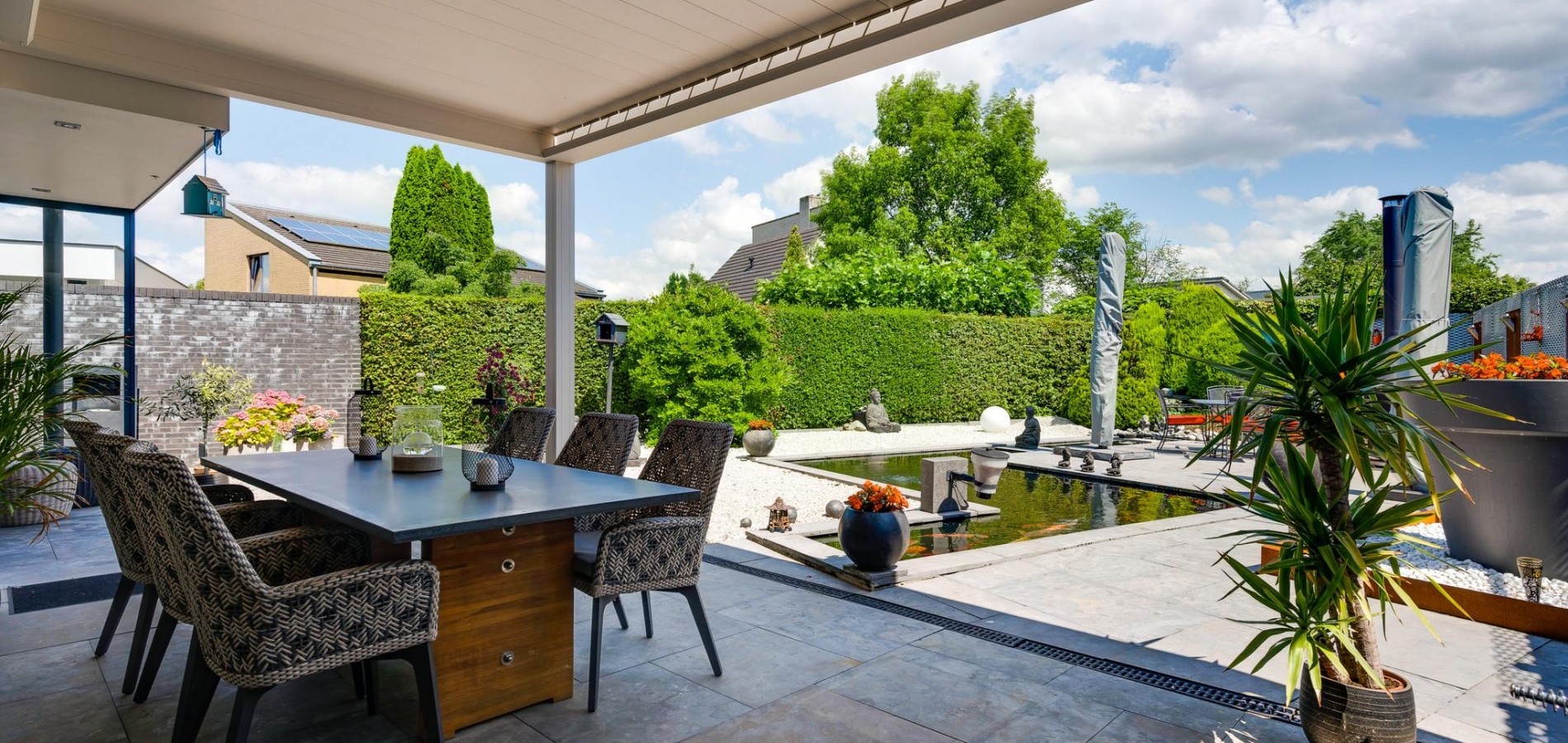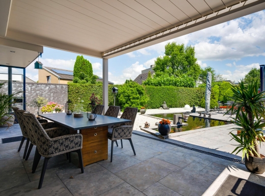 Luxe overkapping/pergola met een elektrisch bedienbaar lamellendak (met regensensor)