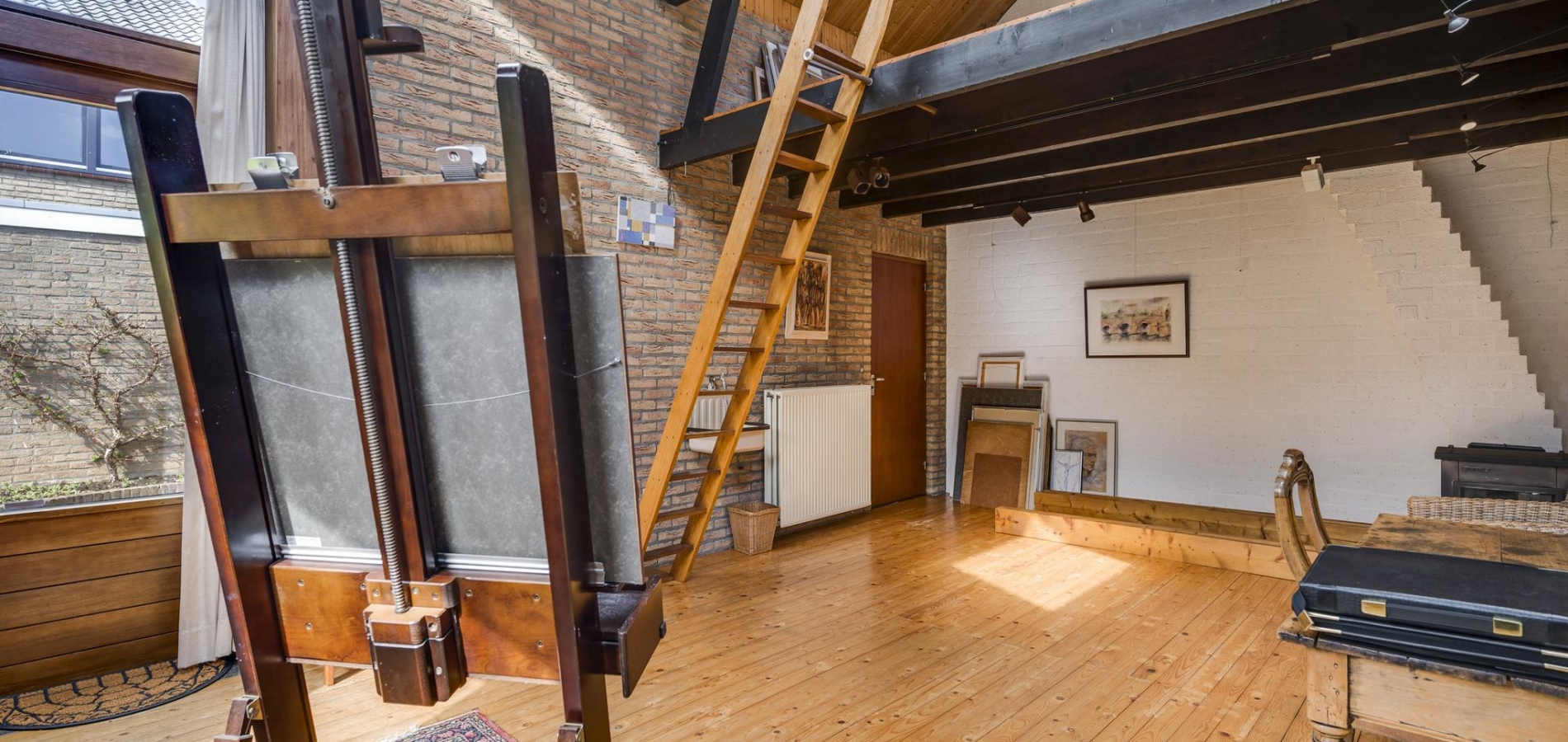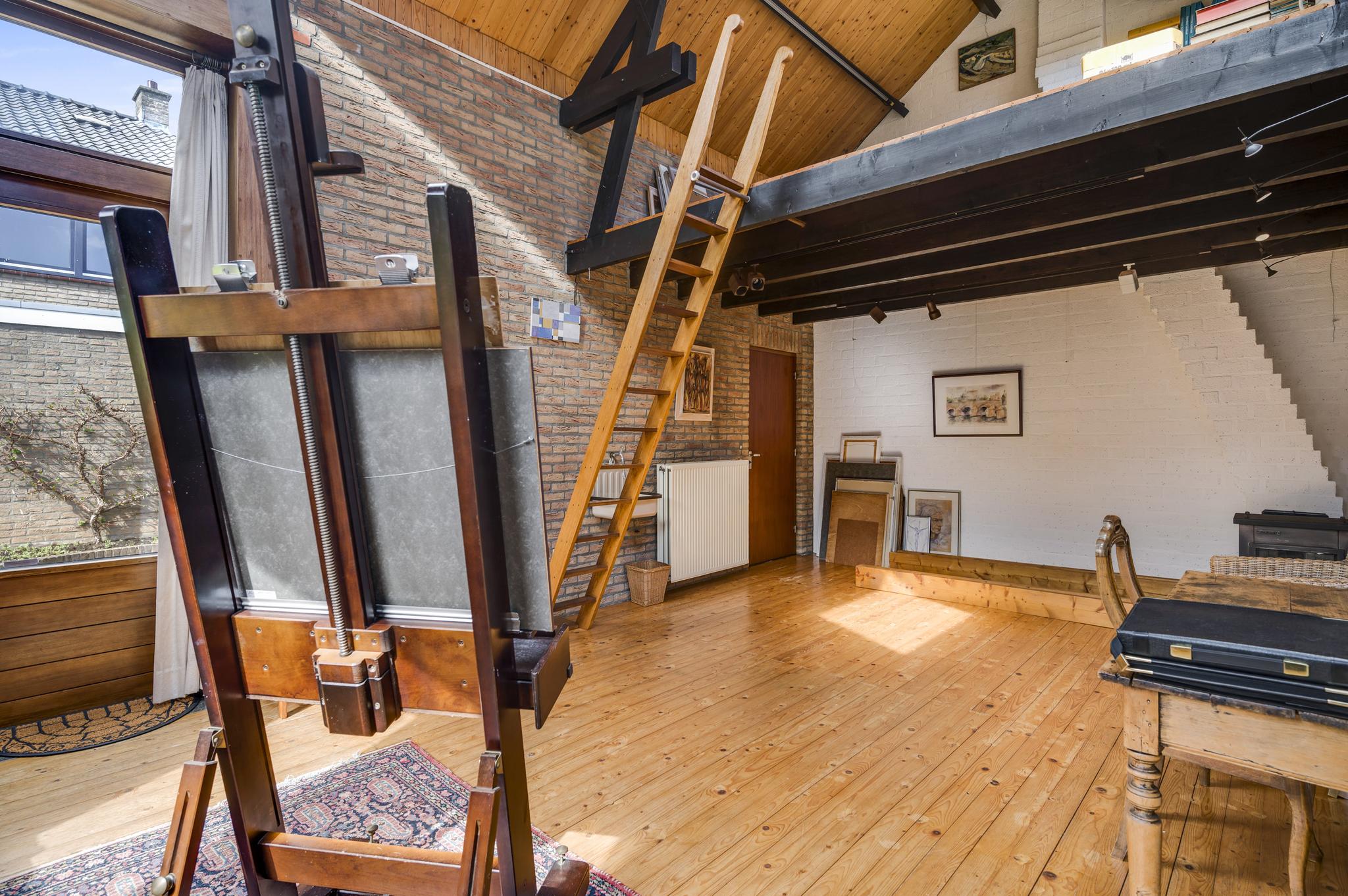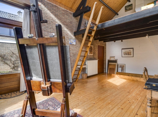 Zeer ruime, verwarmde atelierruimte met een entresol en stahoge kelder