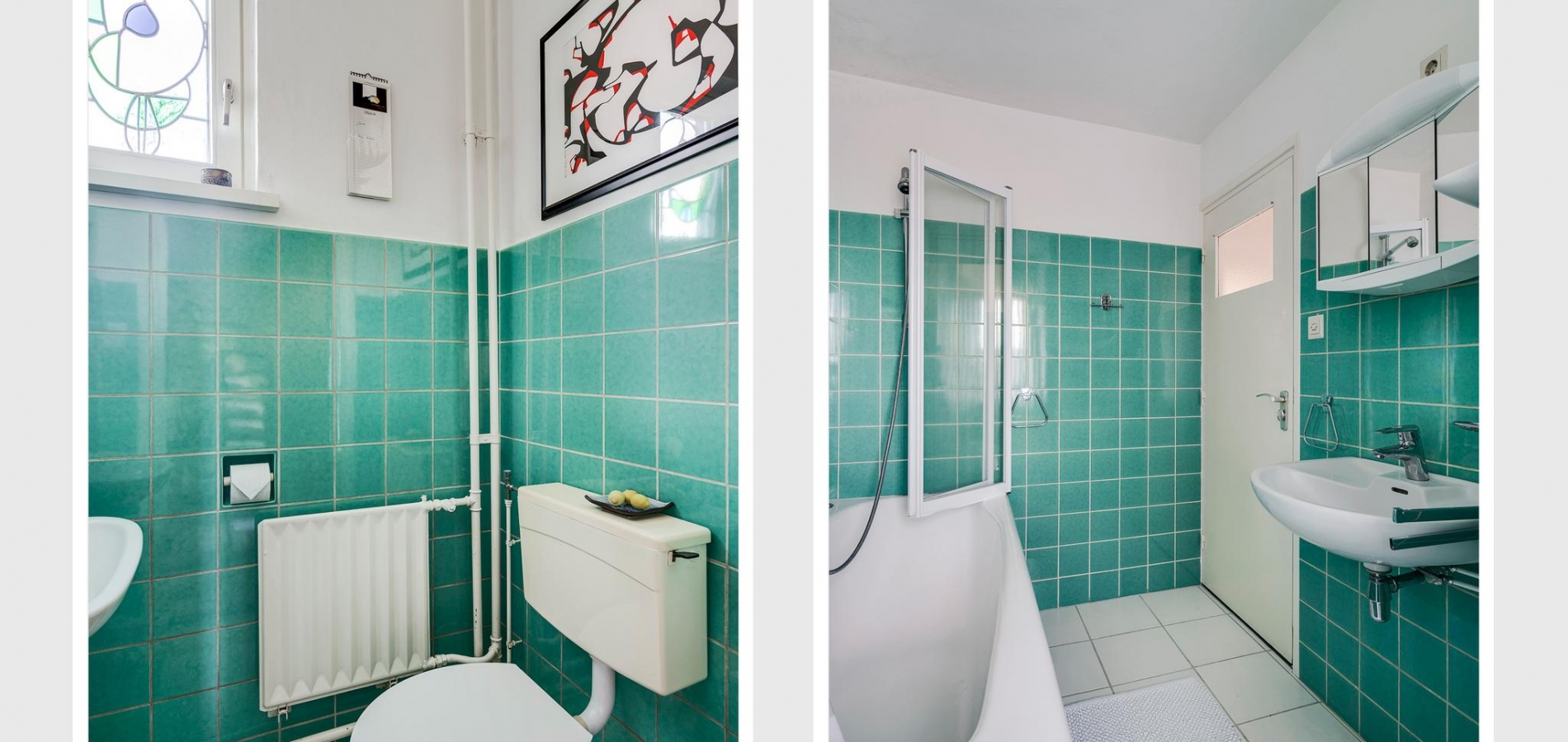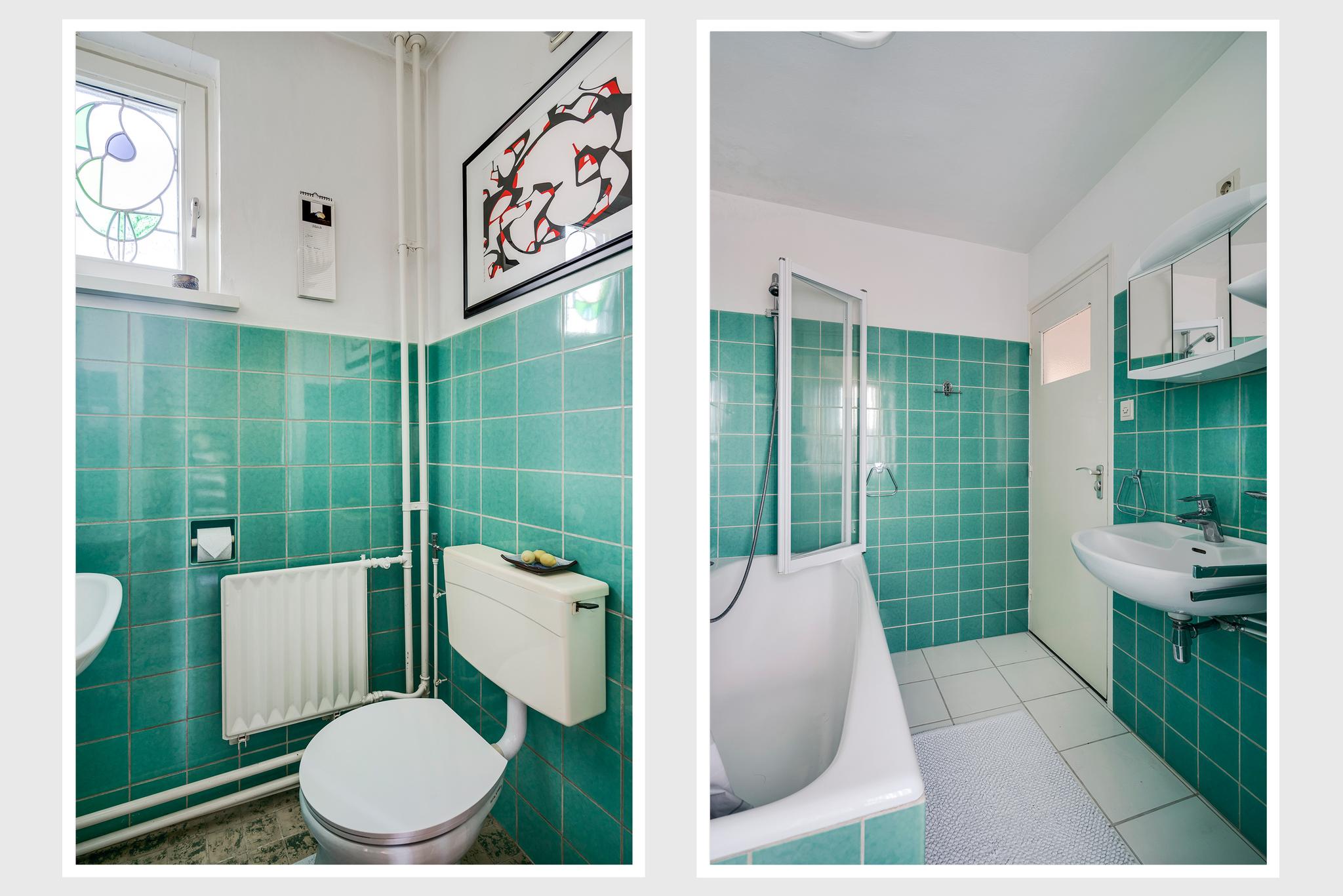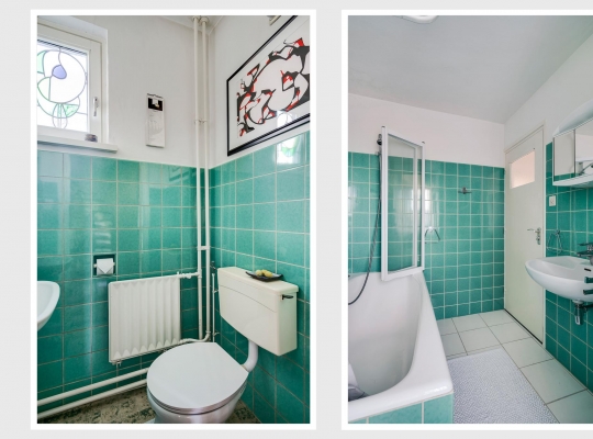 De badkamer (3.17 x 1.74/1.22) is ingedeeld met een ligbad, tweede toilet en een wastafel. Het is mogelijk om de badkamer samen te voegen met de naastgelegen slaapkamer, waardoor er een zeer ruime badkamer ontstaat.