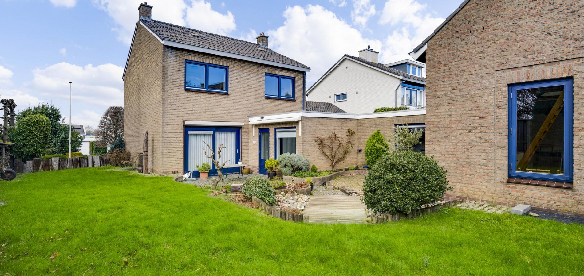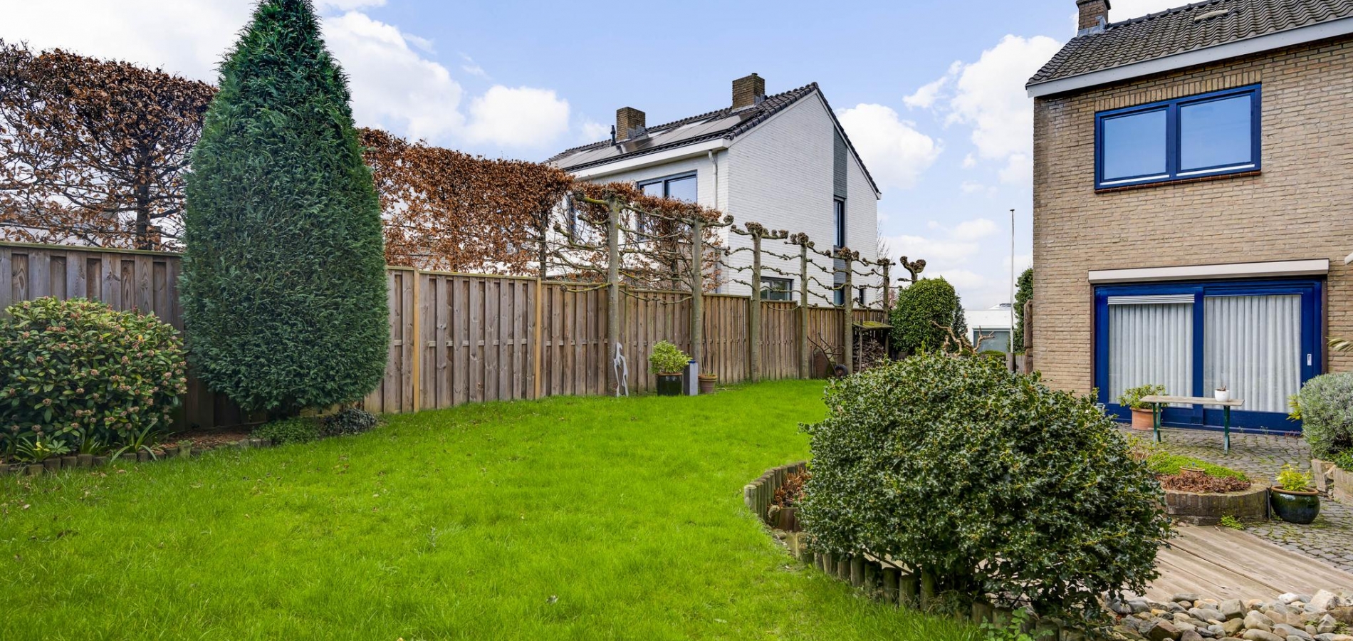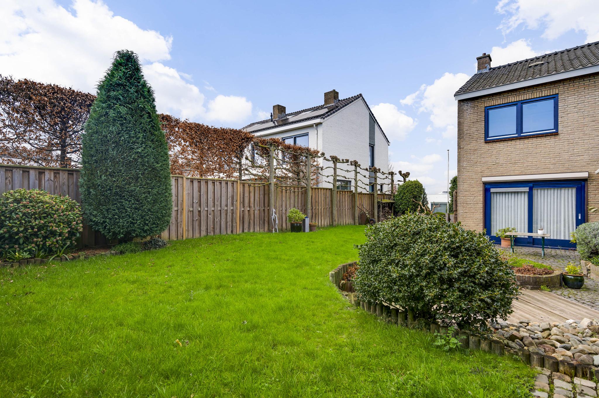 De voor-, zij- en achtertuin zijn goed onderhouden en op de diepe oprit is parkeergelegenheid voor meerdere auto’s. De terrassen aan de rechter- en achterzijde hebben een goede zonligging en het grote gazon is niet alleen perfect voor de tuinliefhebbers, maar ook voor de kinderen. Hier hebben ze volop ruimte om buiten te spelen.