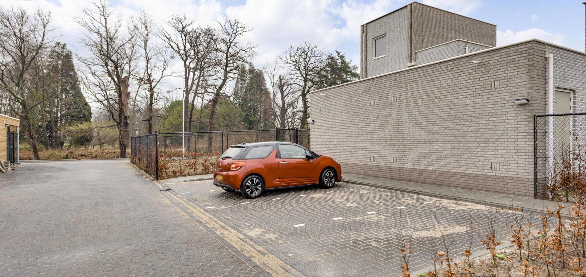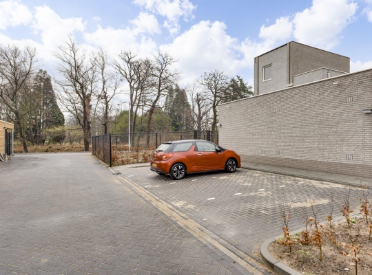Vaste parkeerplek op een mandelig terrein, voorzien van een kabel naar de meterkast ten behoeve van een laadpaal