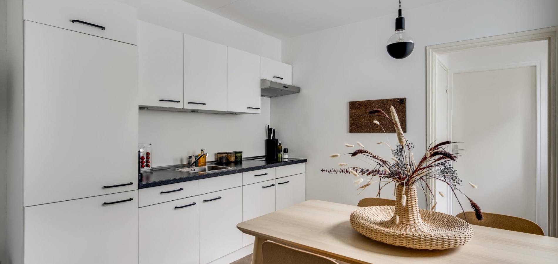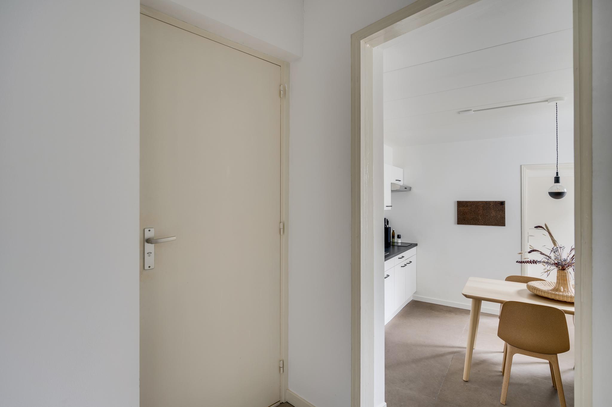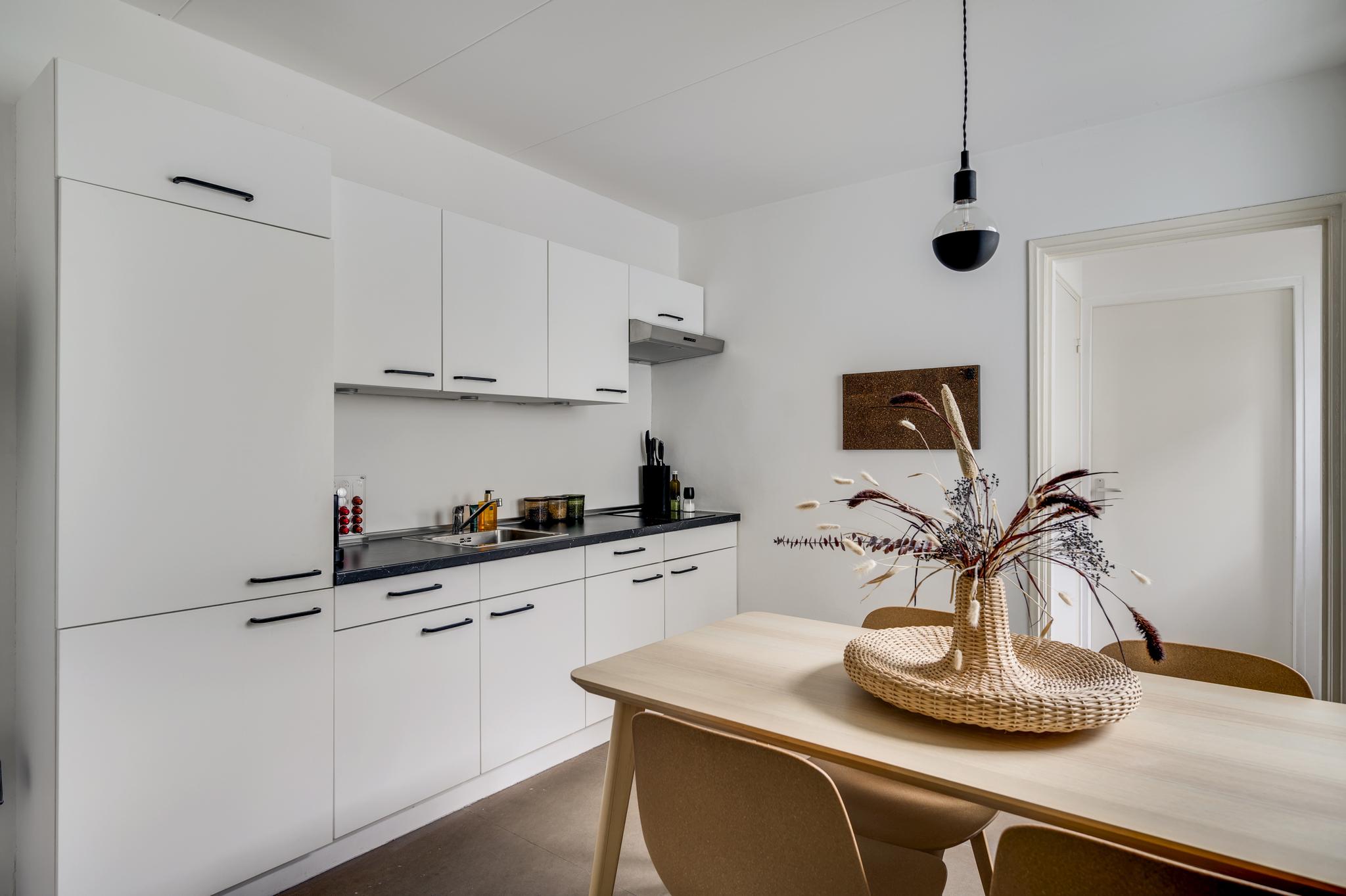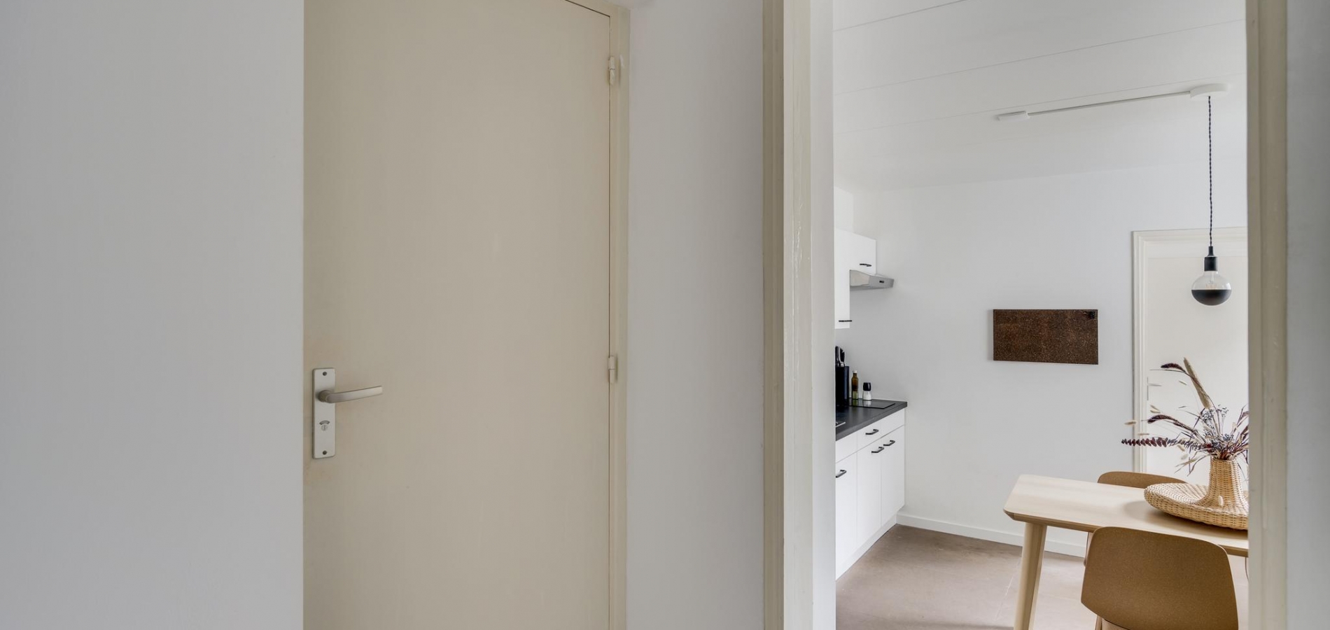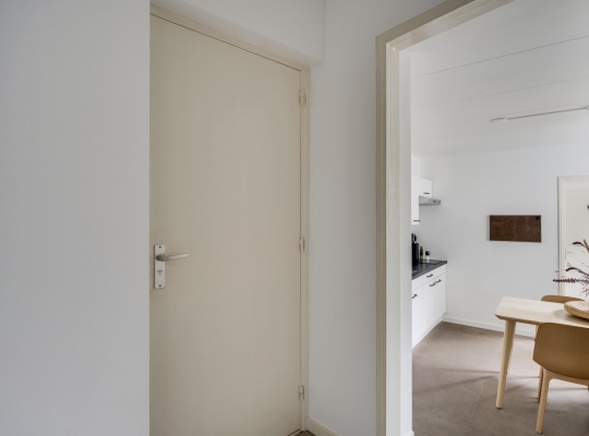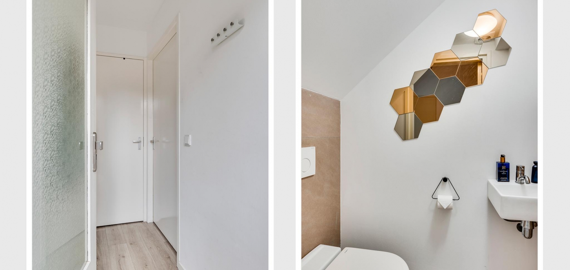 Via een portaal met moderne toiletruimte is de eetkeuken (ca. 3.07 x 2.98) te bereiken. Er is ruimte voor een grote eettafel en door het grote raam valt veel licht naar binnen. De wandopstelling (2020) is voorzien van een inductie kookplaat, afzuigkap en een koelkast met vriesvak.