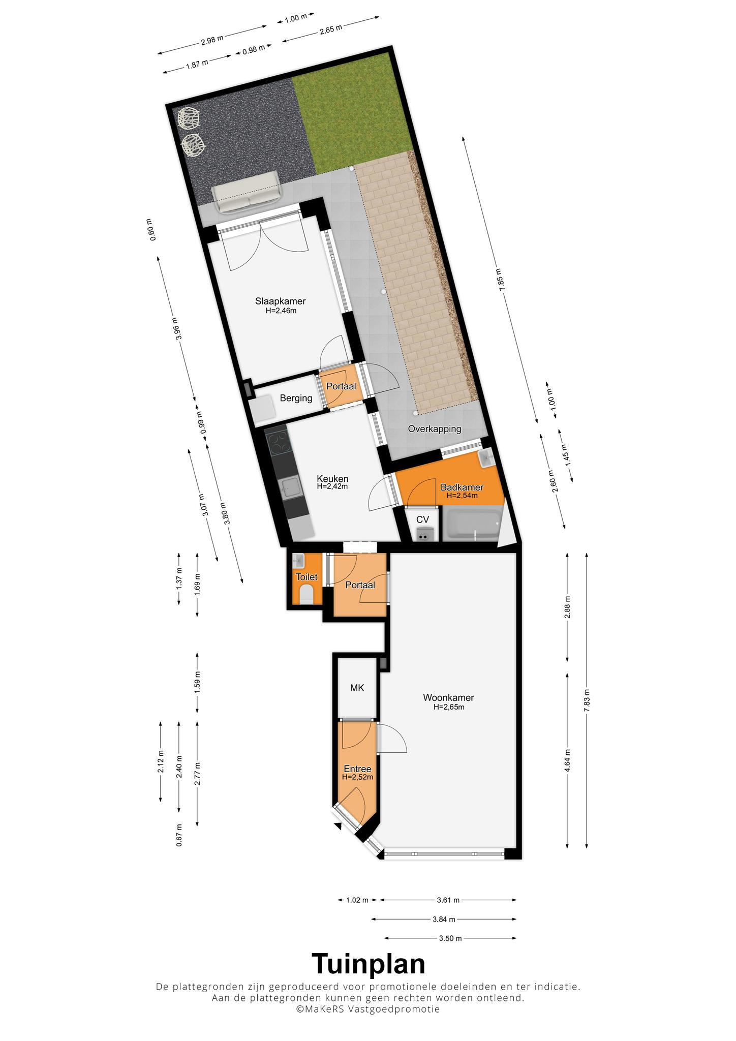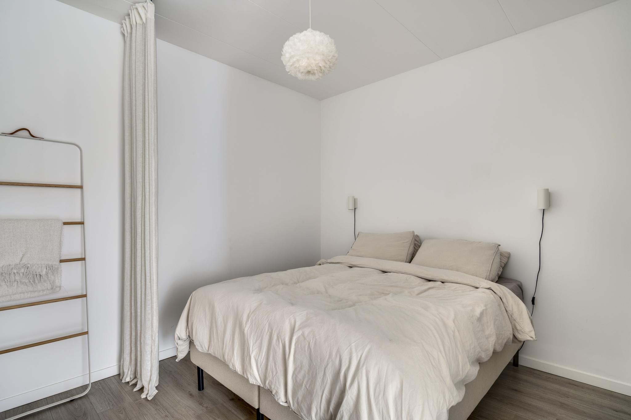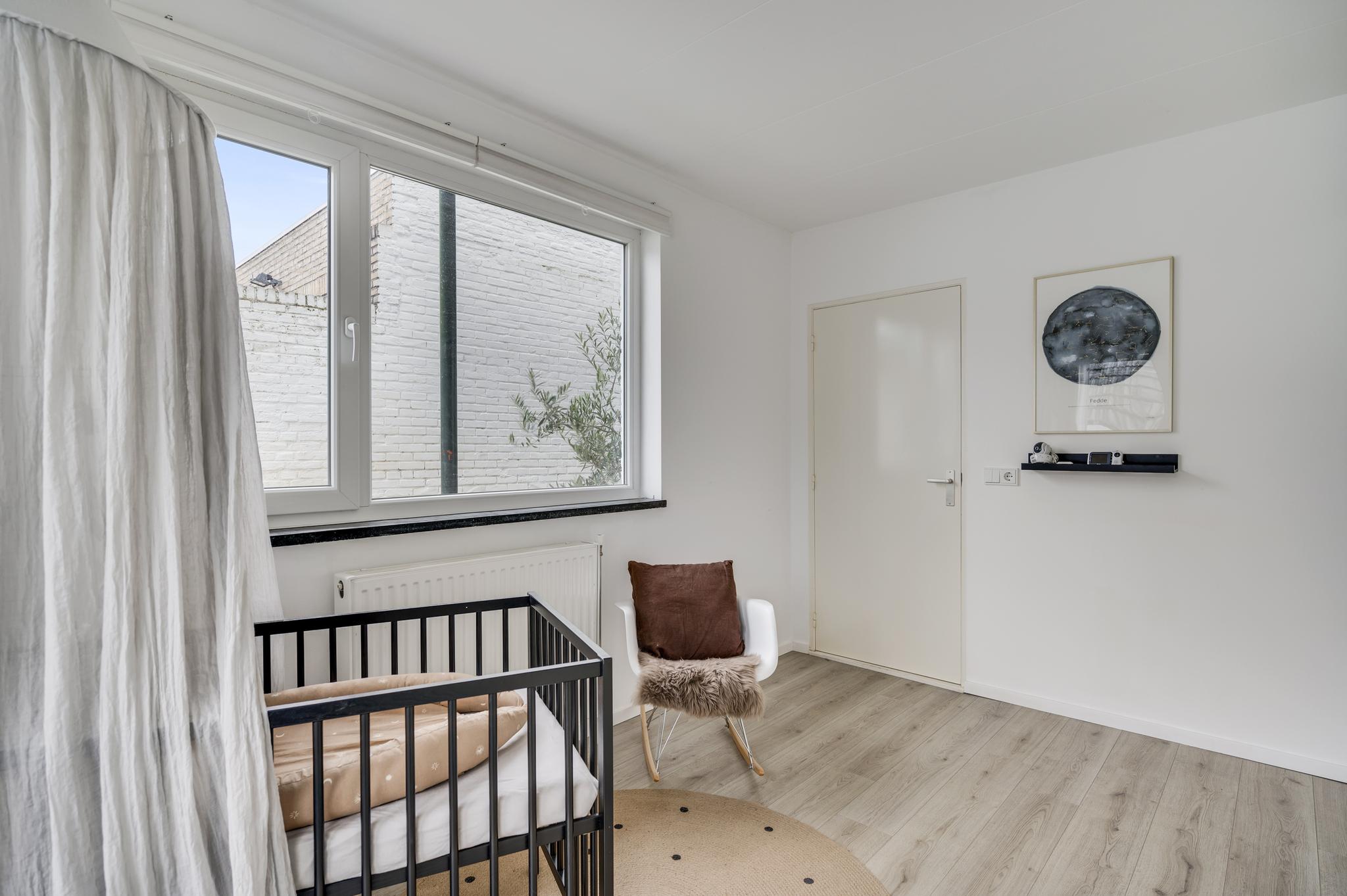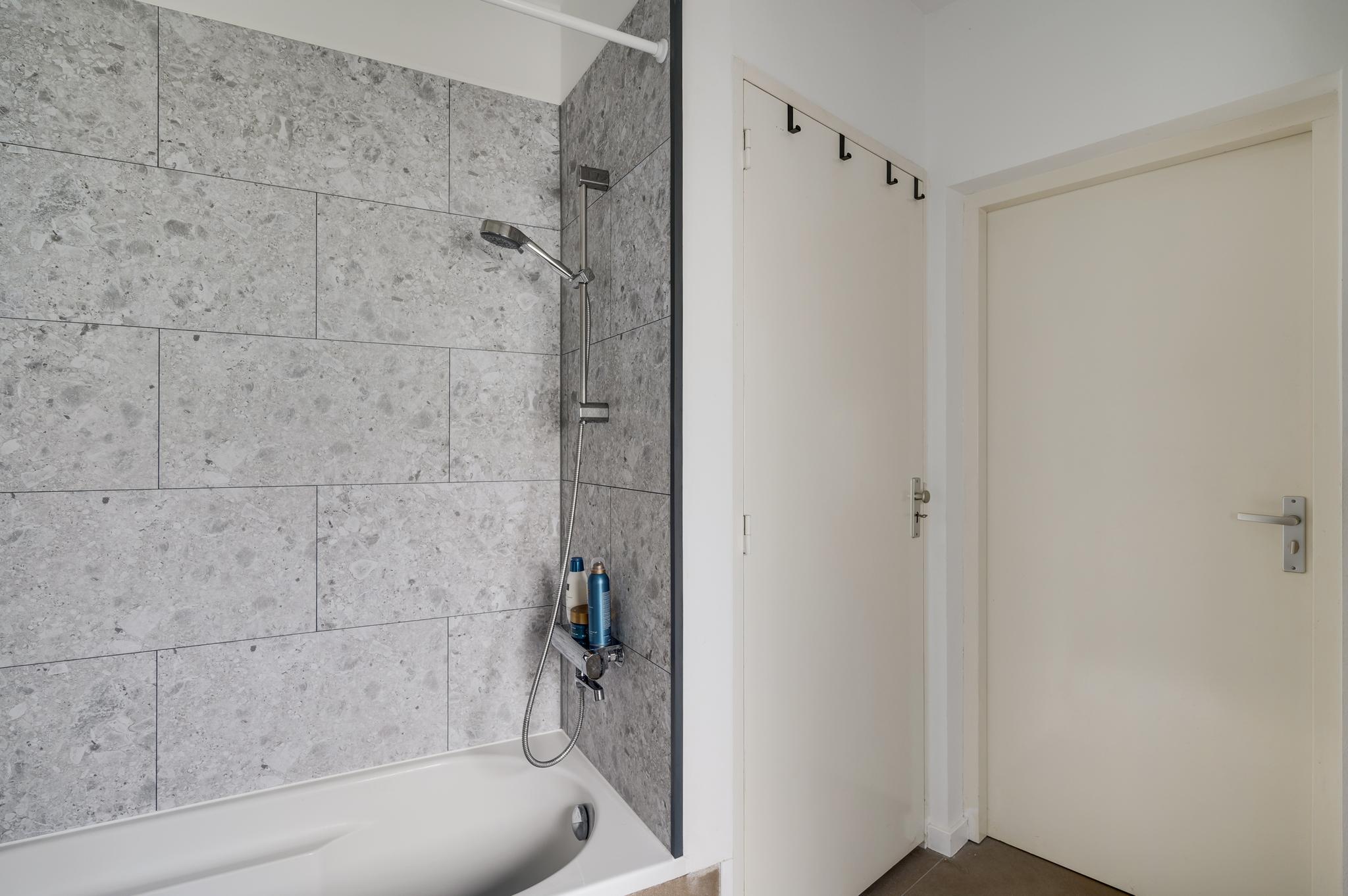 In het verlengde van de keuken is een portaal waaraan de wasruimte en slaapkamer grenzen. De slaapkamer (3.96 x 2.98) heeft openslaande deuren naar de tuin en is goed in te delen als tweepersoonskamer. Als laatste ziet u de moderne badkamer (ca. 2.65 x 2.60) met een aparte cv-ruimte. De badkamer is fraai ingedeeld met een ligbad/douchecombinatie, een wastafel en trendy accessoires.