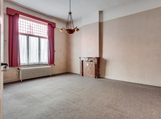 In het midden van de imposante voorgevel is de entree met dubbele deuren. In de lange hal ziet u een 3.50 meter hoog plafond, een marmeren vloer, de prachtige trap en grote paneeldeuren. Aan het einde van de hal is de toiletruimte met fonteintje.