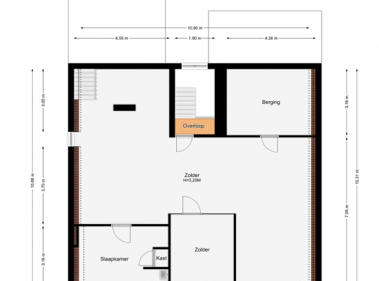 Onder het hoge, schuine dak heeft meer dan 100 m2 overige inpandige ruimte tot uw beschikking, met de mogelijkheid om extra kamers of een inpandig gastenverblijf te realiseren. De houten dakconstructie en de nokhoogte van maximaal 5.25 meter is overweldigend qua grootte. Welke invulling geeft u aan al deze m3?