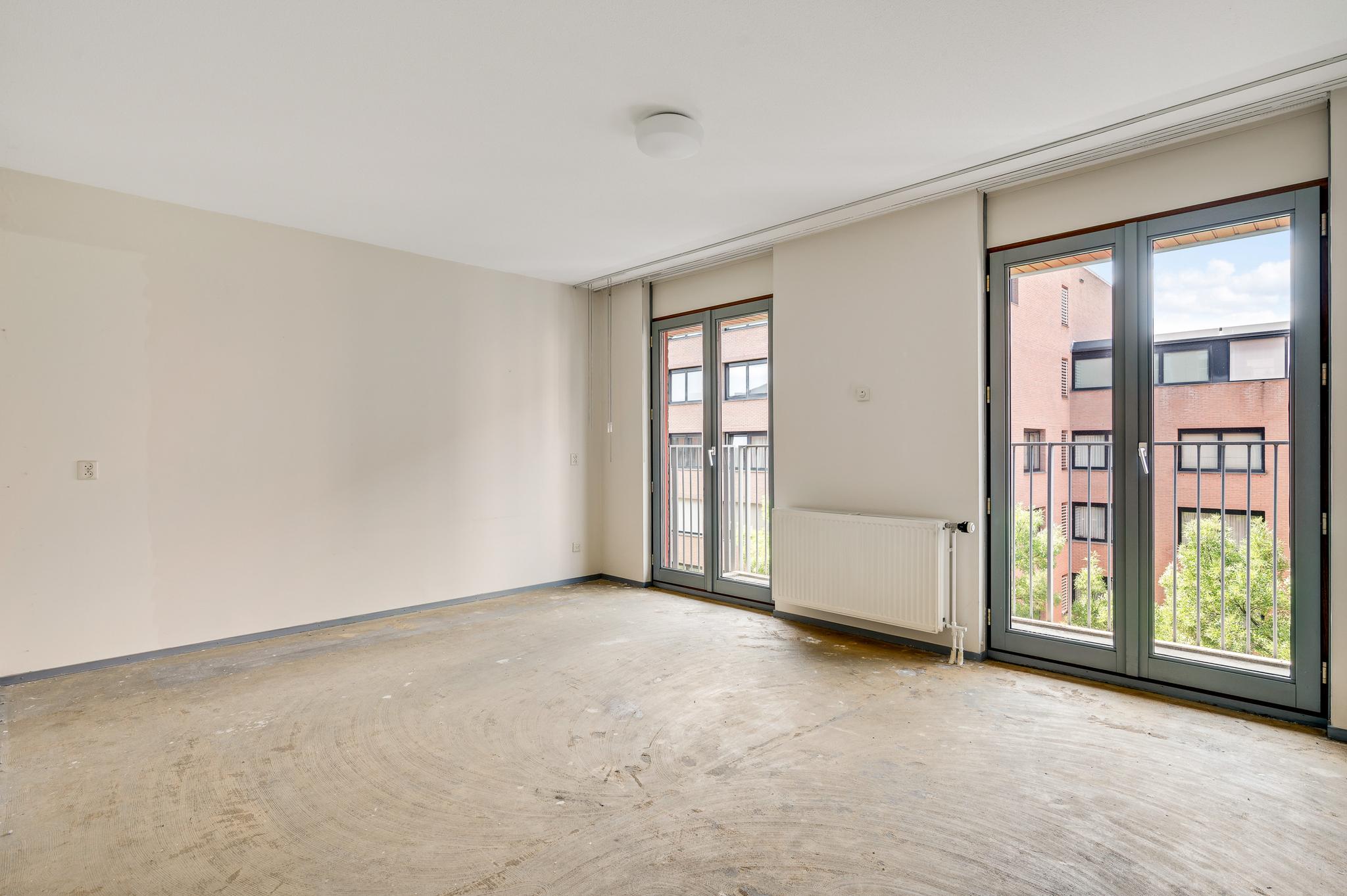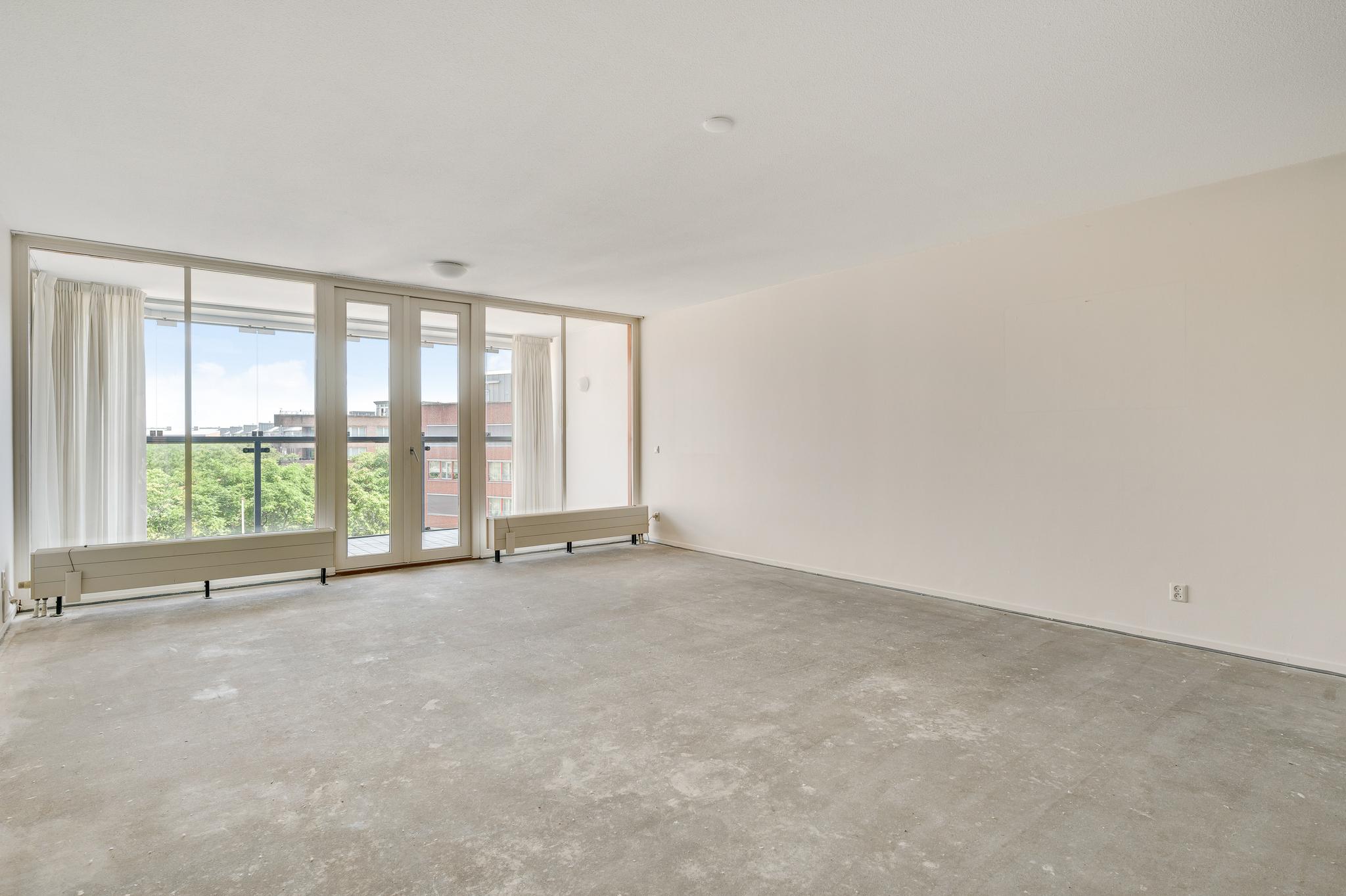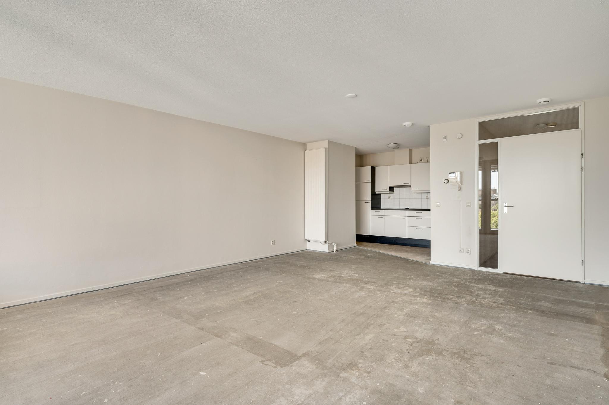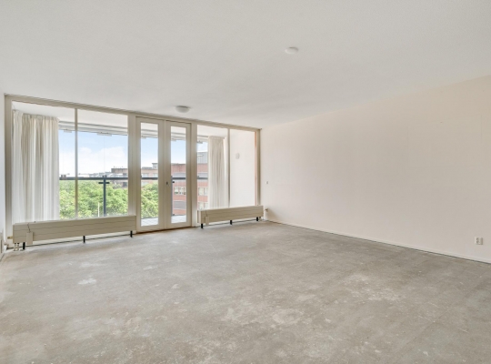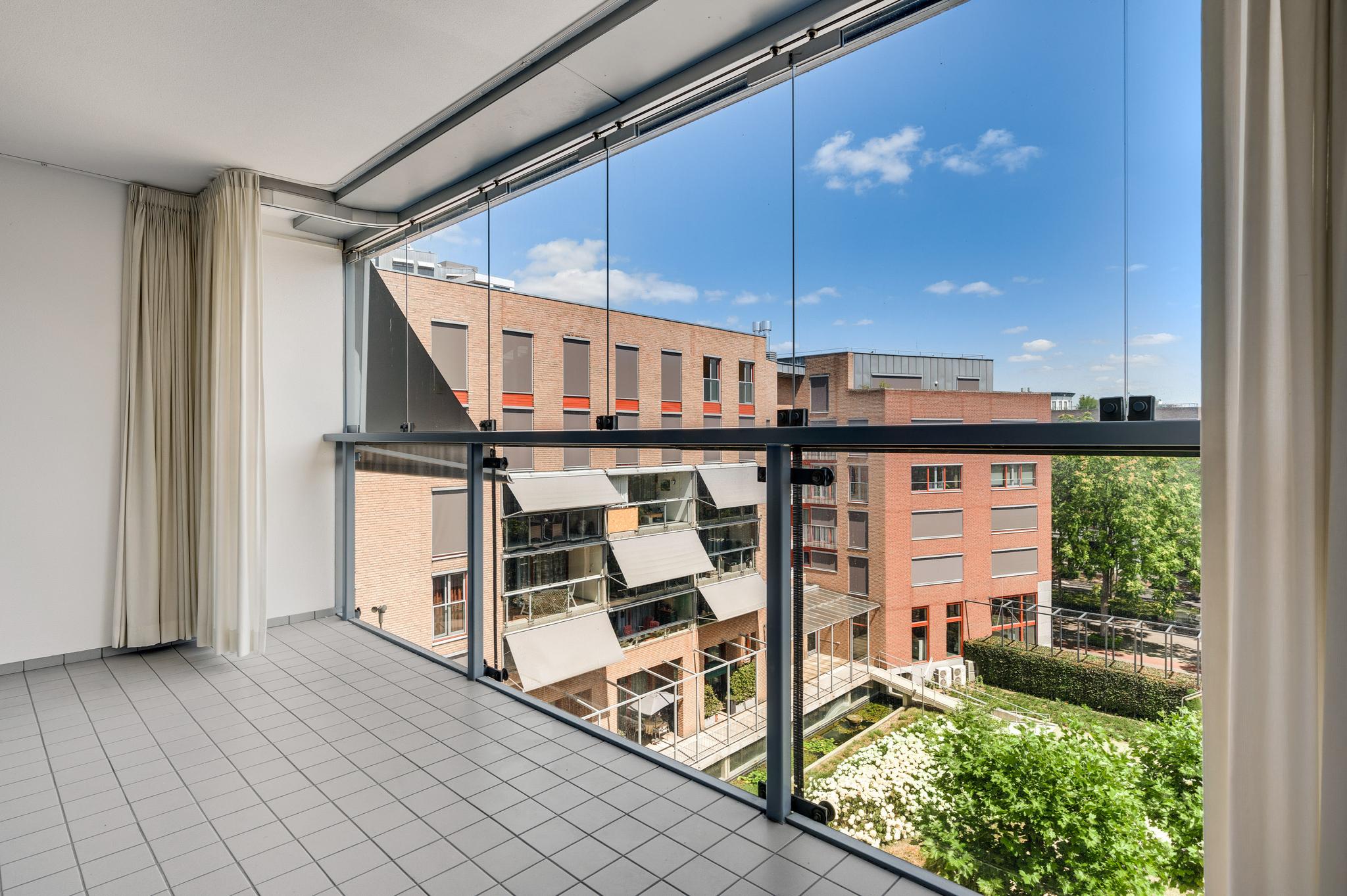 De woonkamer (circa 6,38 x 5,00) is een leefruimte van goed formaat, met openslaande deuren naar de loggia (circa 5,00 x 2,20). Vanuit de woonkamer kijkt u, via de loggia, naar de boomtoppen in de sfeervolle binnentuin. In de halfopen keuken staat een lichte, ruime hoekopstelling met een keramische kookplaat, afzuigkap en een koelkast.