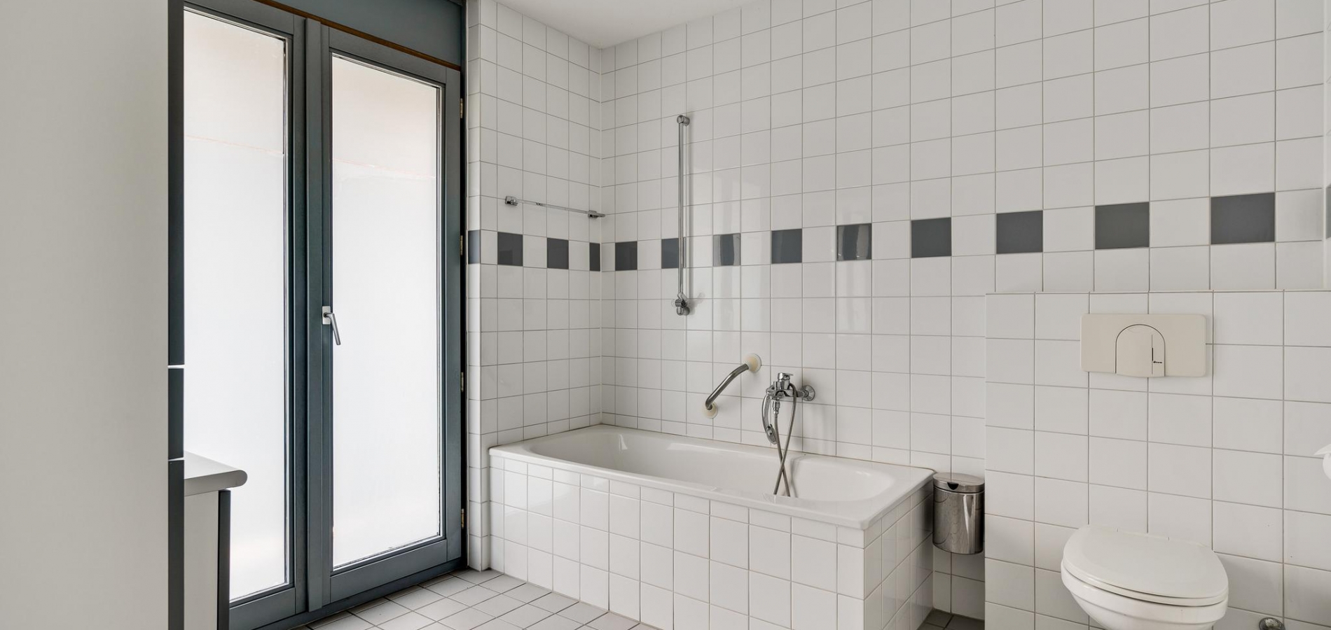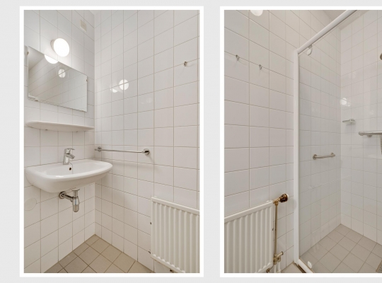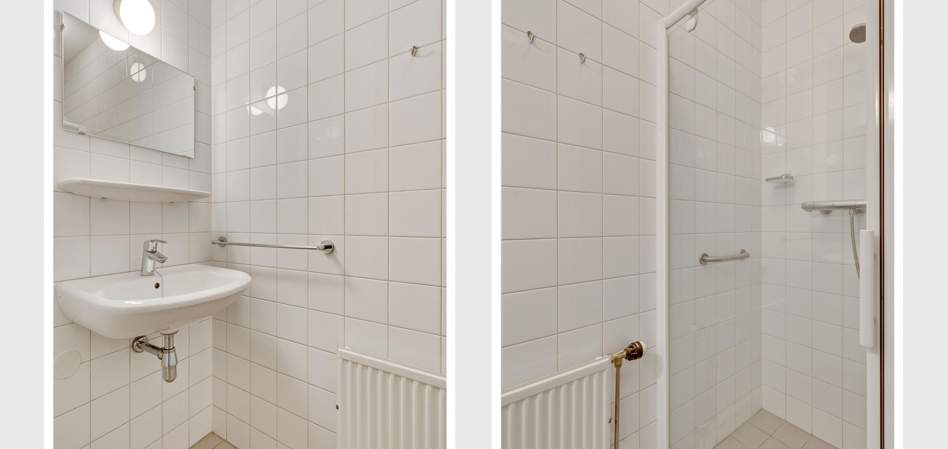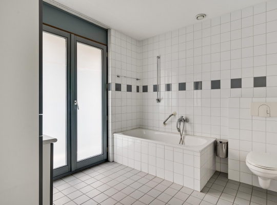 Vanuit slaapkamer II is de badkamer (circa 2,73, x 2,70) te bereiken. Deze ruimte is ingedeeld met een ligbad, tweede toilet en een wastafel. Naast de badkamer is een separate doucheruimte (circa 2,32 x 0,95) te bereiken vanaf de hal.