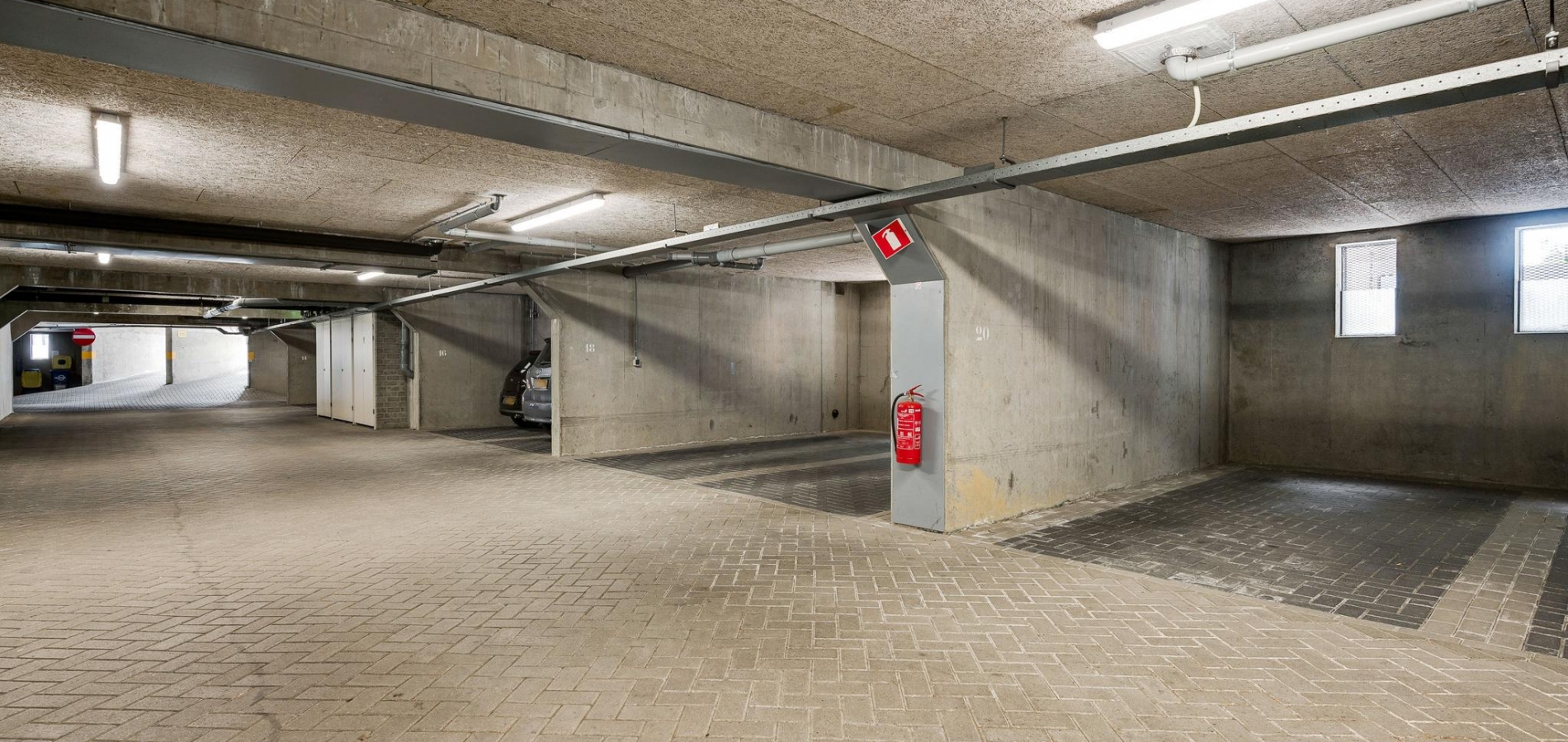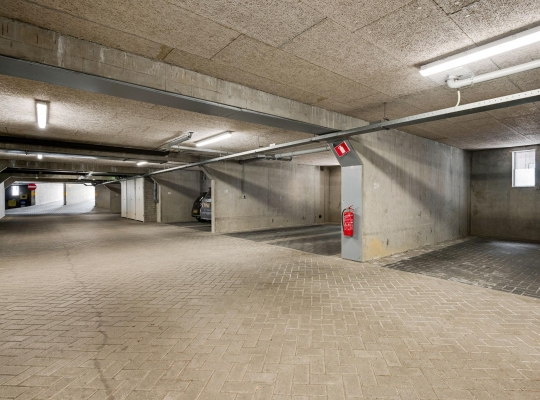 Bij het appartement hoort een vaste parkeerplaats (nummer 20) in het souterrain. De parkeergarage is voorzien van een elektrisch bedienbare poort, die u met een afstandsbediening kunt openen. Ook is er een gezamenlijke fietsenberging en een eigen milieuperron voor papier, restafval en glas in het fraaie complex.