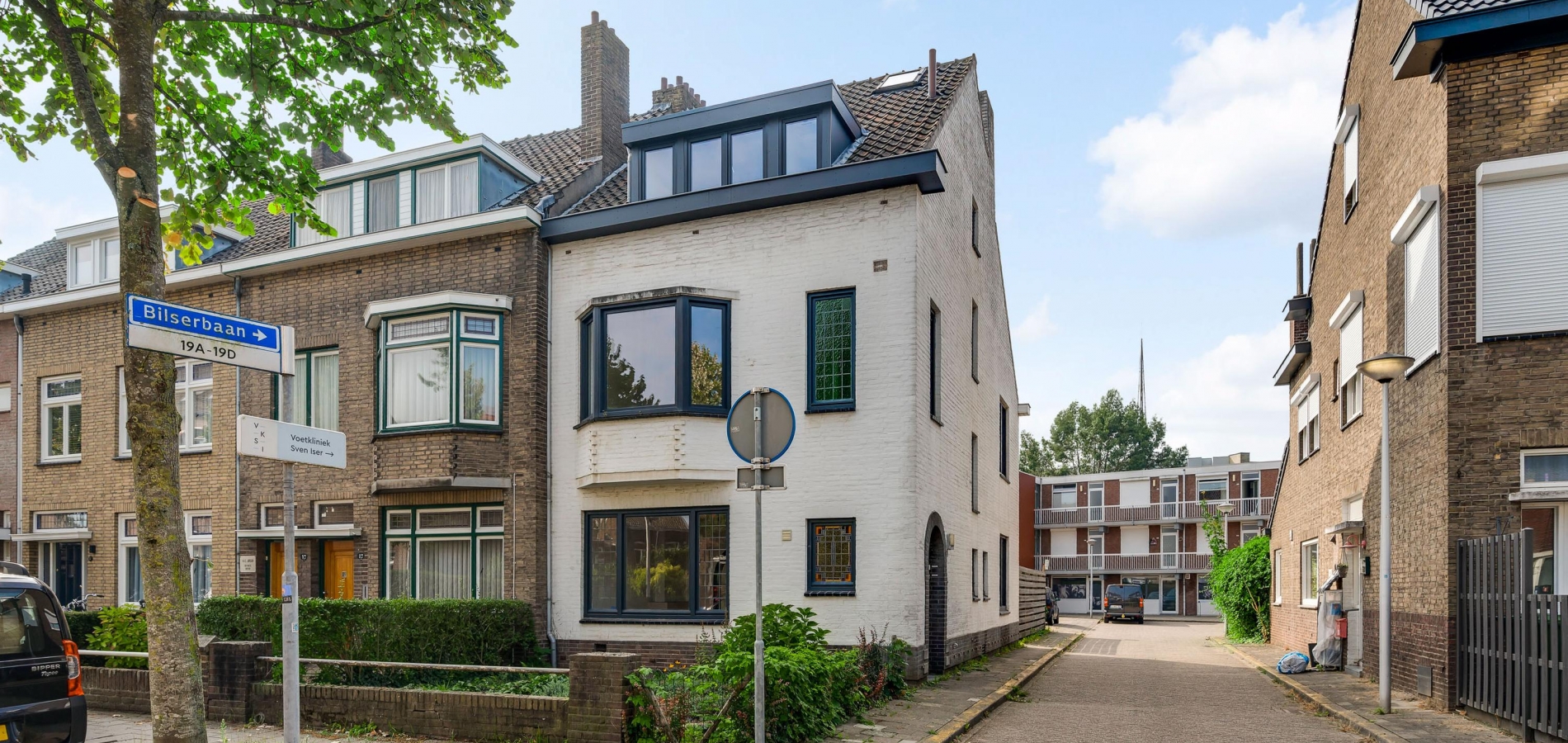 . Aan de Bilserbaan, een fietsstraat waar auto’s zich aanpassen aan de snelheid, staat dit royale herenhuis uit de geliefde jaren ’30. Het pand is thans ingericht met 3 appartementen, maar kan ook volledig als woonhuis worden gebruikt. Een invulling als meergeneratiewonen of gedeeltelijke verhuur is ook mogelijk. Elk appartement heeft een eigen keuken en een badkamer en de tuin is, net als het dakterras en het balkon, op het zonnige zuidwesten.