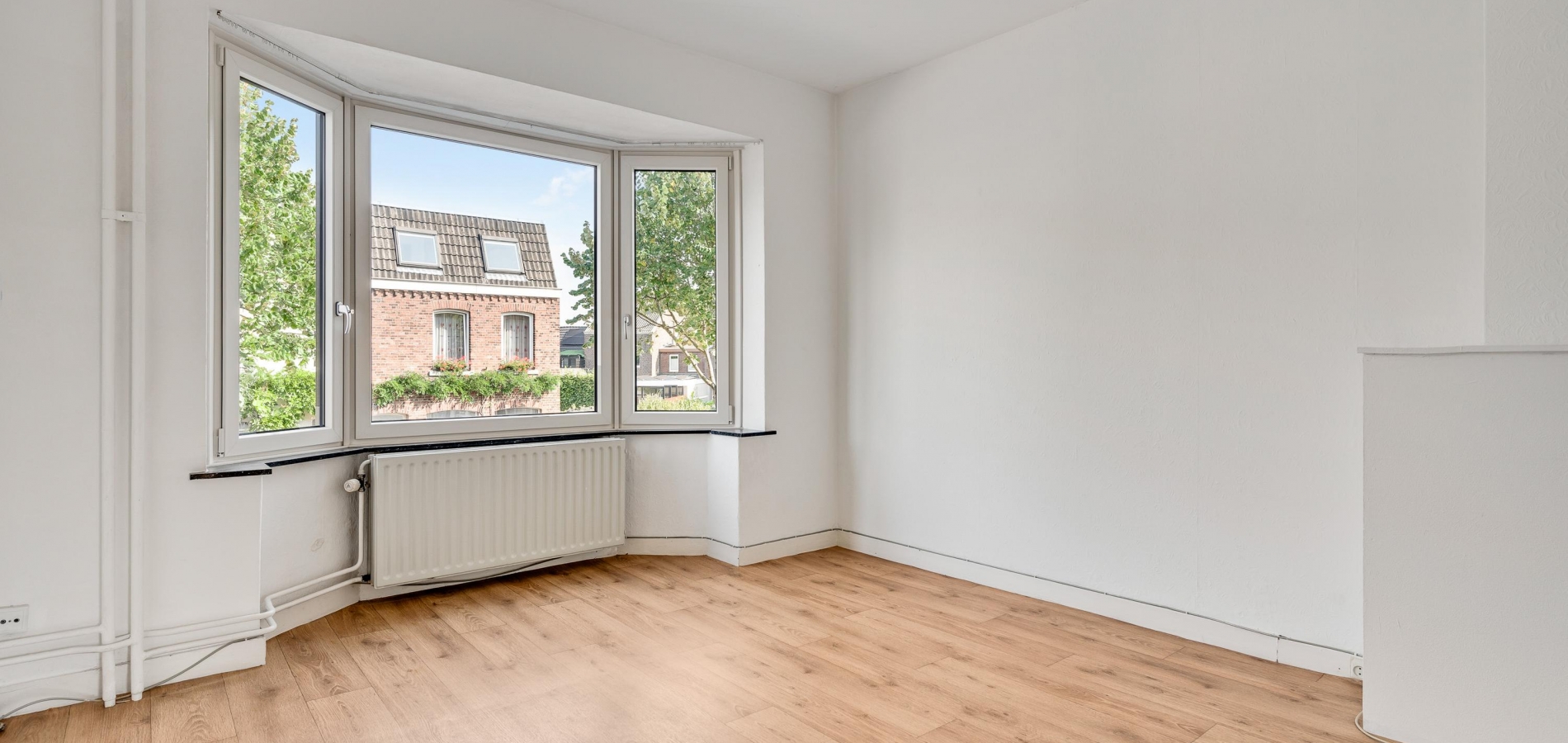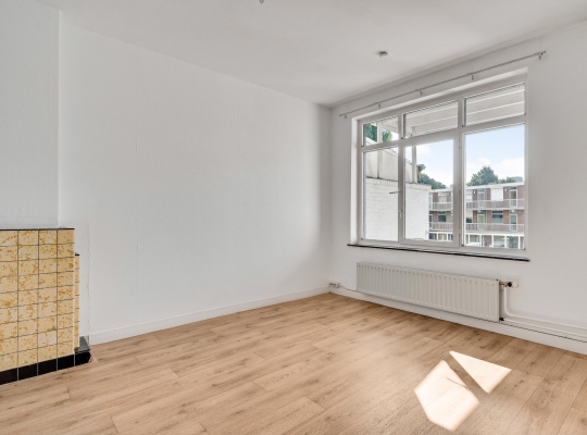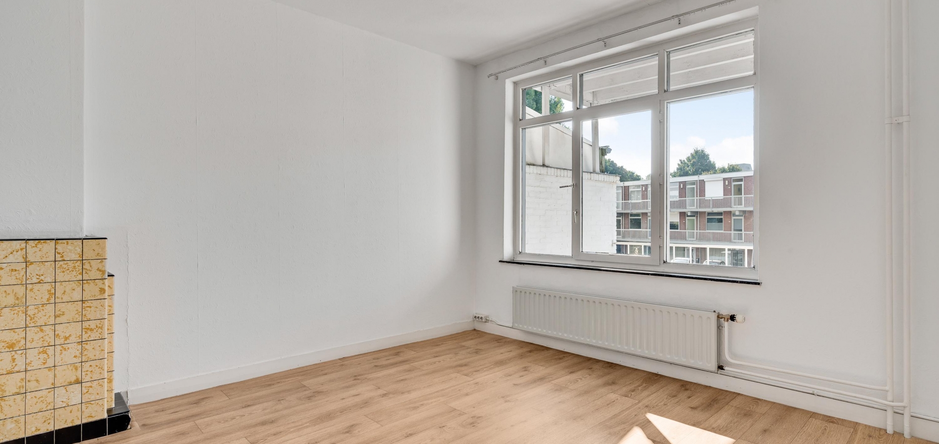 Aan de voorzijde is de woonkamer (circa 3,97 x 3,76) met een erker. Deze kamer is, bij volledige bewoning als woonhuis, heel geschikt als slaapkamer II. Slaapkamer III (circa 4,09 x 3,76) bevindt zich aan de achterzijde. In beide kamers ligt laminaat en bij de schouw in de kamer aan de achterzijde zijn de originele tegels behouden.