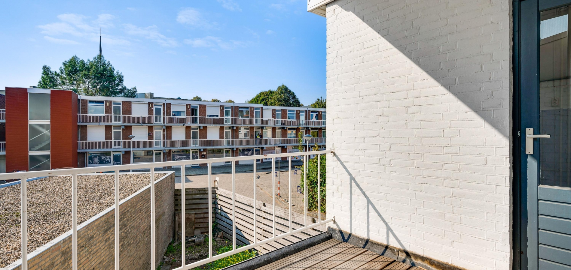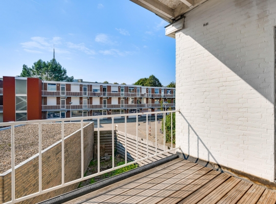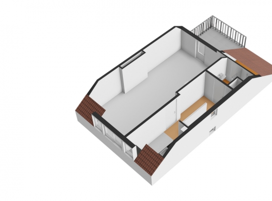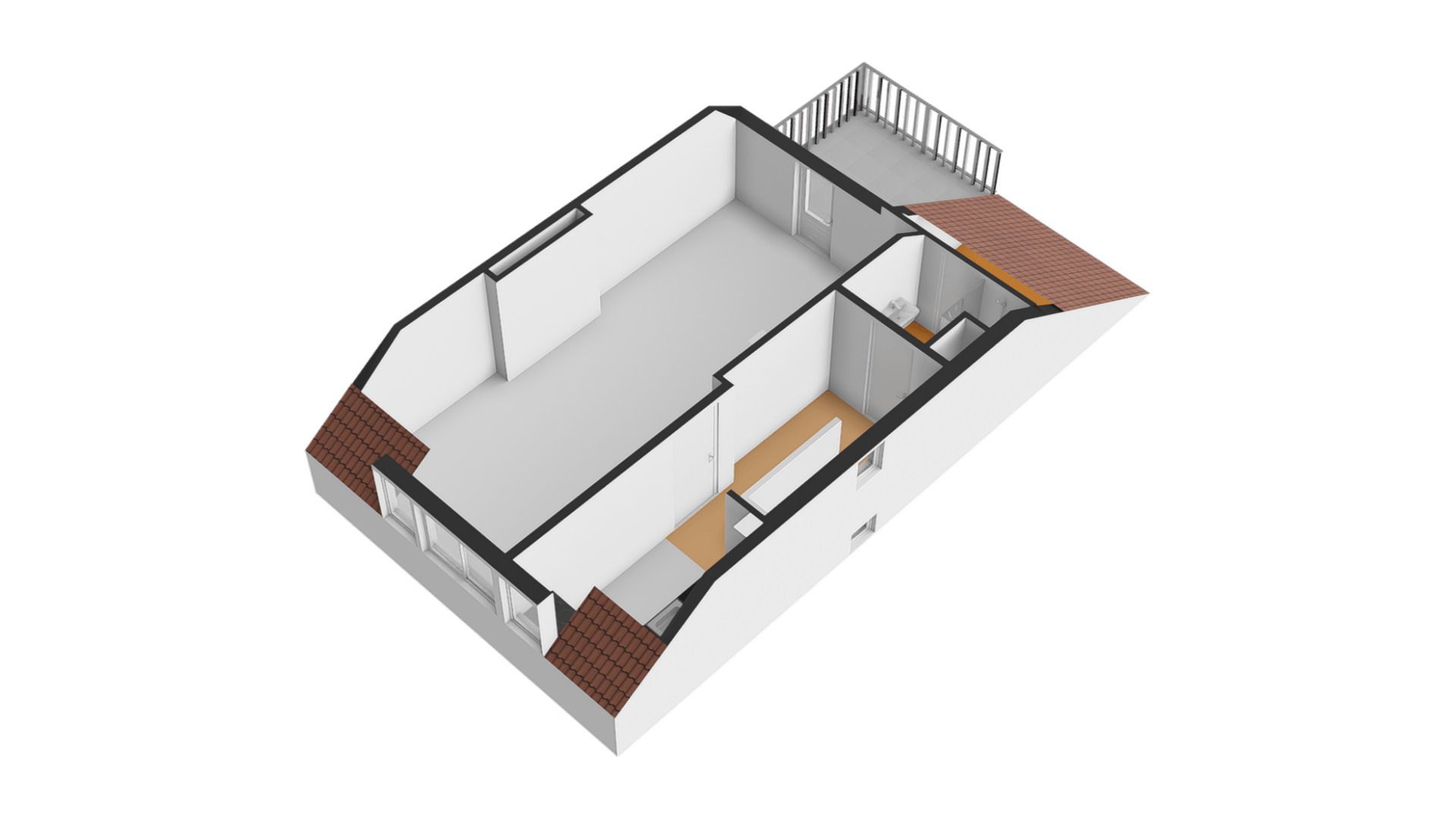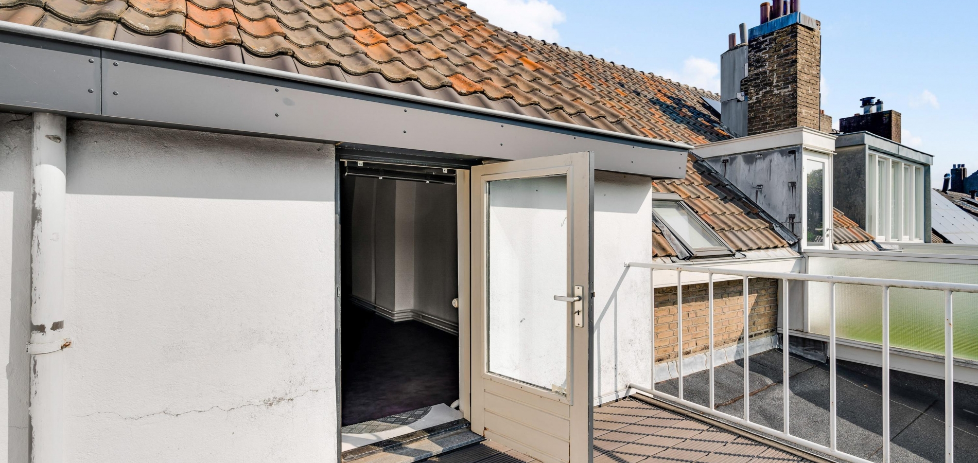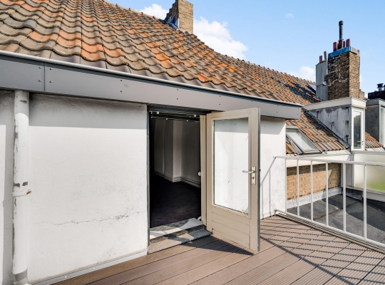 Het balkon is te bereiken vanuit de woon-/slaapkamer van circa 8,19 x 3,82/3,65 meter, met een balkenplafond en een dakkapel aan de voorzijde. In het achterste deel is een vide, met een trap naar de bovengelegen zolder.