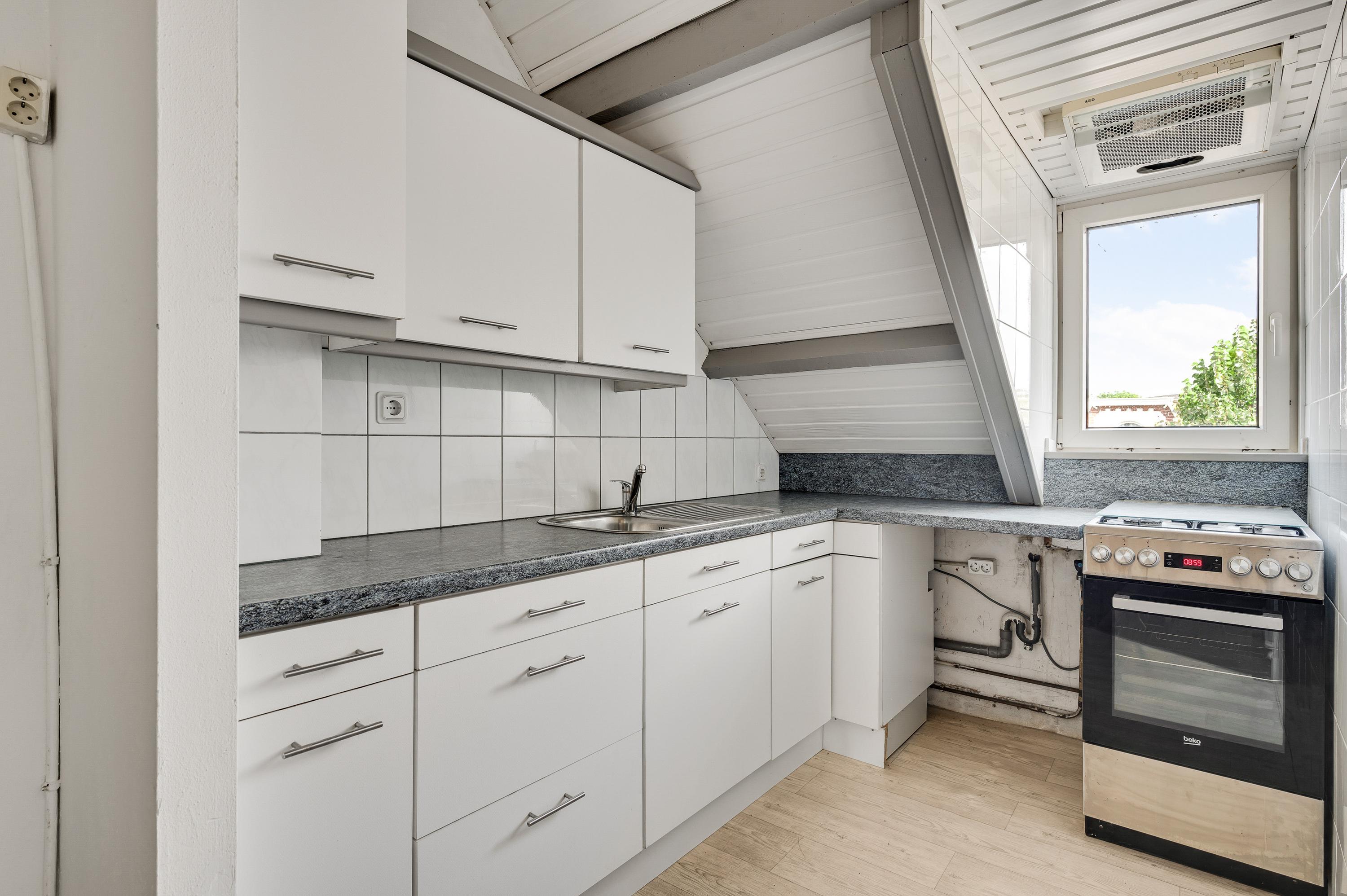 Badkamer III (circa 1,83 x 1,99) is ingedeeld met een douche, wastafel en een toilet. De aansluitende berging in de schuinte van het dak biedt ruimte aan de koffers en andere spullen. Aan de voorzijde is keuken III (circa 2,62 x 1,86), waar een hoekopstelling staat.