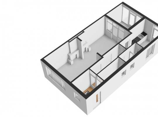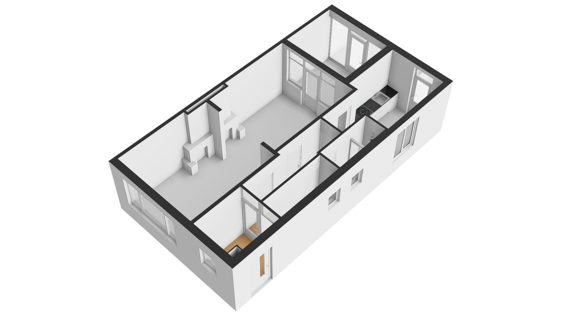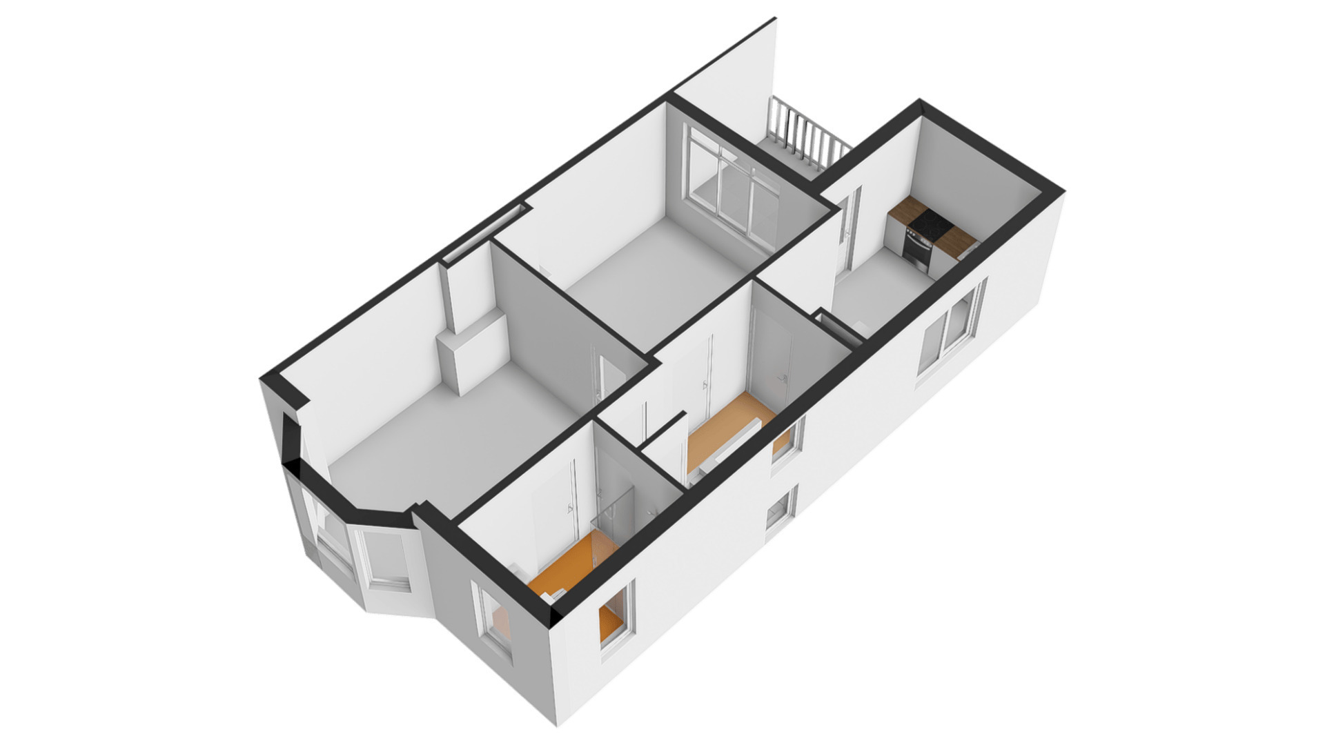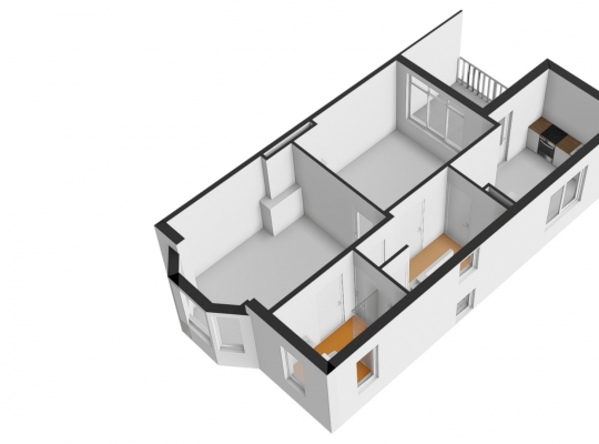 Het derde appartement heeft een loftachtige indeling met een grote woon-/slaapkamer, een aparte keuken en een badkamer met berging. Op deze verdieping is een balkon (circa 2,96 x 2,74) op het zonnige zuidwesten.