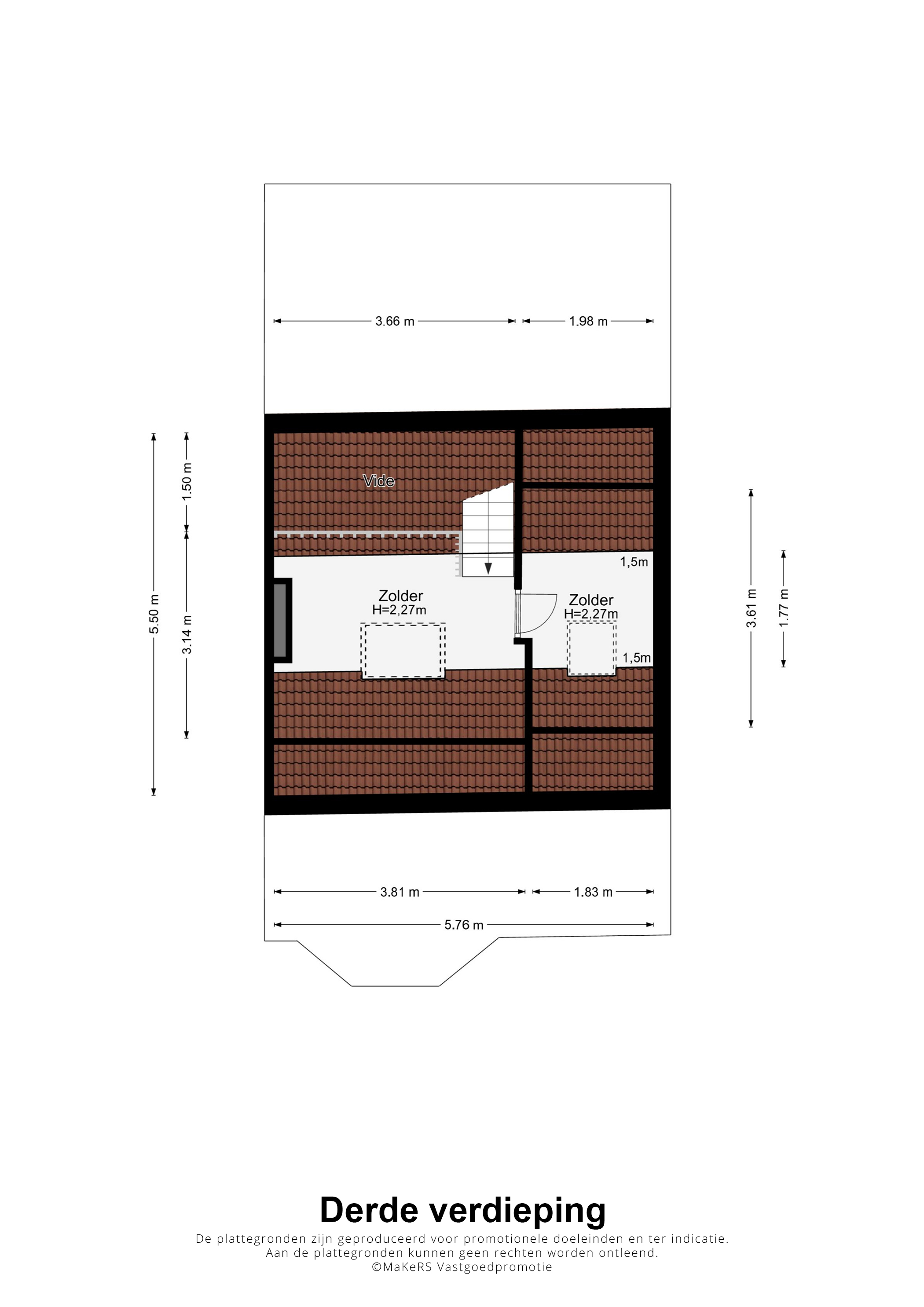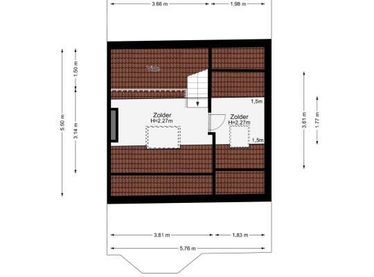 In de nok van het herenhuis zijn twee zolderruimtes. Zolder I (circa 3,81 x 3,14) kan worden gebruikt als slaapruimte, thuiswerkplek of studeerplek. Deze ruimte heeft, net als zolder II (circa 3,61 x 1,98) een dakraam aan de voorzijde.