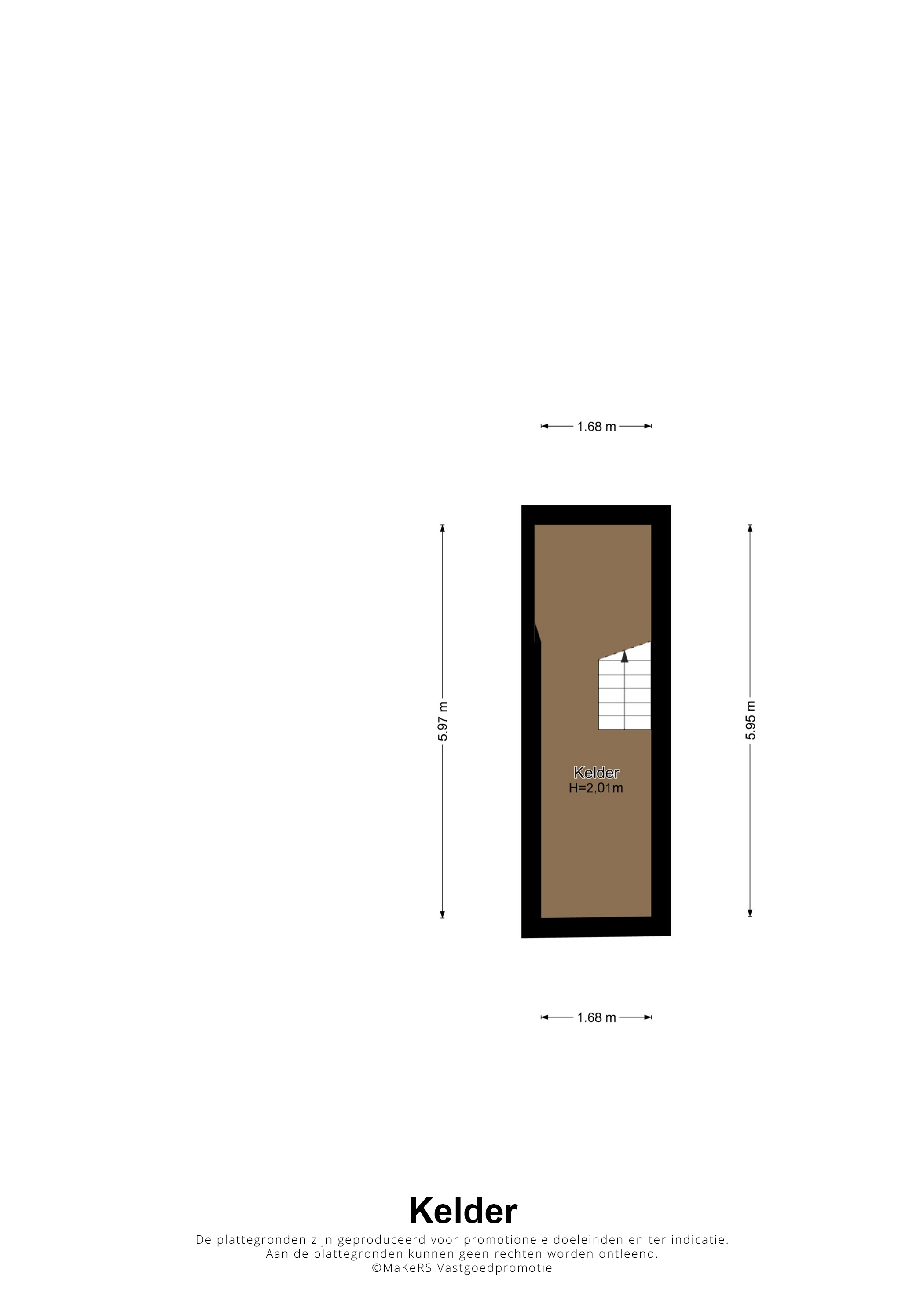 Vanuit de hal heeft u toegang tot het souterrain (circa 5,95 x 1,68).