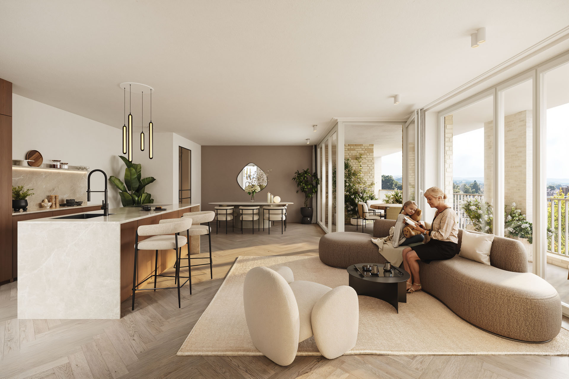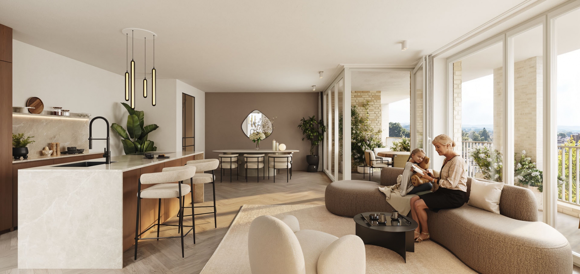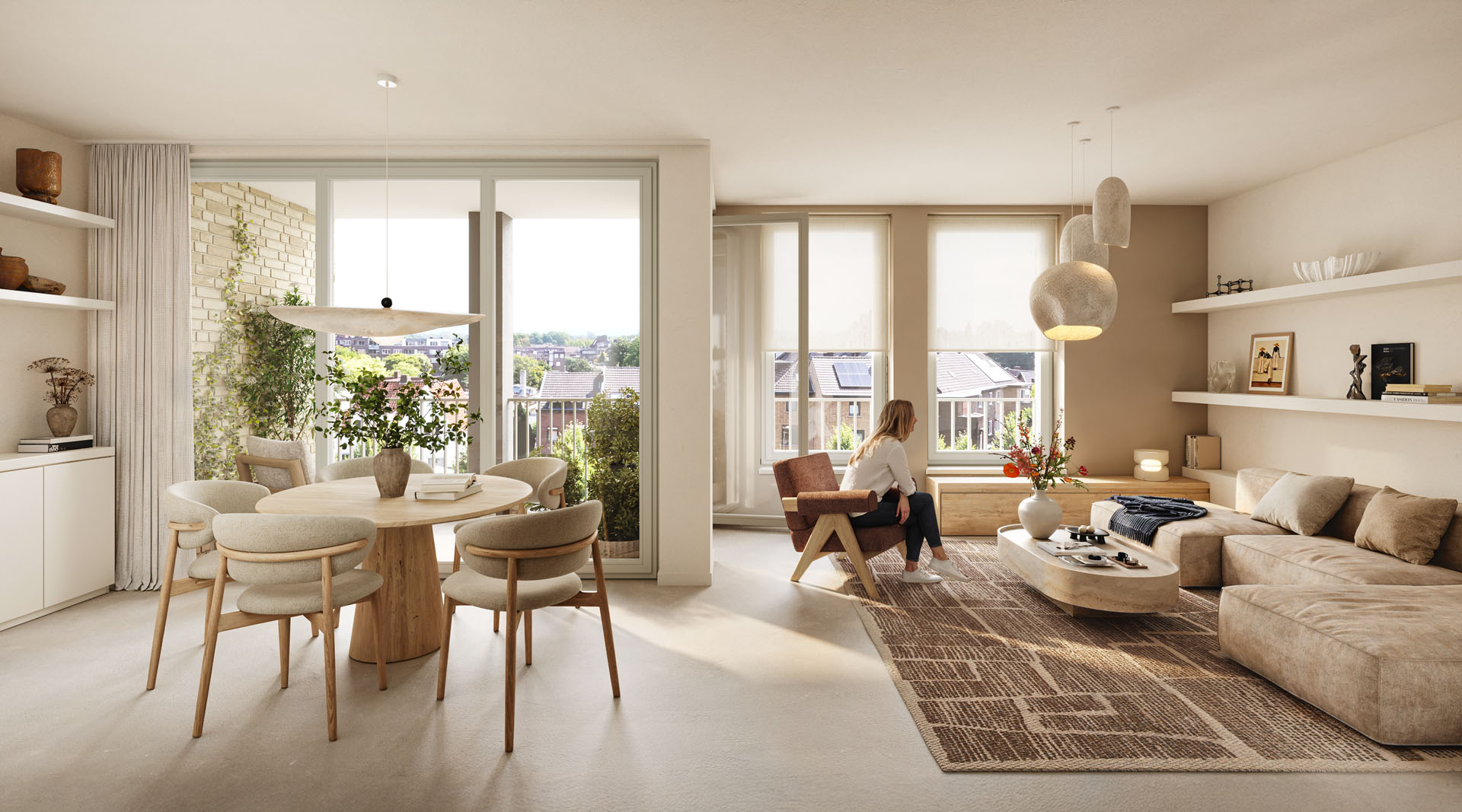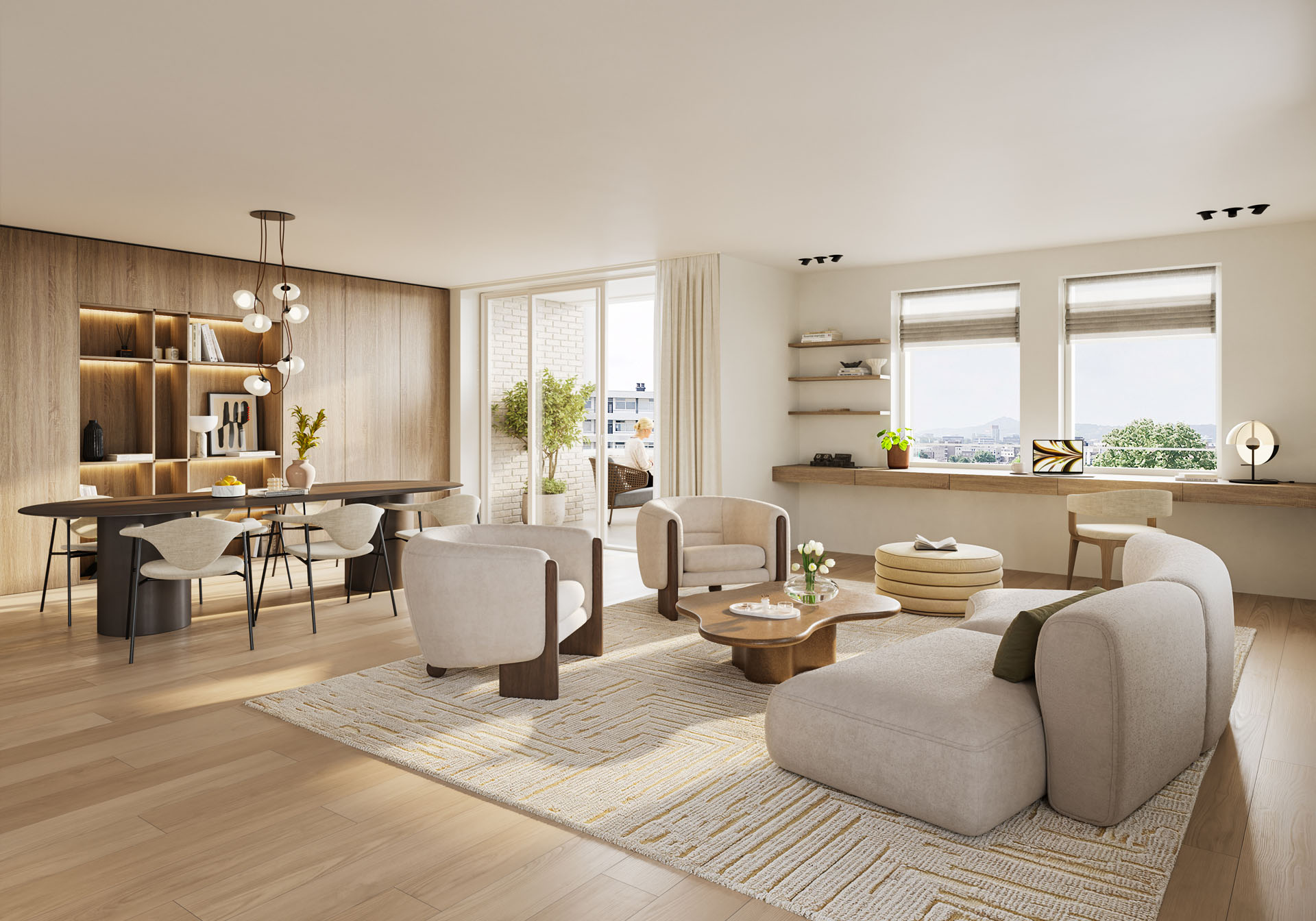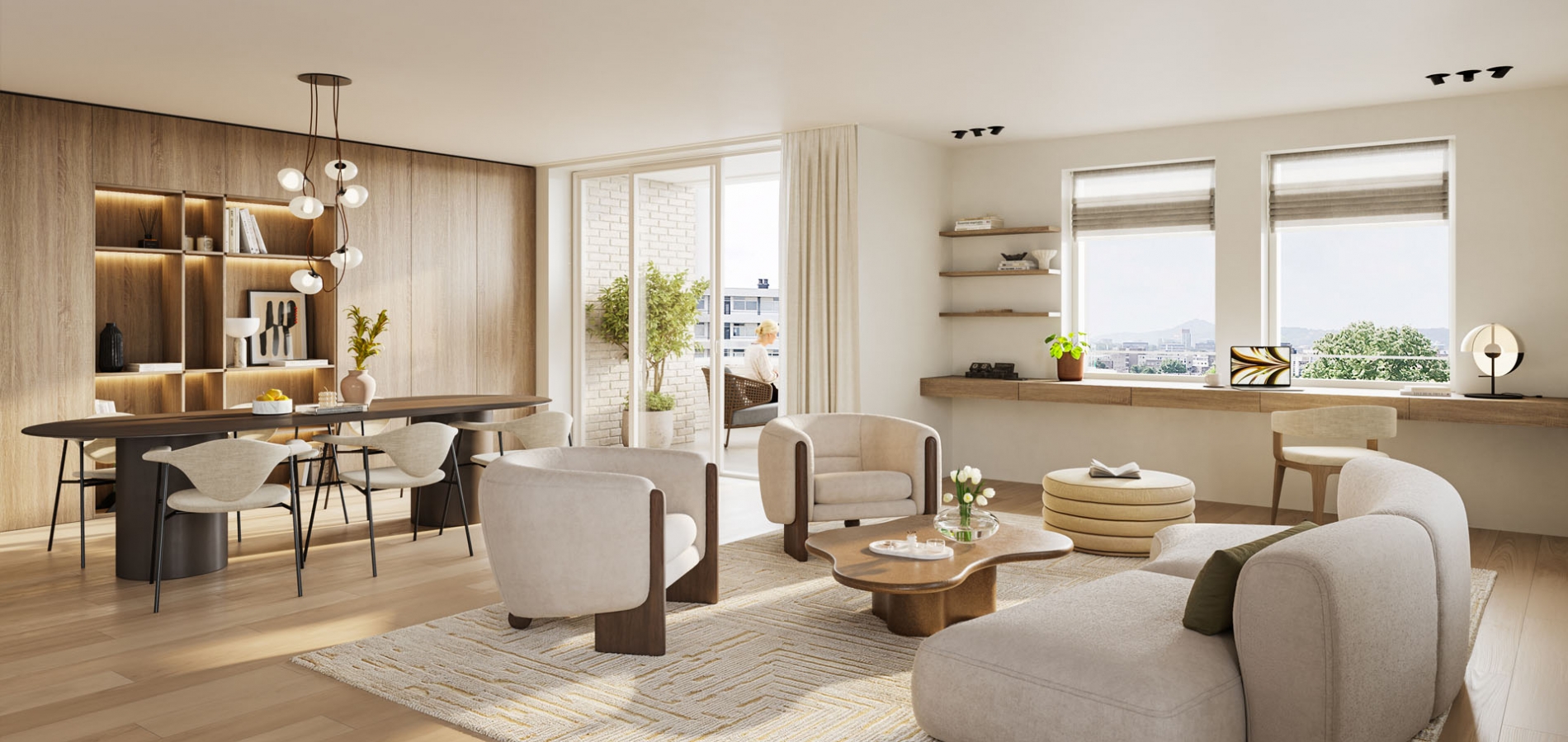 In COUR komt elegant wonen samen met het natuurlijke karakter van De Groene Loper. Dit verlengstuk van het Maastrichtse centrum kenmerkt zich als een lommerrijke boulevard, omzoomd door bomen, waar fietsers en bewoners zichtbaar genieten van hun buurt. COUR biedt niet alleen comfortabele luxe, maar ook een unieke leefomgeving: ruim, licht en verbonden met alles wat Maastricht zo bijzonder maakt. Een nieuw thuis, in het hart van een klassieke stad.