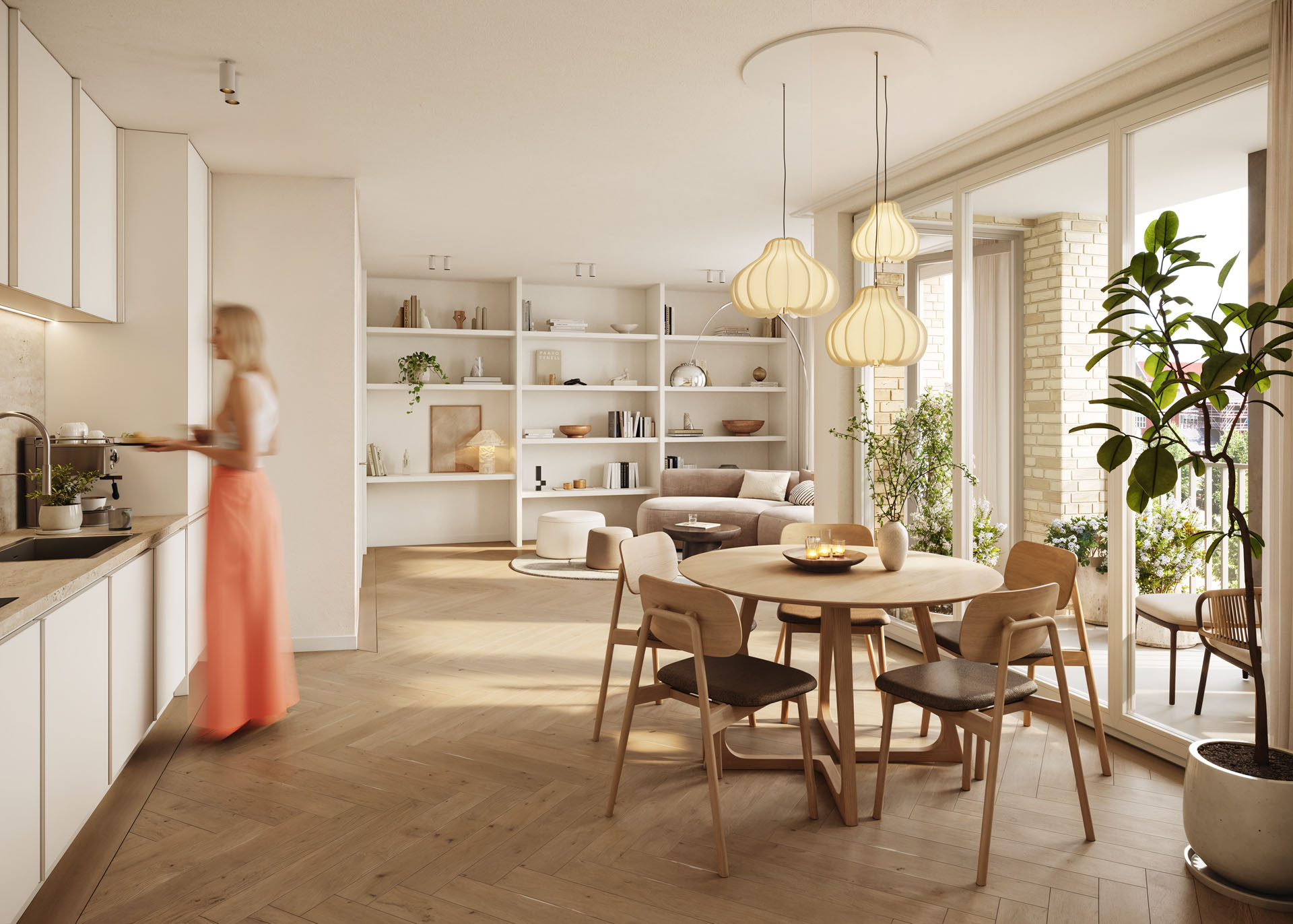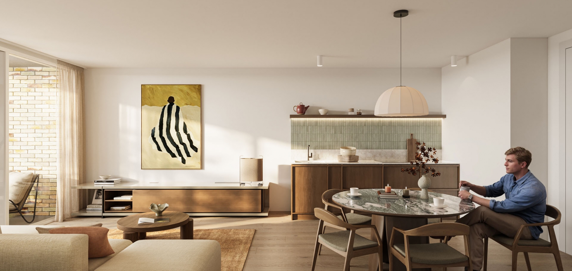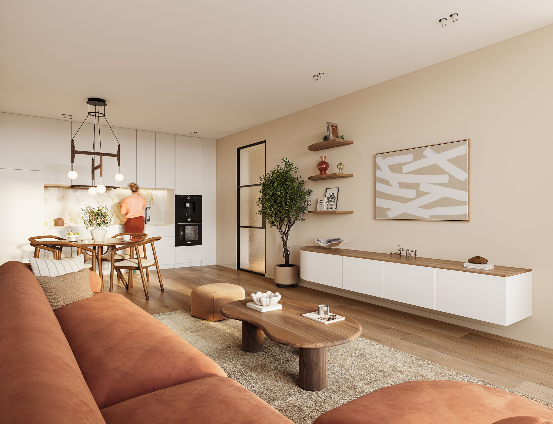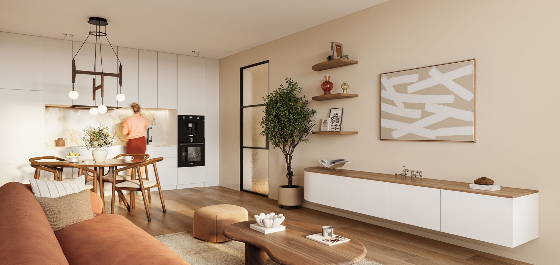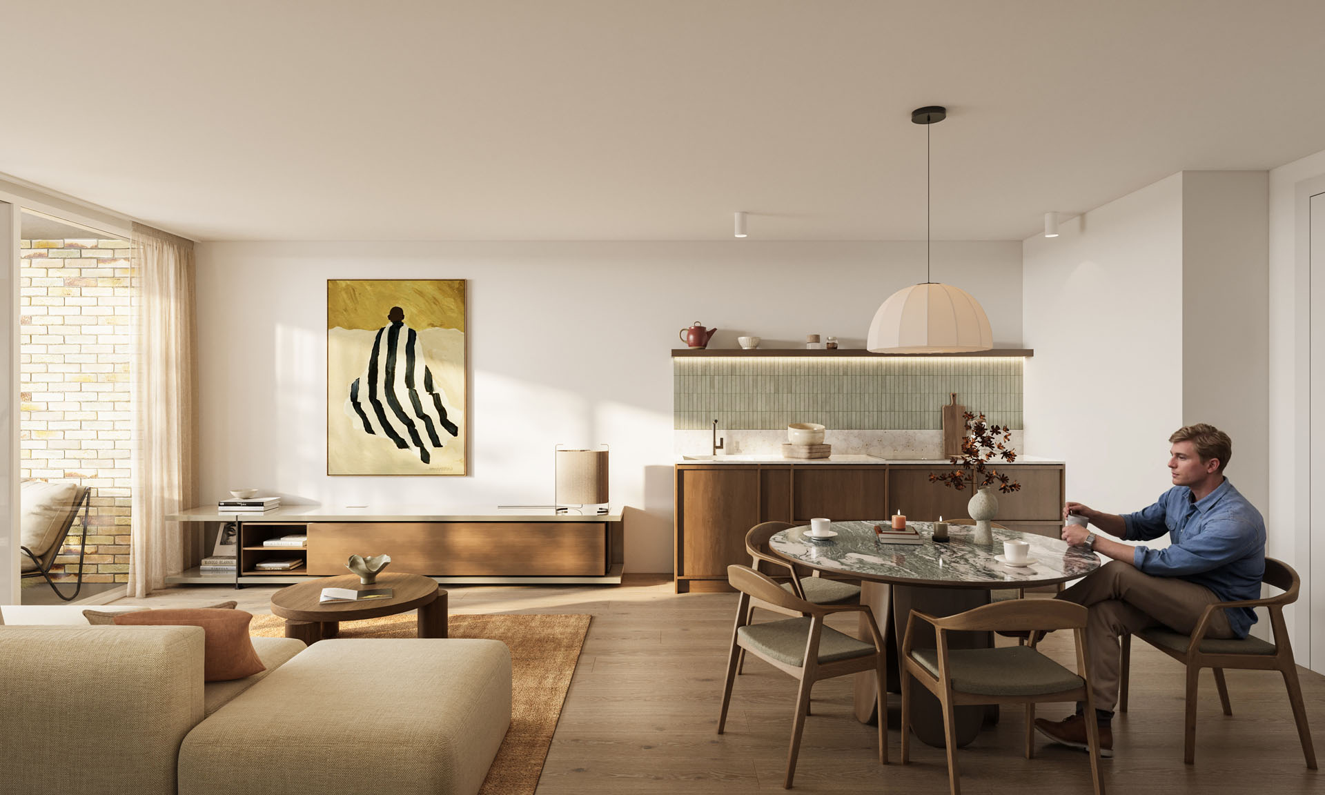 In COUR komt elegant wonen samen met het natuurlijke karakter van De Groene Loper. Dit verlengstuk van het Maastrichtse centrum kenmerkt zich als een lommerrijke boulevard, omzoomd door bomen, waar fietsers en bewoners zichtbaar genieten van hun buurt. COUR biedt niet alleen comfortabele luxe, maar ook een unieke leefomgeving: ruim, licht en verbonden met alles wat Maastricht zo bijzonder maakt. Een nieuw thuis, in het hart van een klassieke stad.