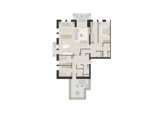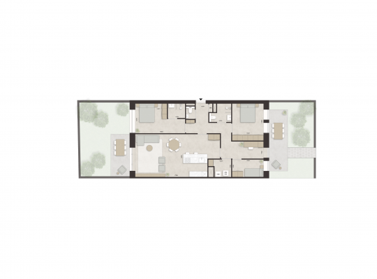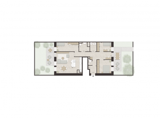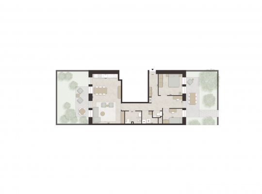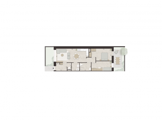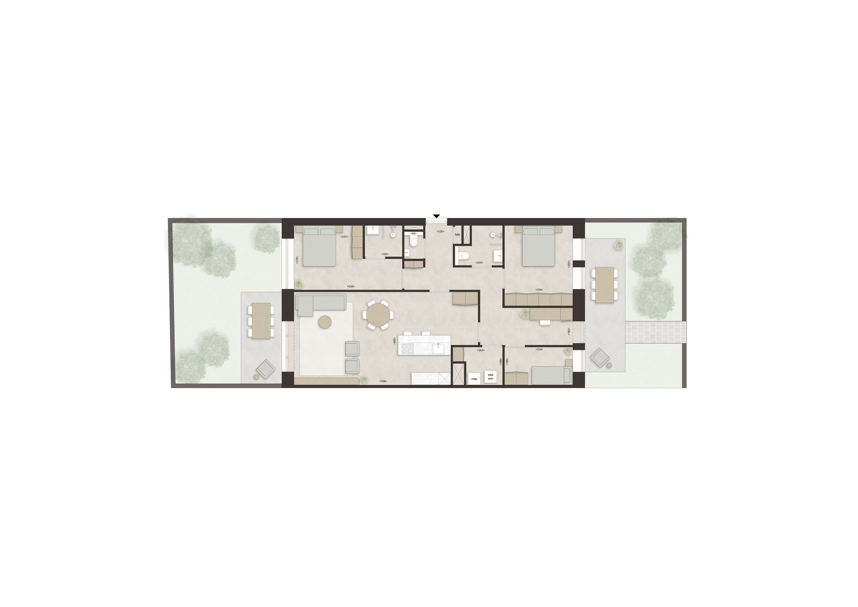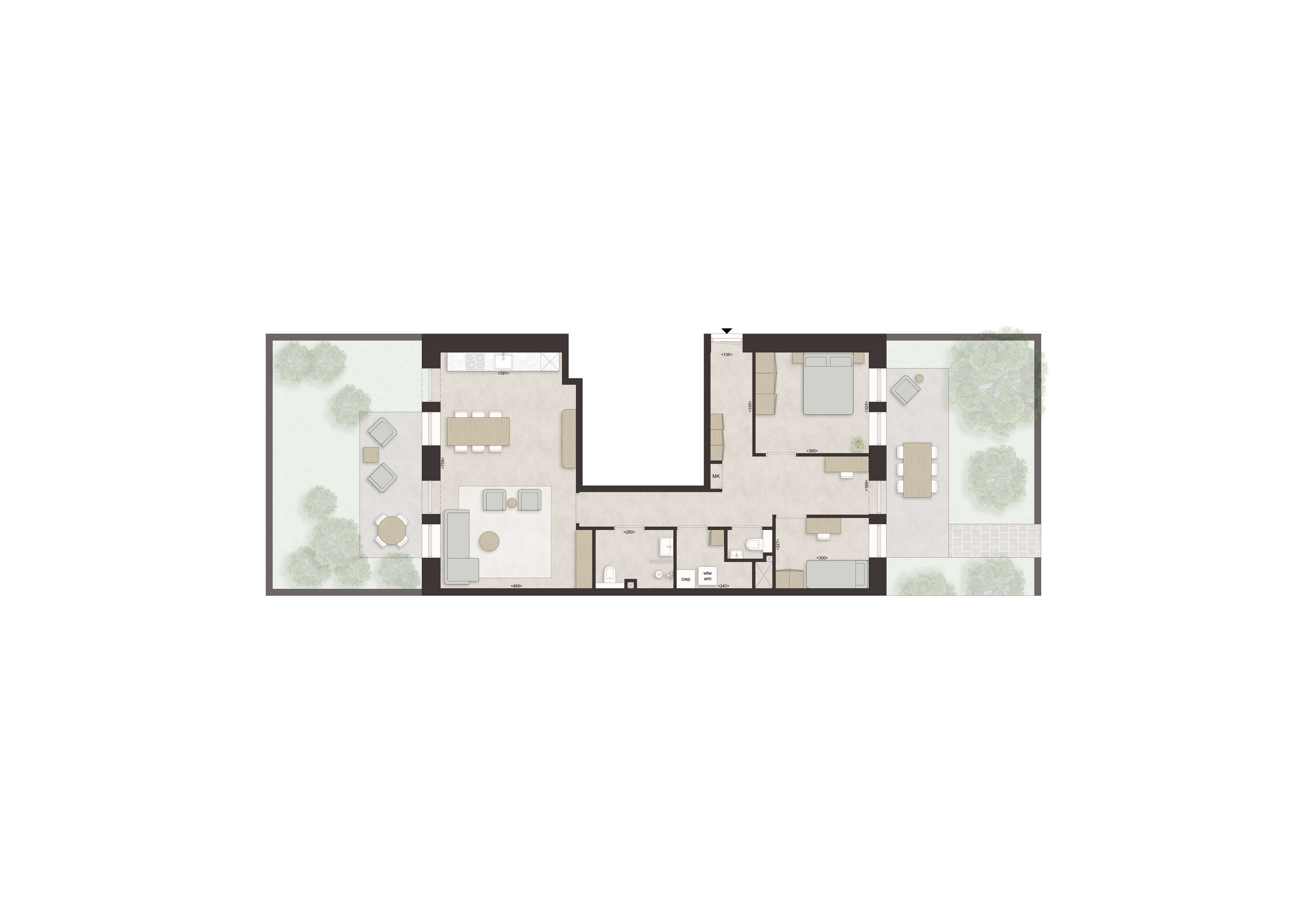 COUR is ontworpen met duurzaamheid en toekomstbestendigheid als uitgangspunt. De woningen zijn energiezuinig en kierdicht, waardoor warmte binnen blijft en het energieverbruik laag is. Dankzij de levensloopbestendige indeling kun je er wonen in elke fase van je leven: als jong stel, met een kind, of op latere leeftijd. De groene binnentuin speelt een dubbele rol: regenwater wordt er opgevangen en de vele bomen zorgen voor natuurlijke verkoeling en schaduw, zowel binnen de tuin als rondom het project. De groene omgeving die bijdraagt aan biodiversiteit én woonkwaliteit. COUR combineert modern woongenot met verantwoordelijkheid voor morgen.