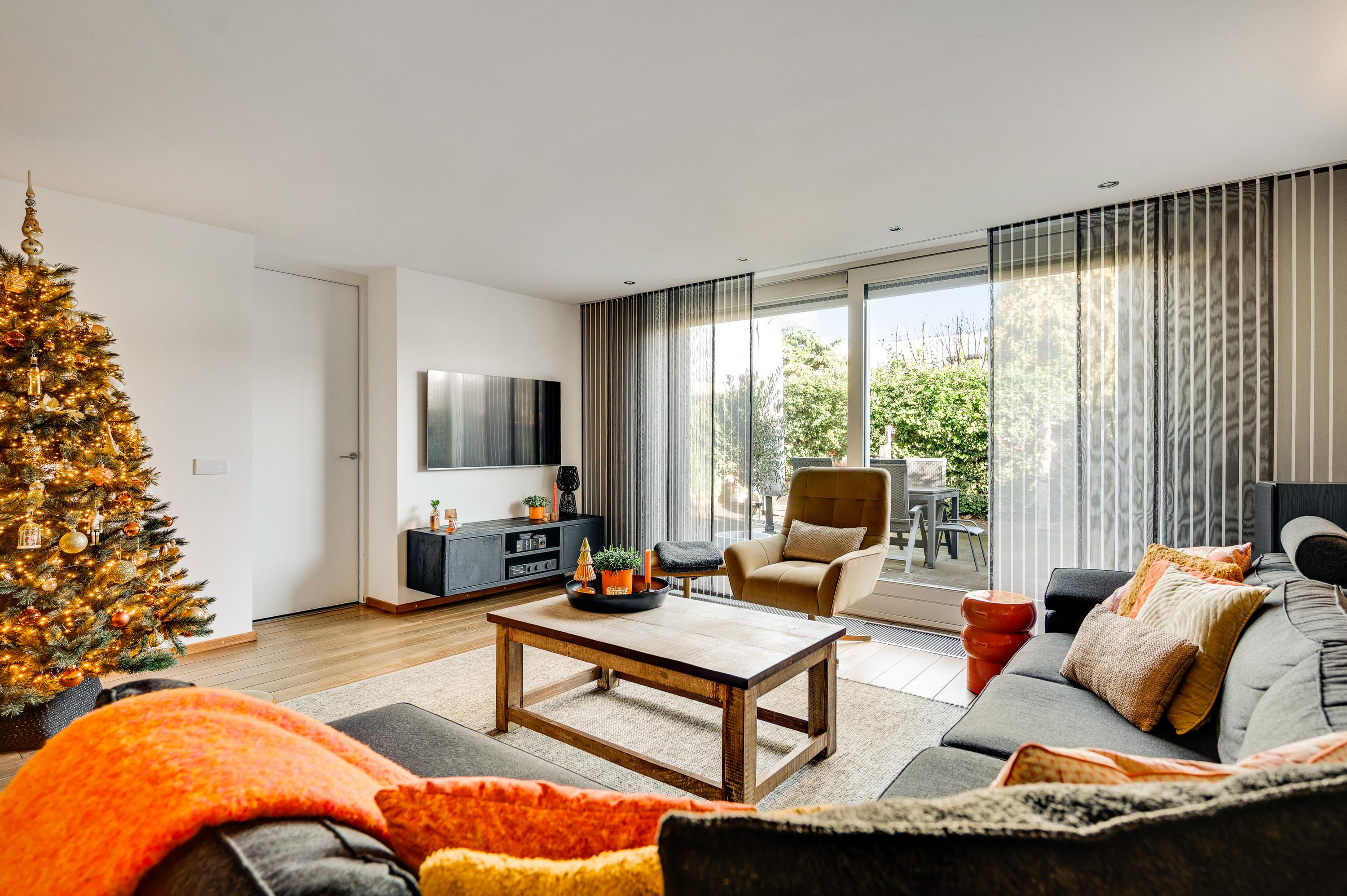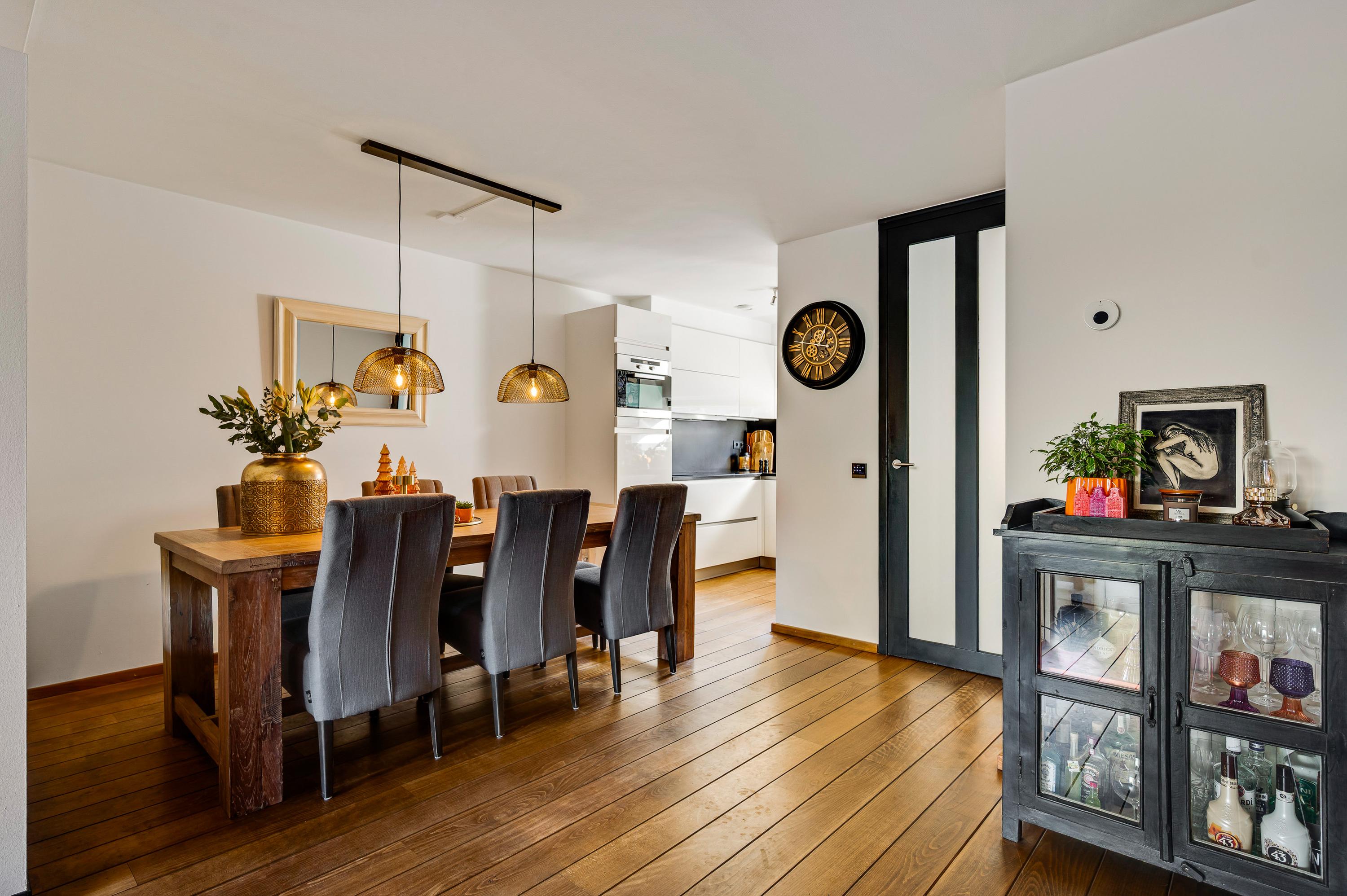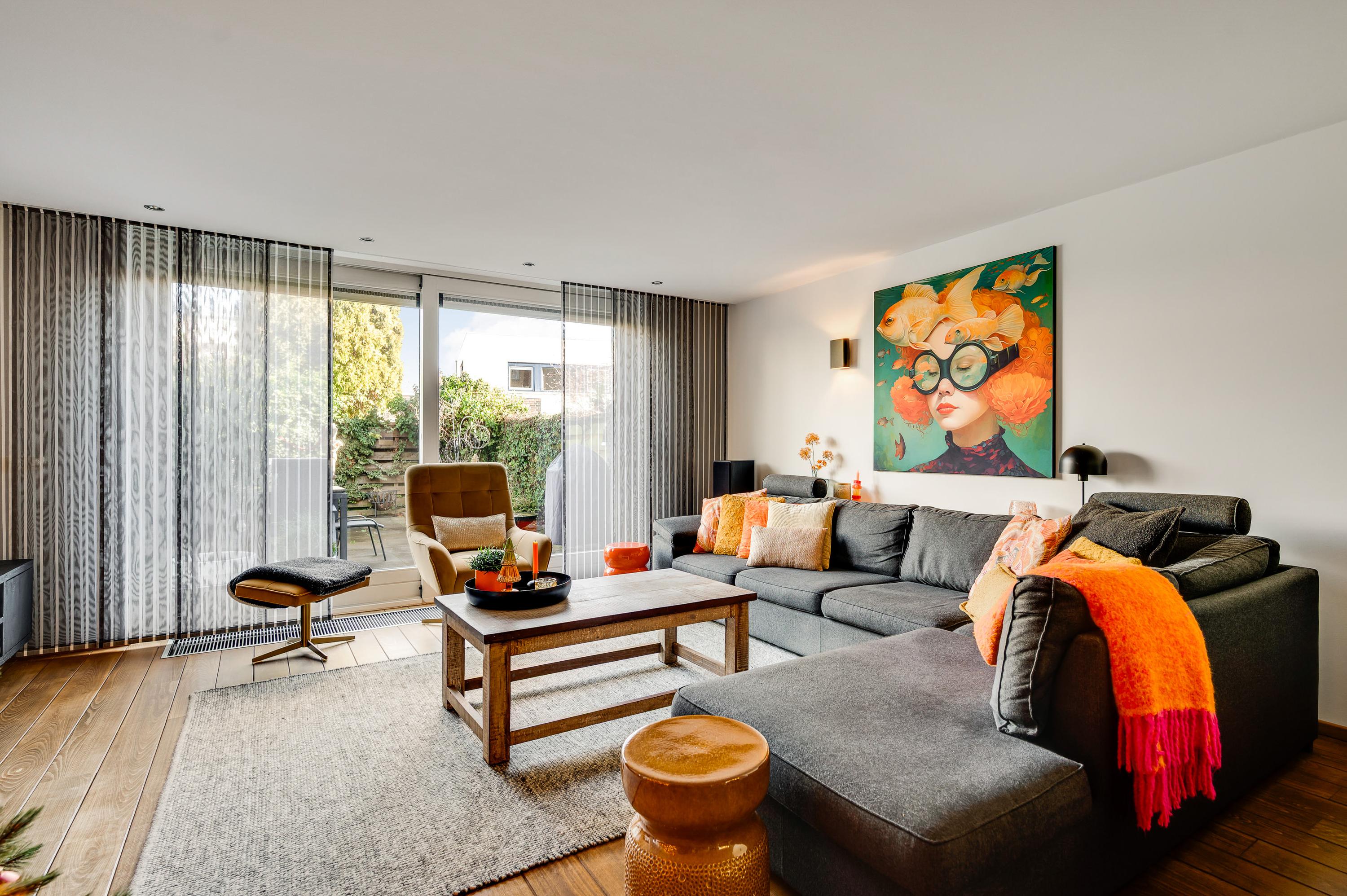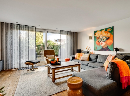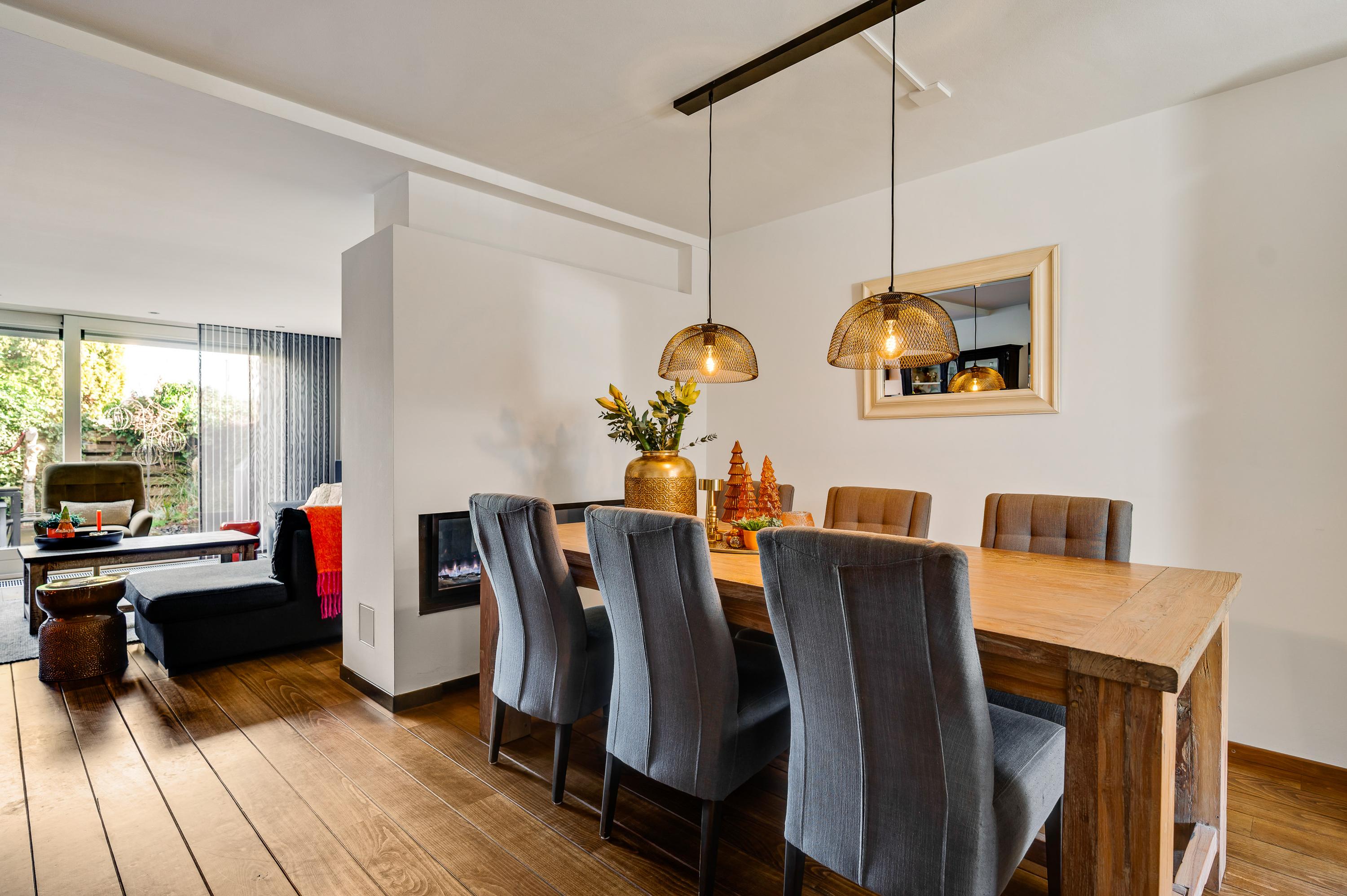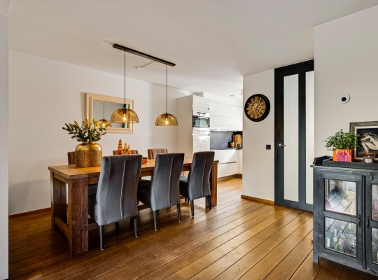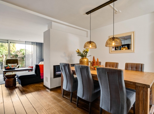 Met een oppervlakte van circa 43 m2 heeft dit huis een woonkamer van goed formaat. Een stijlvolle, moderne gashaard vormt een mooie scheiding tussen het zit- en het eetgedeelte en aan de achterzijde, waar ’s ochtends al de zon naar binnen schijnt, zorgt een schuifpui voor een optimale verbinding met de tuin. In september 2024 is de woonkamer volledig gestuct en opnieuw geschilderd.