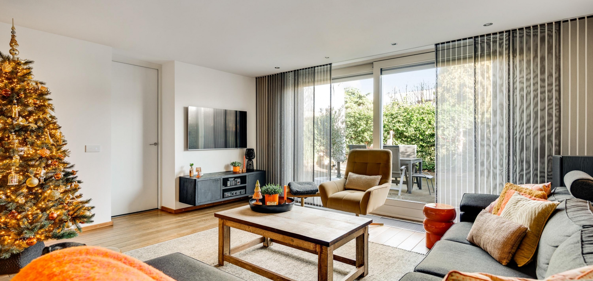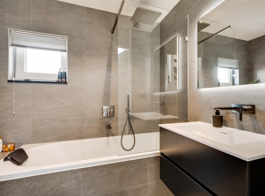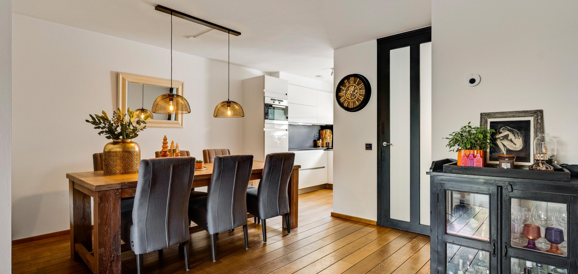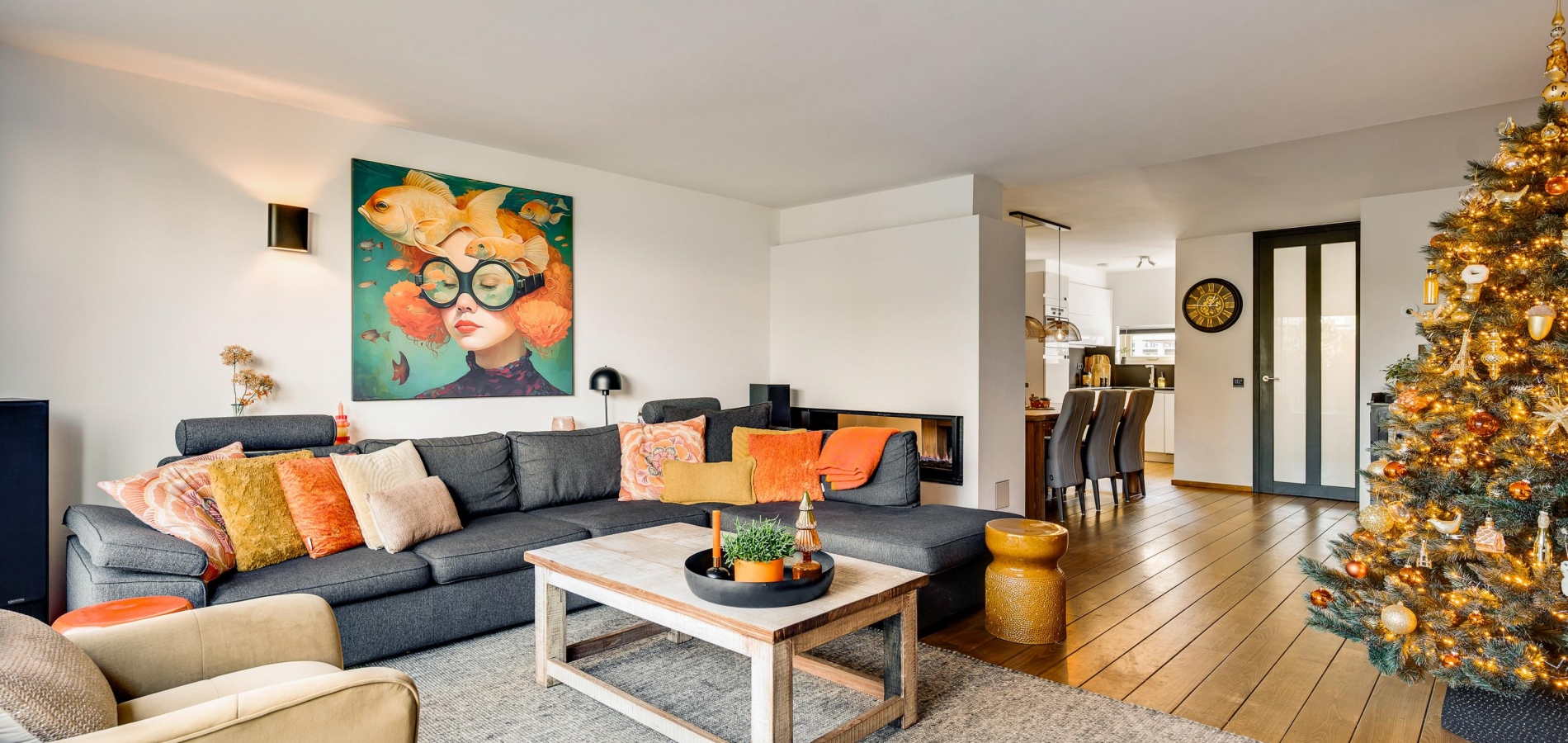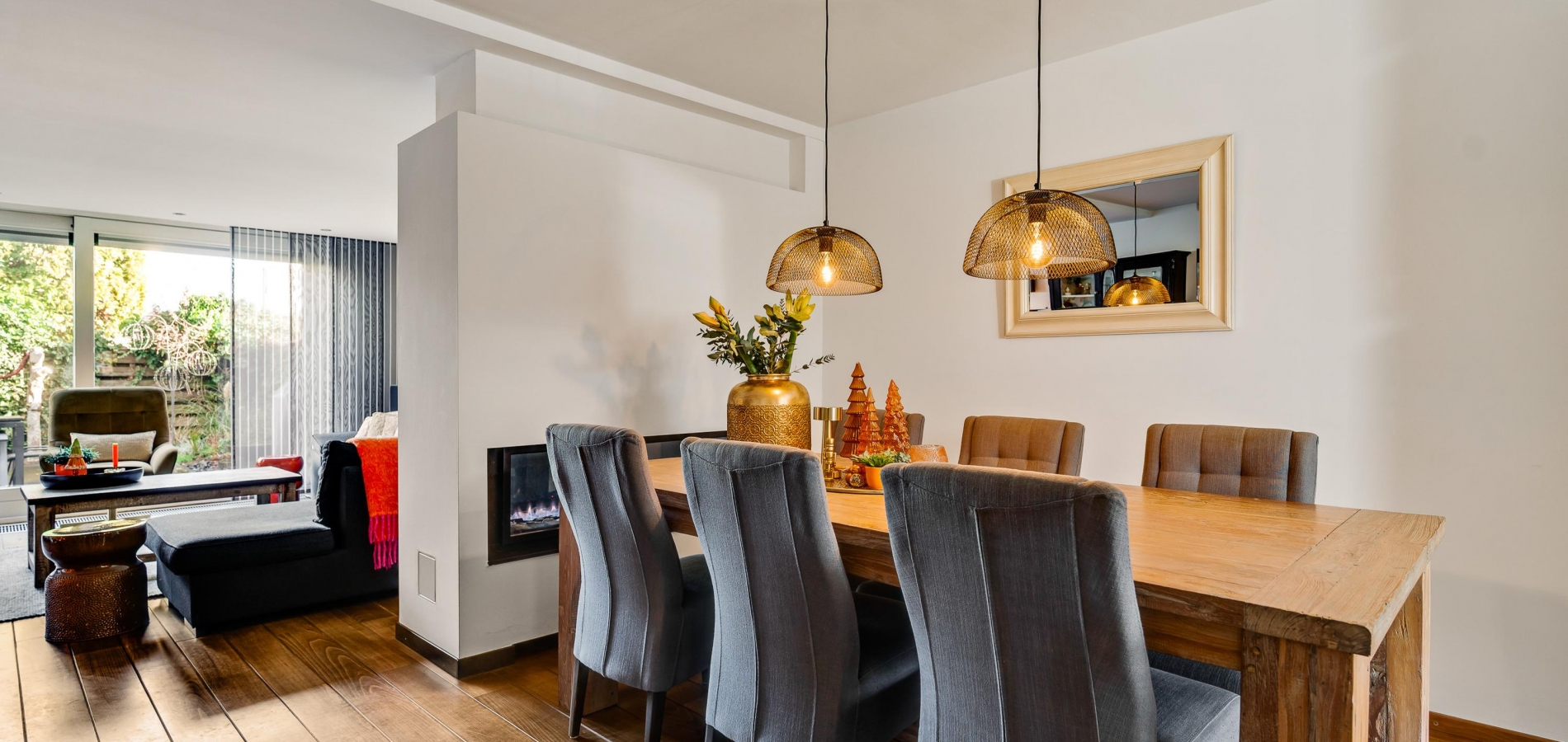 Met een oppervlakte van circa 43 m2 heeft dit huis een woonkamer van goed formaat. Een stijlvolle, moderne gashaard vormt een mooie scheiding tussen het zit- en het eetgedeelte en aan de achterzijde, waar ’s ochtends al de zon naar binnen schijnt, zorgt een schuifpui voor een optimale verbinding met de tuin. In september 2024 is de woonkamer volledig gestuct en opnieuw geschilderd.