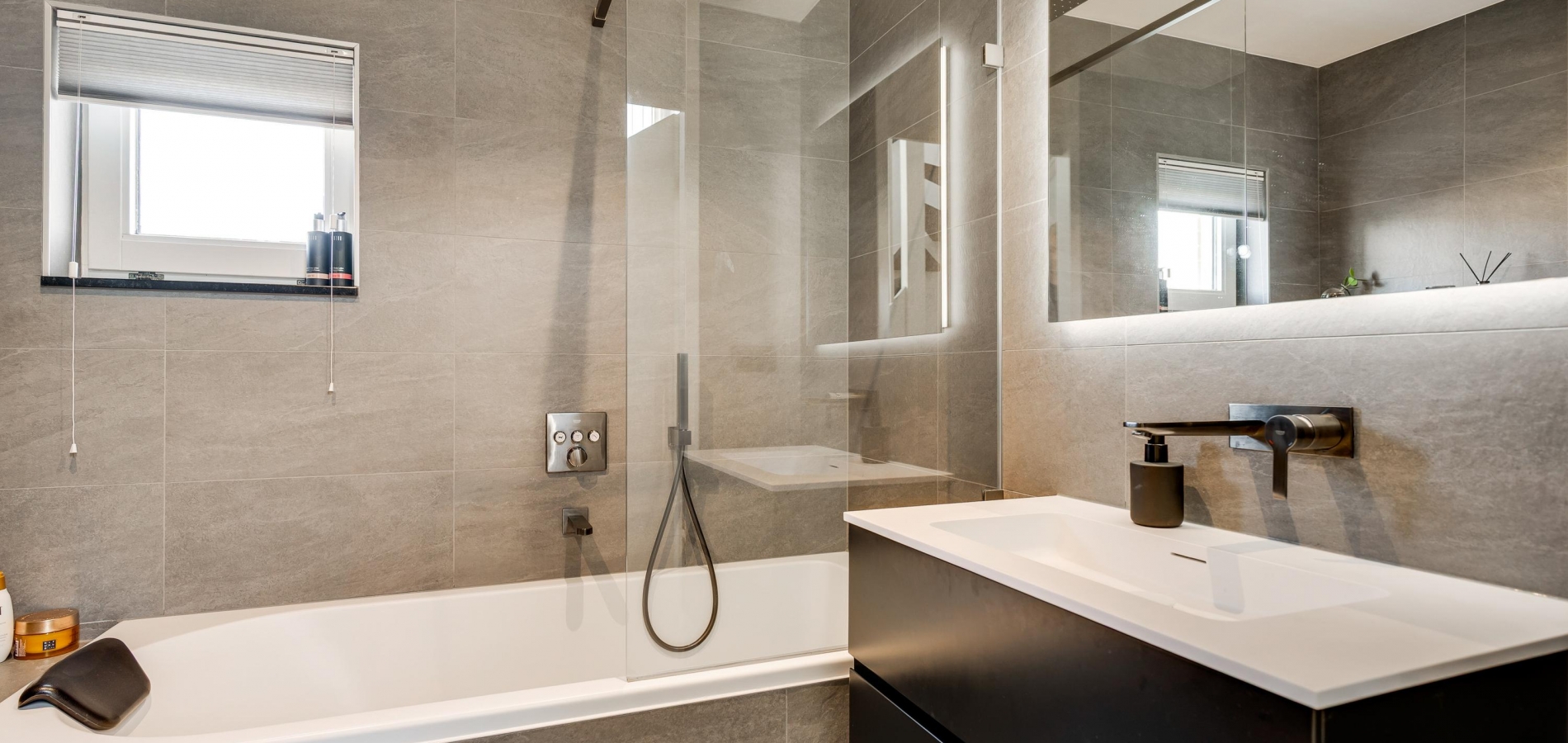 Wat opvalt is de lichtinval bij de trappen en op de overloop, dankzij de ramen aan de zonnige westkant. Op deze verdieping zijn twee slaapkamers, beiden met laminaat op de vloer, en de in 2025 vernieuwde badkamer.