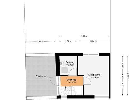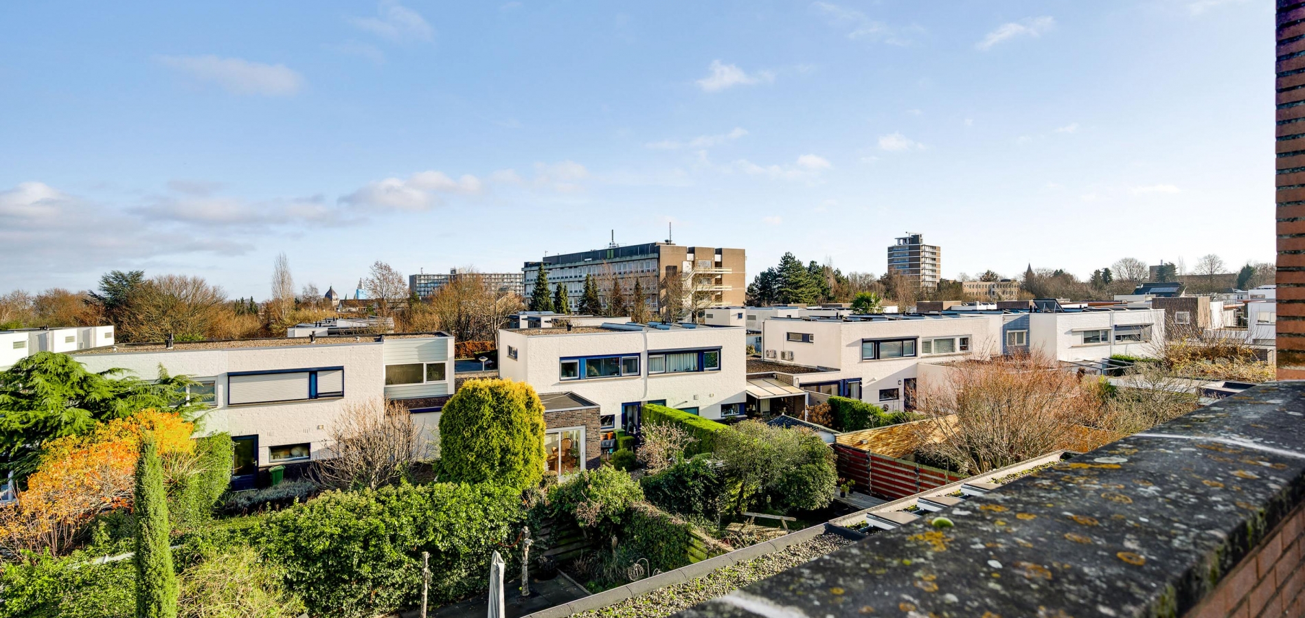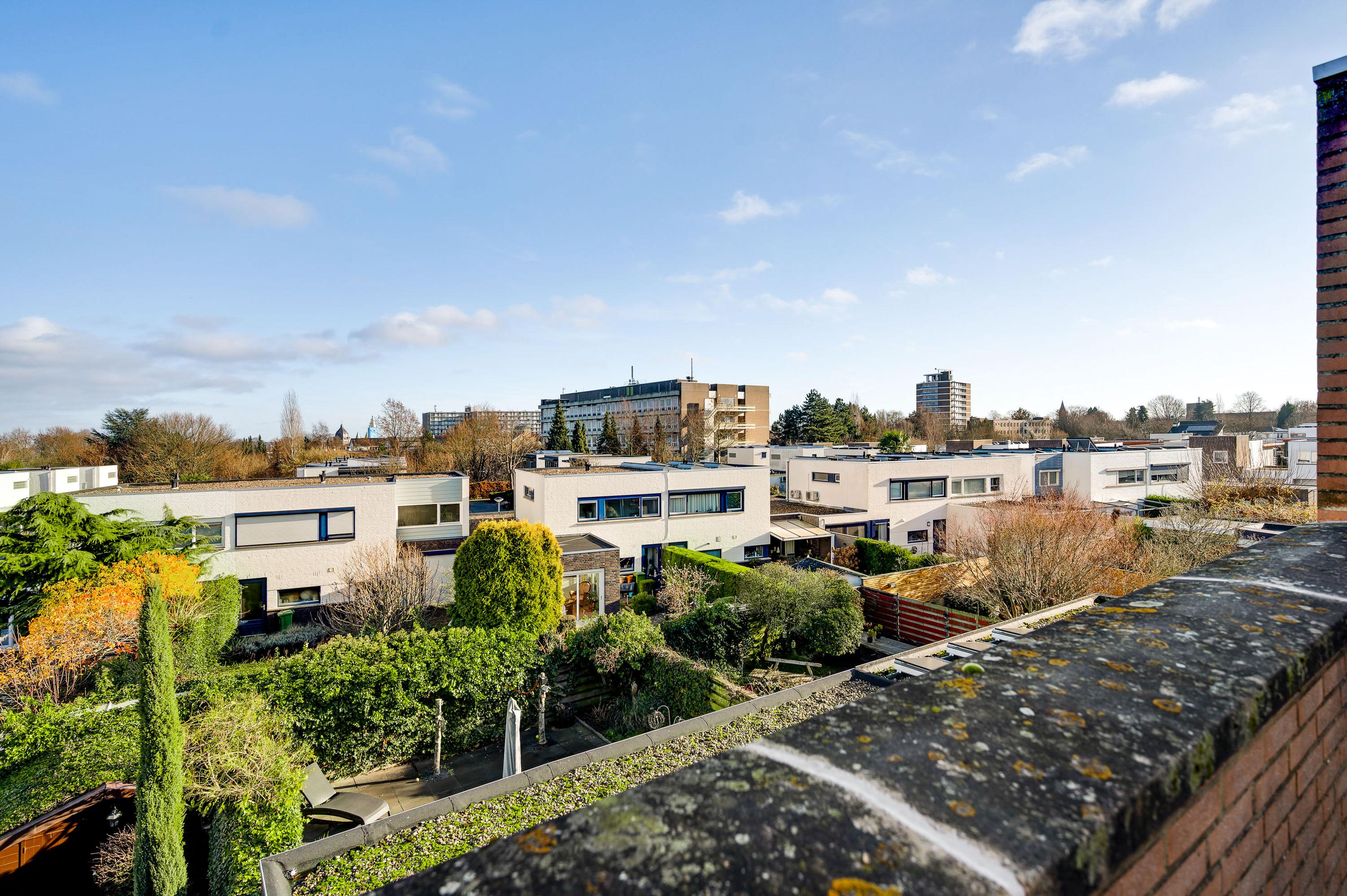 Het dakterras (circa 3,86 x 3,03/2,95) is de perfecte plek om van de zon te genieten. Zit nu liever in de tuin, dan is het dakterras onder andere geschikt om de was te drogen. De kenner van Maastricht ziet direct de torens van de Sint-Lambertuskerk, maar er is nog veel meer moois te zien!
