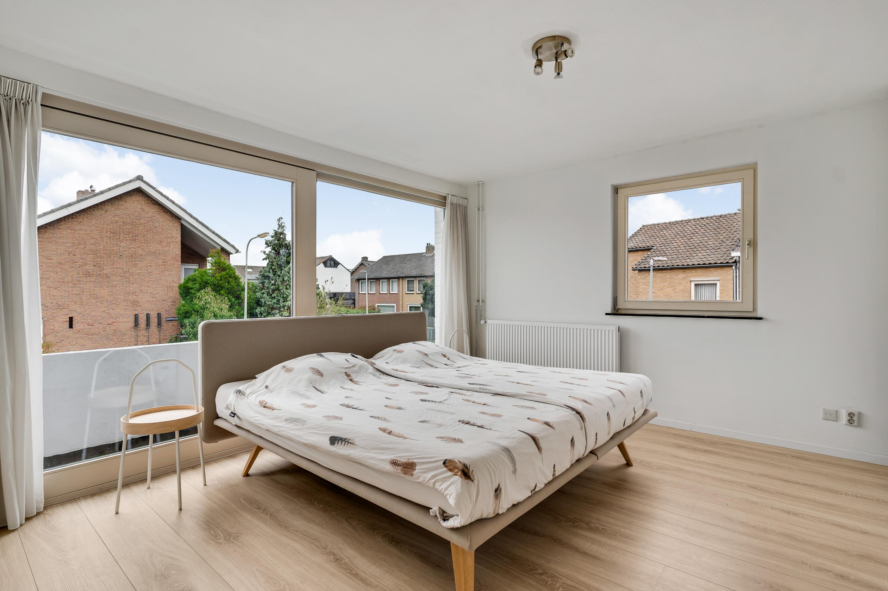 Dit royale woonhuis staat op de hoek van de Europalaan en de Gerechtigheidslaan, in het mooie Scharn. Hier woont u op korte afstand van een basisschool en de internationale school, wat de wijk erg geliefd maakt bij gezinnen en expats. Er zijn meerdere supermarkten in de nabijheid en ook zijn er vele horecazaken voor een kop koffie, lunch en het avondeten. Na een korte wandeling staat u bij de Groene Loper en het treinstation is, net als het historische centrum, goed bereikbaar met de fiets en openbaar vervoer. De autosnelwegen A2 en A79 richting Luik, Eindhoven, Heerlen en Aken liggen op steenworp afstand.