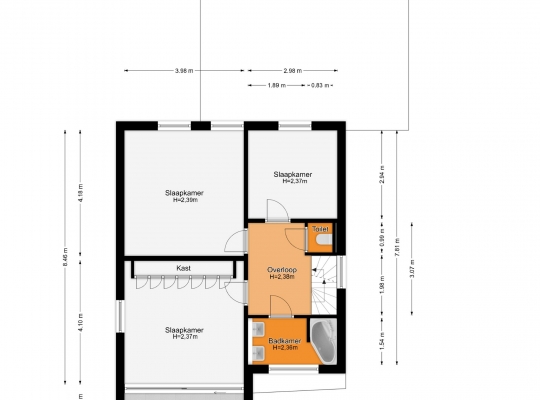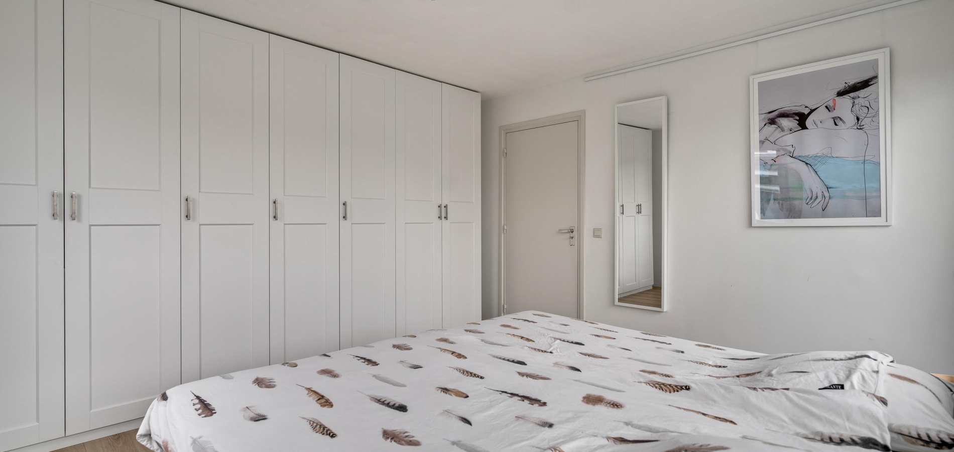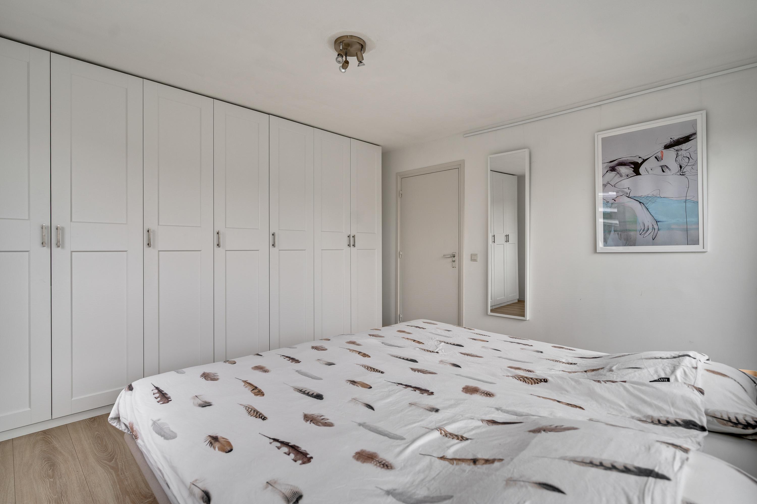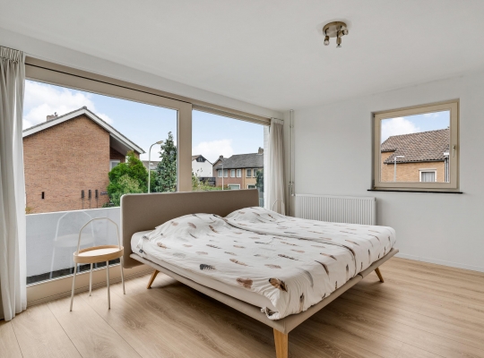 De lichte overloop heeft, net als de slaapkamers op deze verdieping, een ruime opzet. Aan de voorzijde is slaapkamer I (circa 4,10 x 3,98) met een grote kastenwand en een schuifpui naar het balkon. Slaapkamer II (circa 4,18 x 3,98) en slaapkamer III (circa 2,98 x 2,94) zijn aan de achterzijde. De afwerking is fraai, met een lichte laminaatvloer en stucwerk.