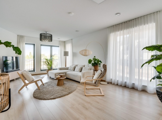 De ontwikkelaar heeft haar ambities ten aanzien van duurzaamheid tot waarheid gemaakt. Uiteraard liggen er zonnepanelen op het dak van het gebouw. Het appartement, type maisonnette, wordt verwarmd via een lucht-water-warmtepomp met boilervat en lage temperatuur verwarming, die per ruimte in te stellen is. Het resultaat is een bijna energieneutraal (BENG) appartement met energielabel A+++. De grote ramen aan twee zijden zijn voorzien van dubbele beglazing (zonwerend en geluidsisolerend). Luchtcirculatie wordt geregeld door een balansventilatie met warmteterugwinning, zonder roosters in de buitengevel.
